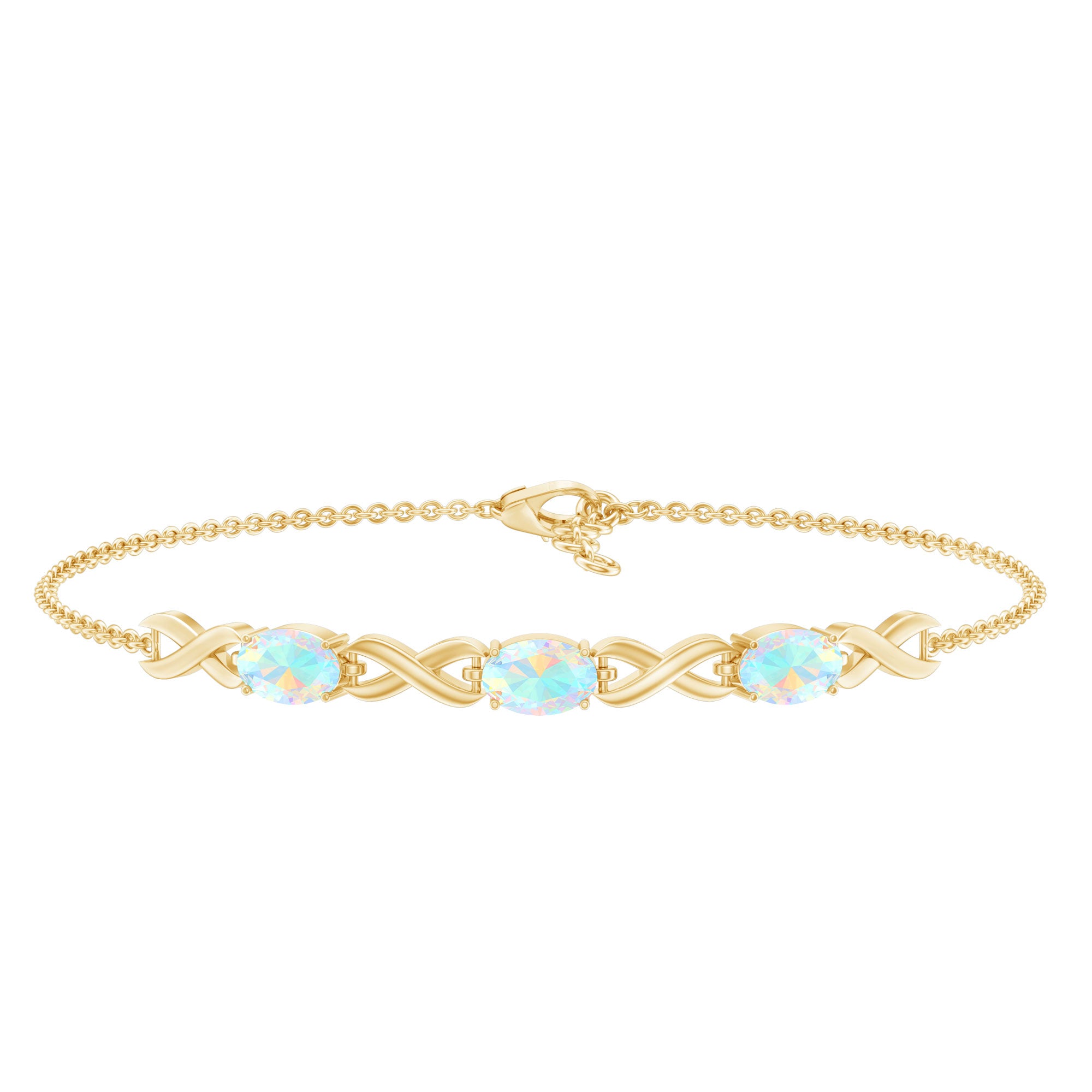 Discover the ethereal beauty of this Infinity Chain Bracelet. Each 5X7 MM Ethiopian Opal gemstone is delicately set within a continuous Infinity Knot, symbolizing endless elegance and grace. Finished with a secure Lobster Clasp Closure, this 3 Stone Bracelet offers both style and peace of mind. Whether dressing up for a special occasion or adding a touch of sophistication to your everyday ensemble, this Opal Bracelet is a timeless addition to any jewelry collection.
