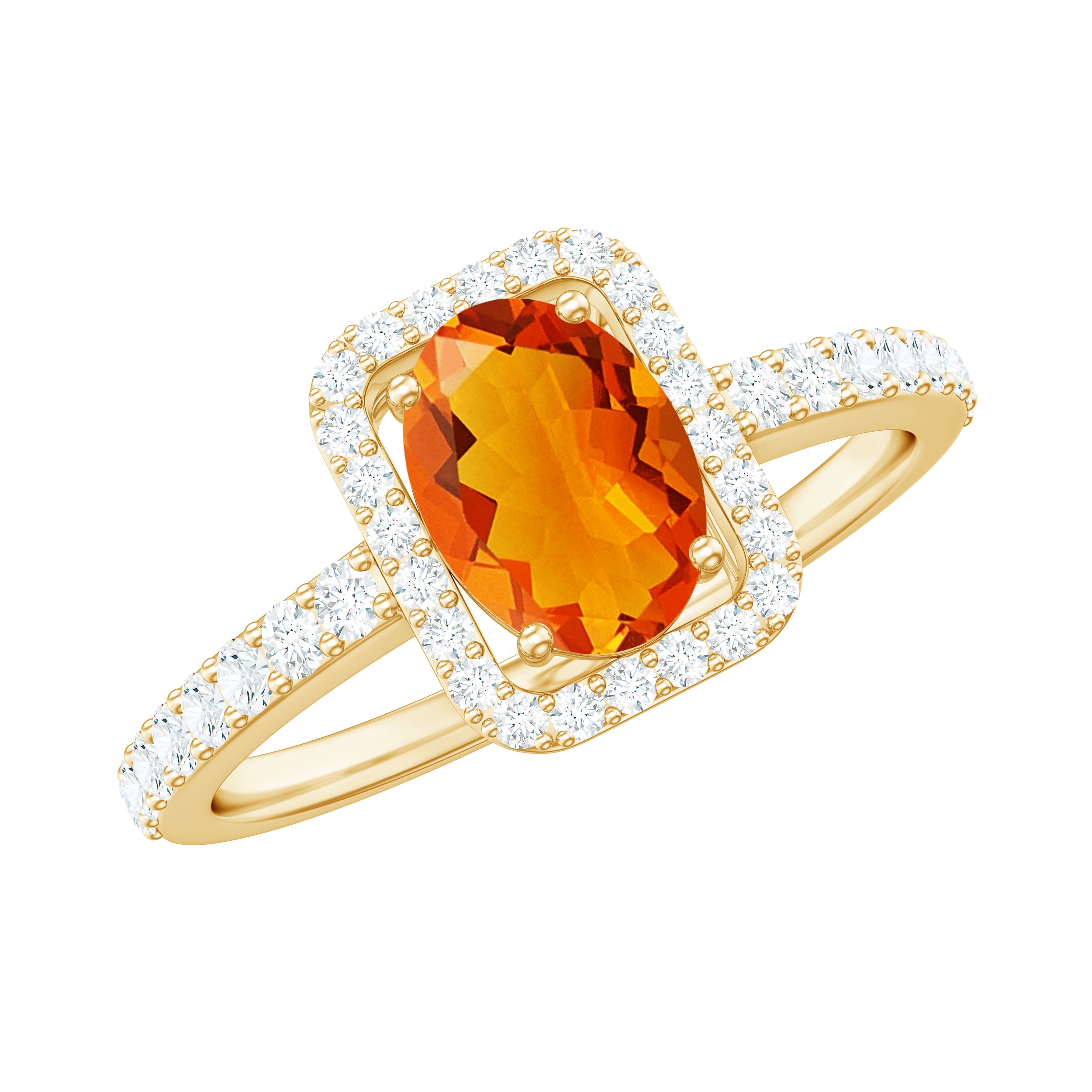 This stunning engagement ring features an eye-catching oval cut fire opal center stone set in prong setting, crafted in gold. A halo of sparkling Diamond surrounds the opal, adding extra brilliance to this already breathtaking piece. The perfect symbol of love and commitment, this classic ring is sure to take her breath away.
