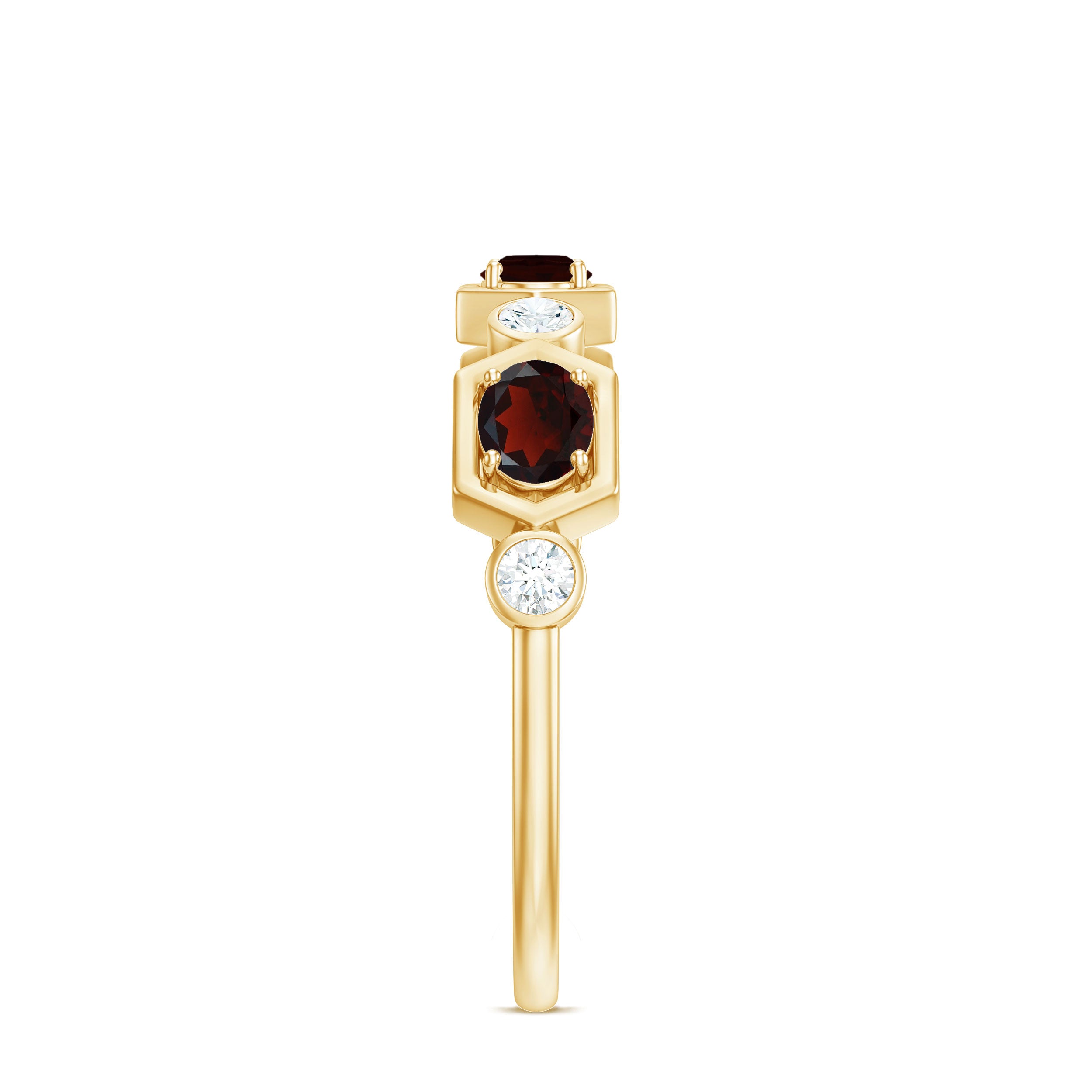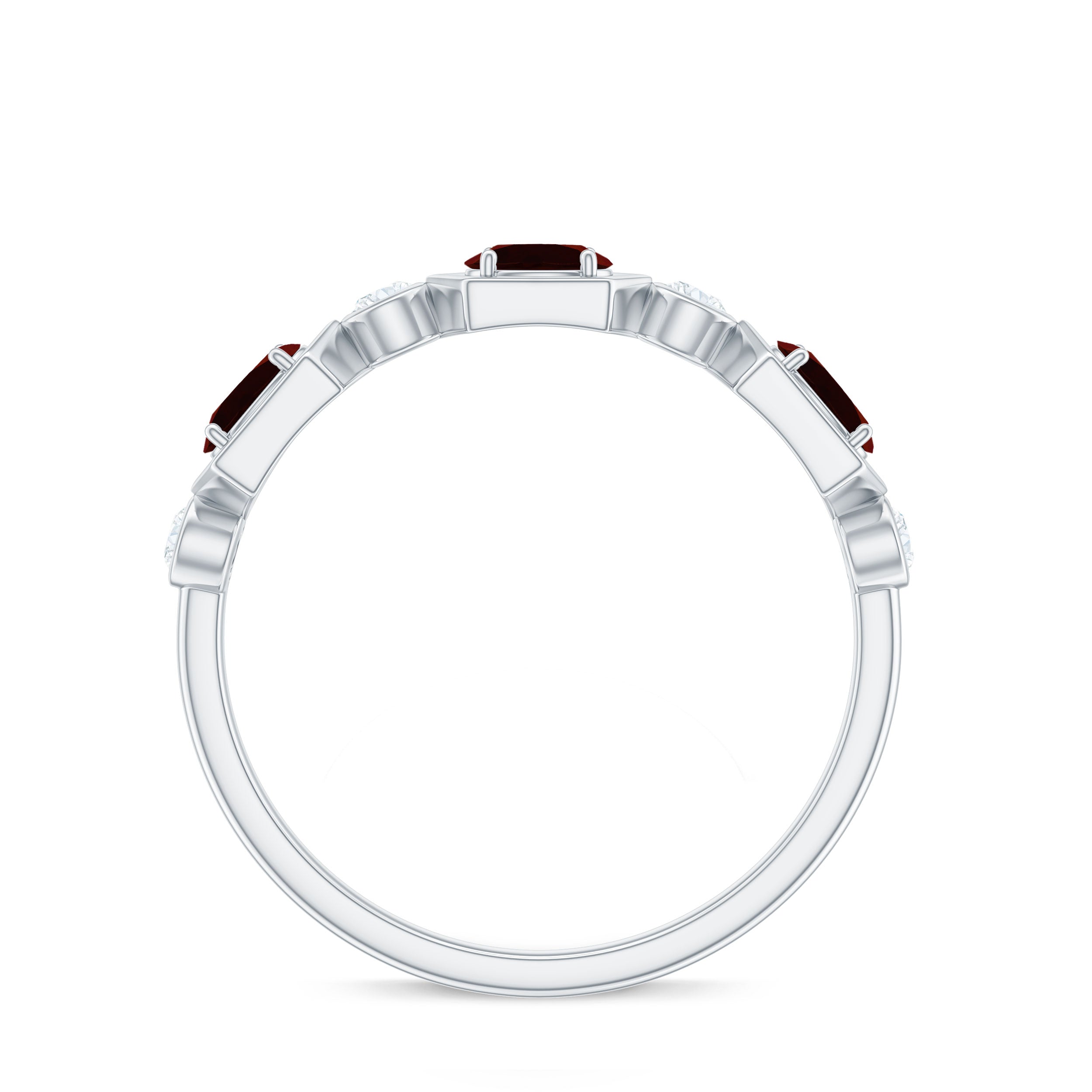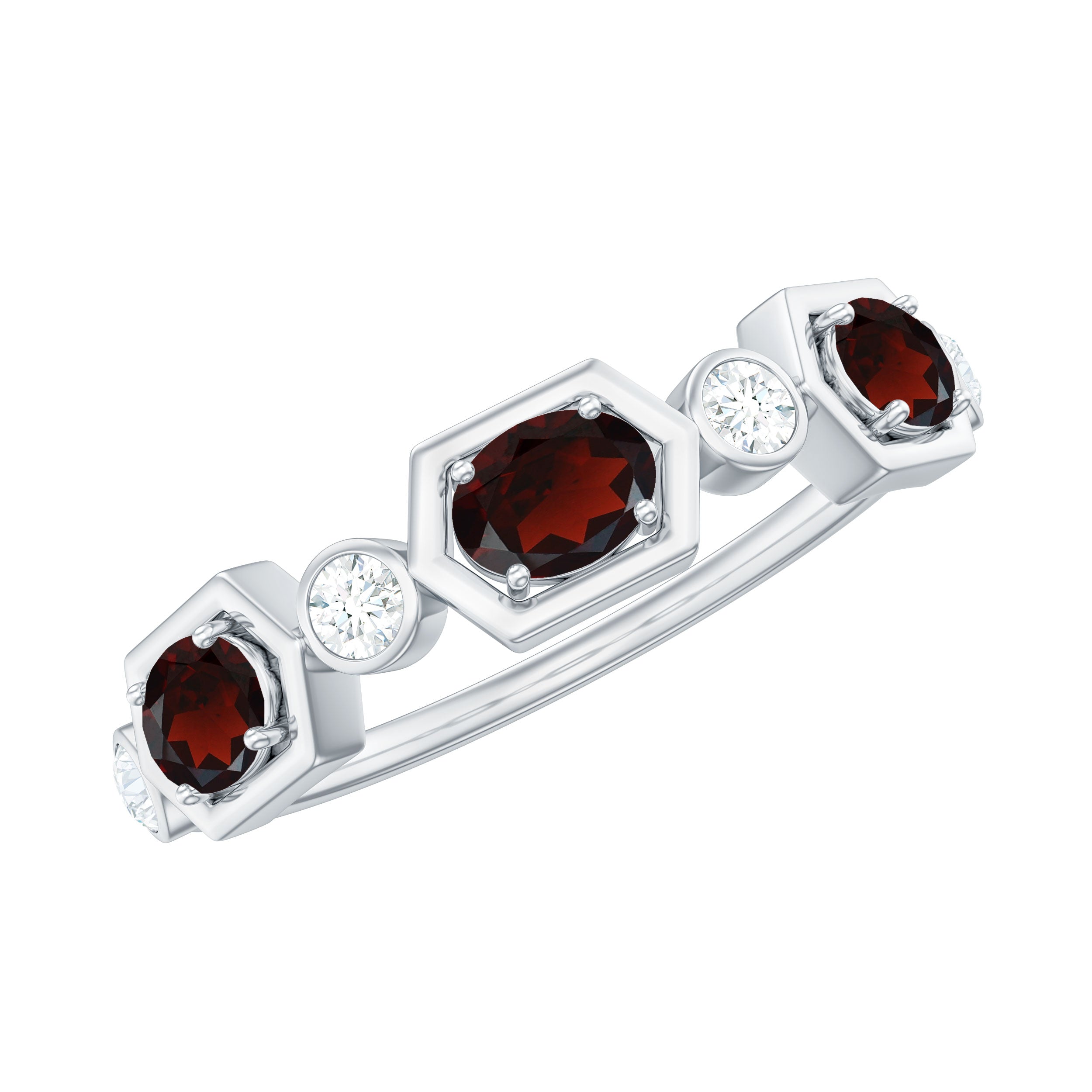 Symbolizing enduring love and timeless elegance, this Half Eternity Ring is a stunning way to celebrate a milestone, a promise or a special anniversary. The horizontally placed 3X5 mm Oval Shape garnet stones alternate gracefully with sparkling Round Diamond stones, each set in geometric frames that give the ring a modern, artful twist. This thoughtful arrangement creates a rhythm and balance that feels both sophisticated and romantic. Crafted to capture light and attention from every angle, the half-eternity design of this Garnet Diamond Ring makes it a versatile yet meaningful piece, perfect for stacking with other favorites or wearing solo as a bold symbol of your love. Presented in a signature jewelry box, this East West Ring arrives ready to gift and is available in a variety of sizes to ensure the perfect fit. Whether celebrating years together, marking a personal milestone or simply showing someone how much they mean to you, this Red Garnet Ring turns sentiment into a piece of art that will be cherished forever.