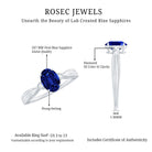 Surprise your beloved with this exquisite Solitaire Ring, a gift that will leave her utterly captivated. This Ring features a splendid Oval Cut Created Blue Sapphire in a secure prong setting with round diamonds. Its elegant design is perfect for celebrating your love and commitment, making it an ideal choice for your special occasion.