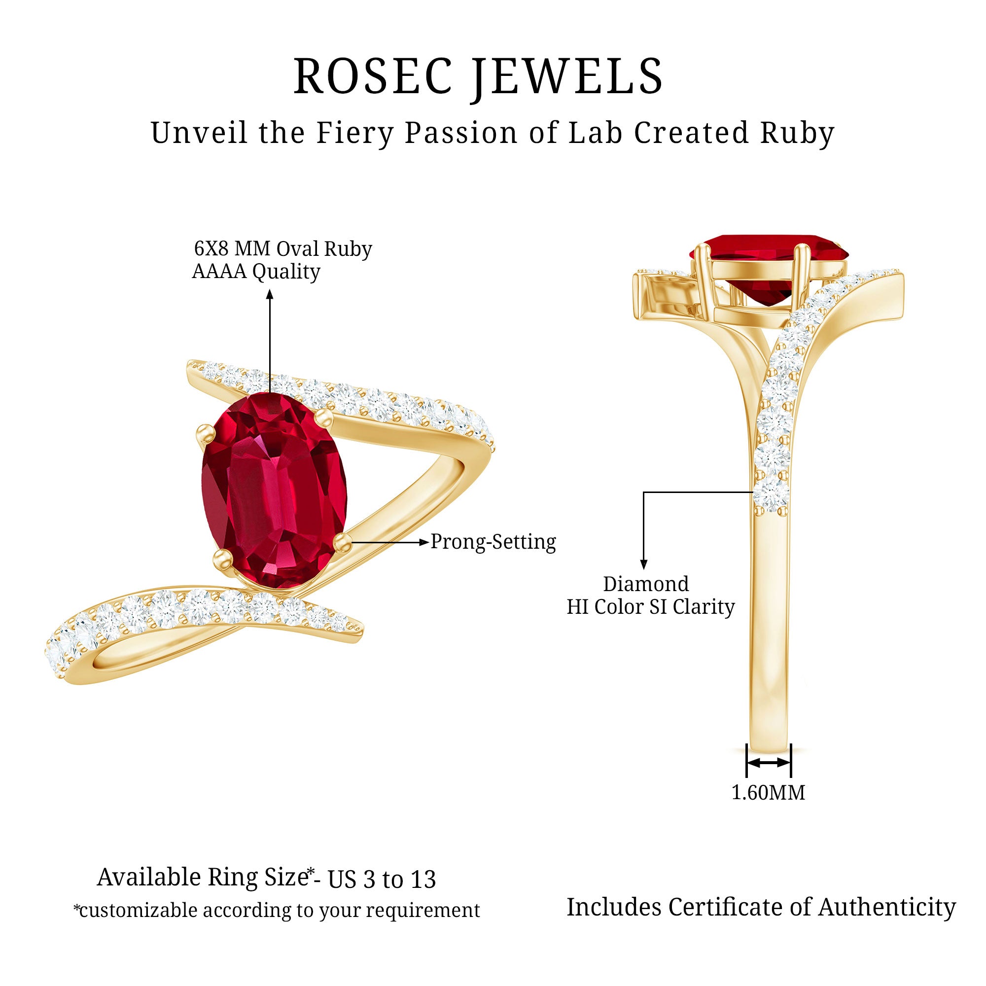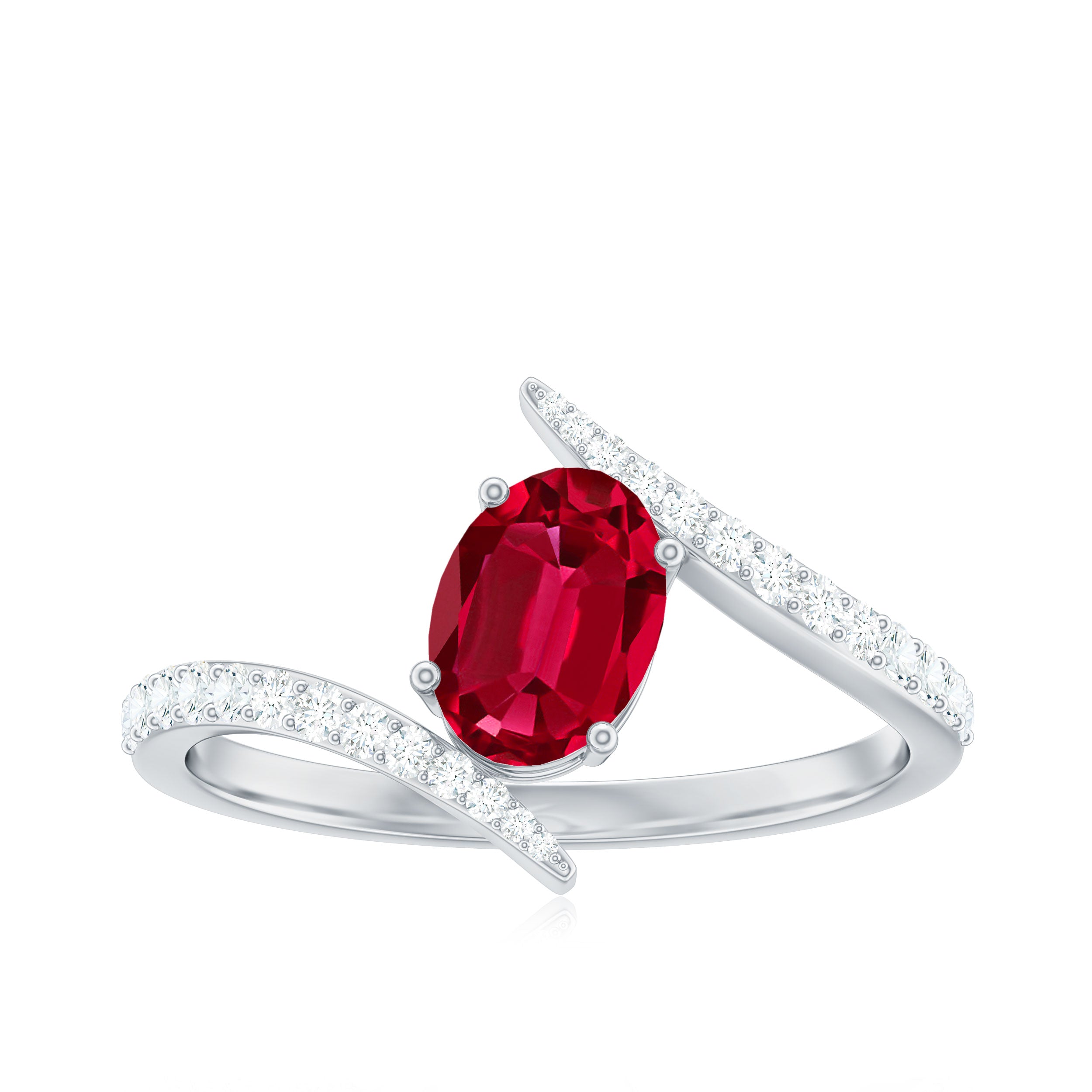 Oval Cut Lab Grown Ruby Bypass Engagement Ring with Diamonds