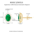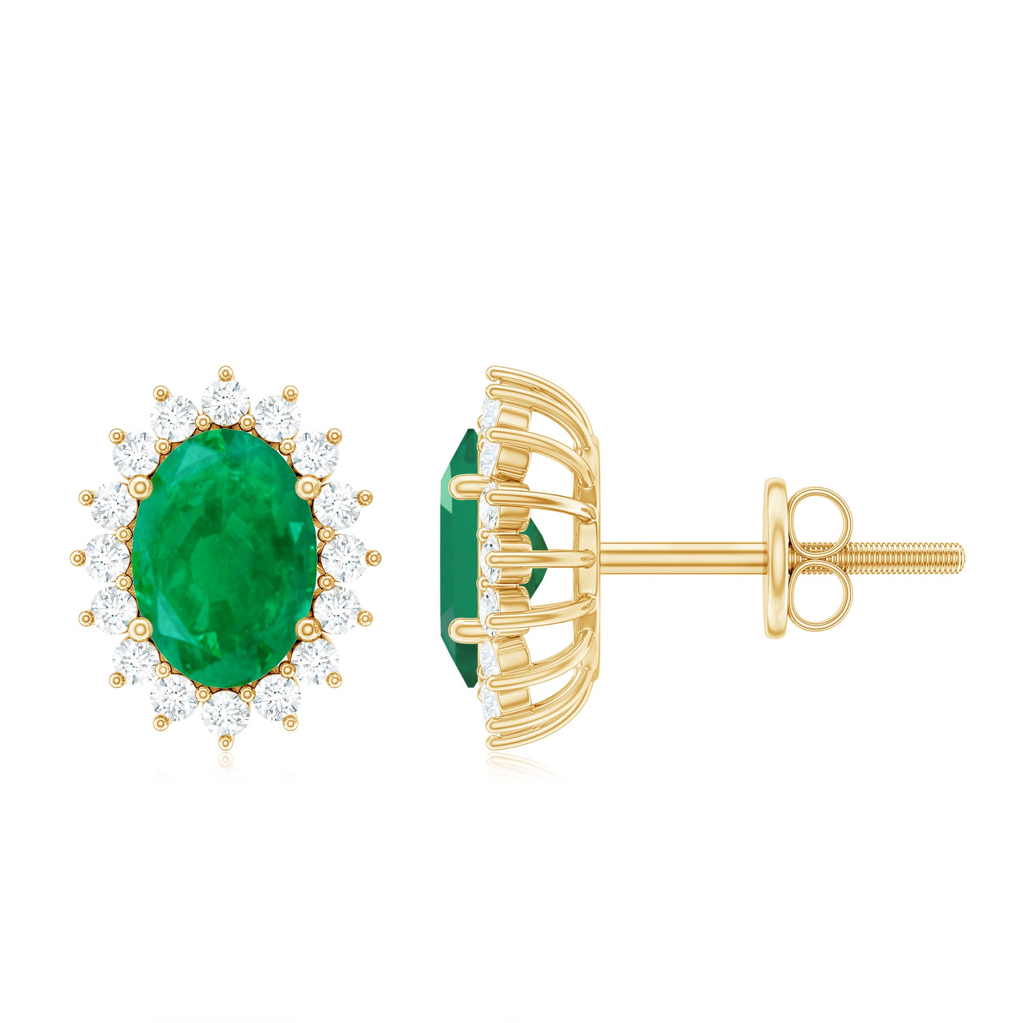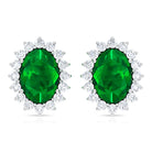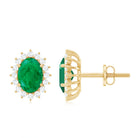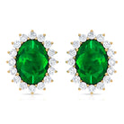 Oval Cut Natural Emerald Stud Earrings with Diamond Halo