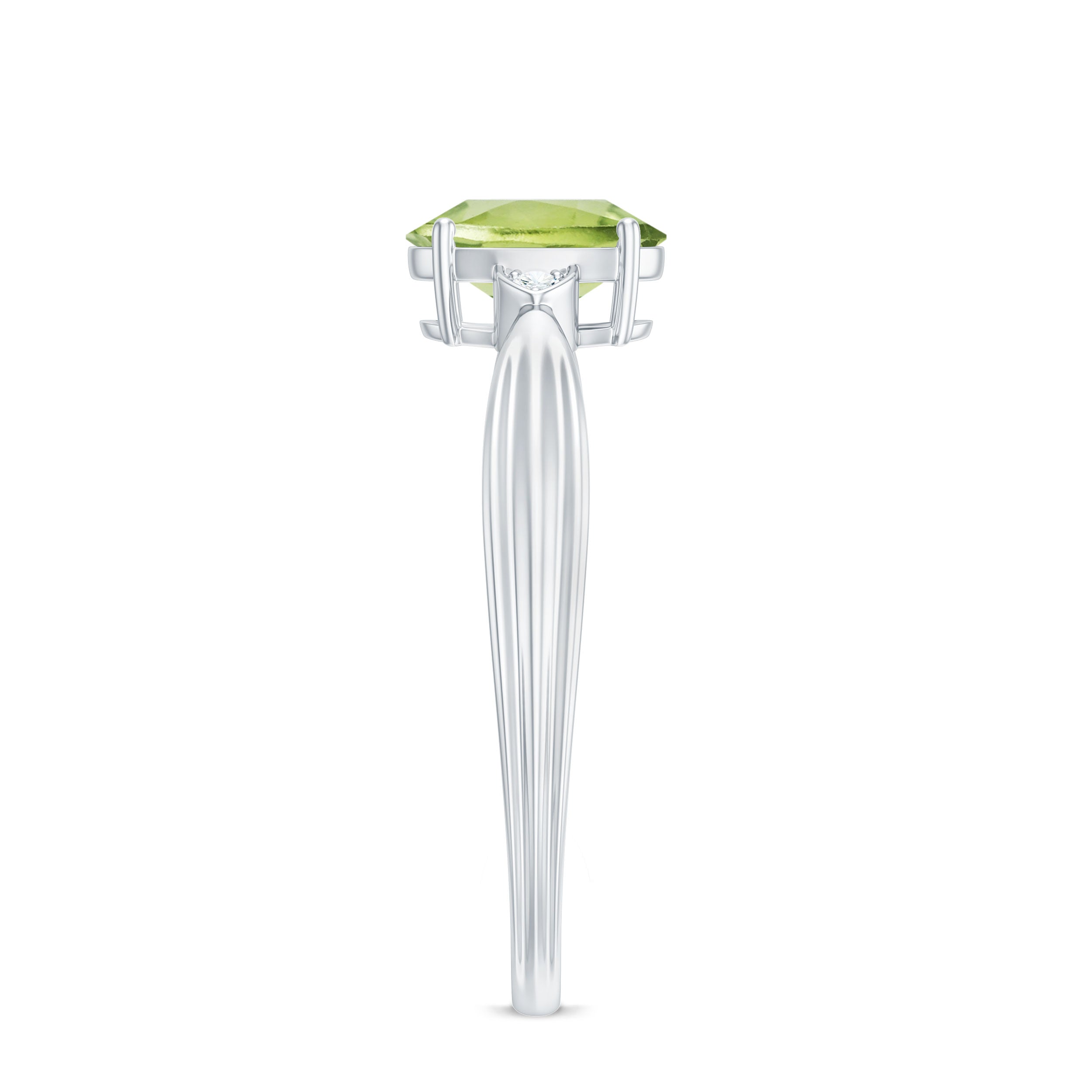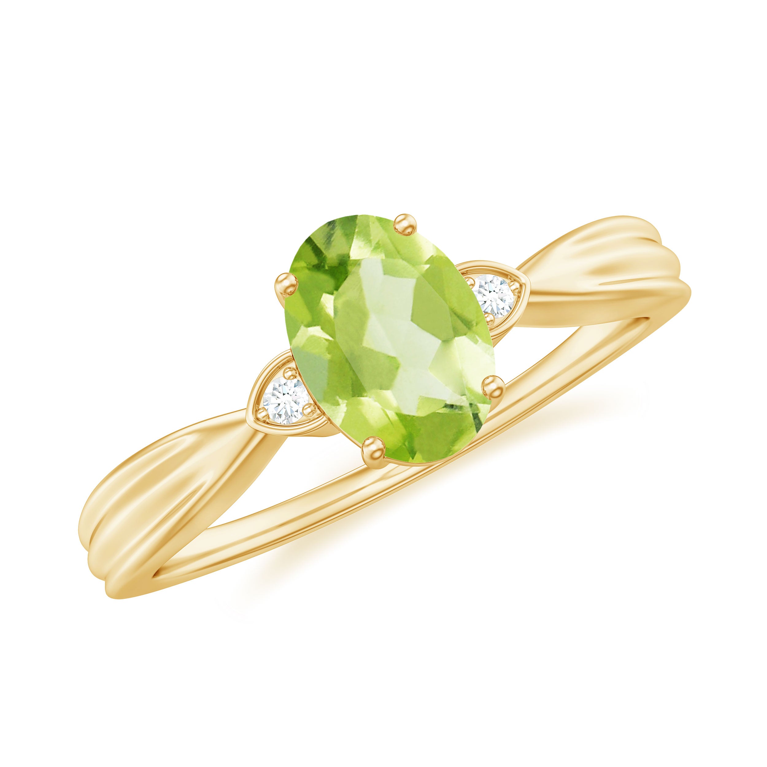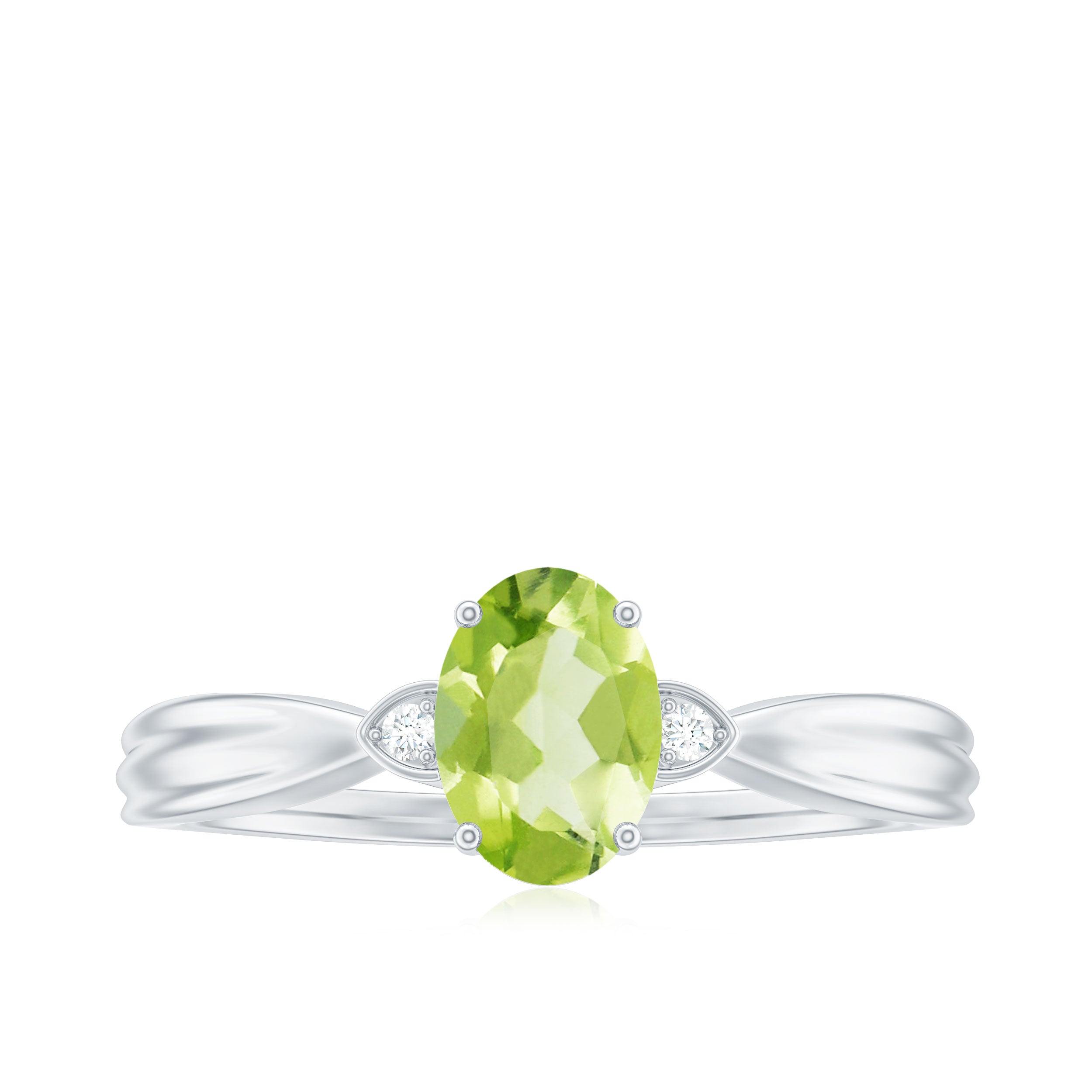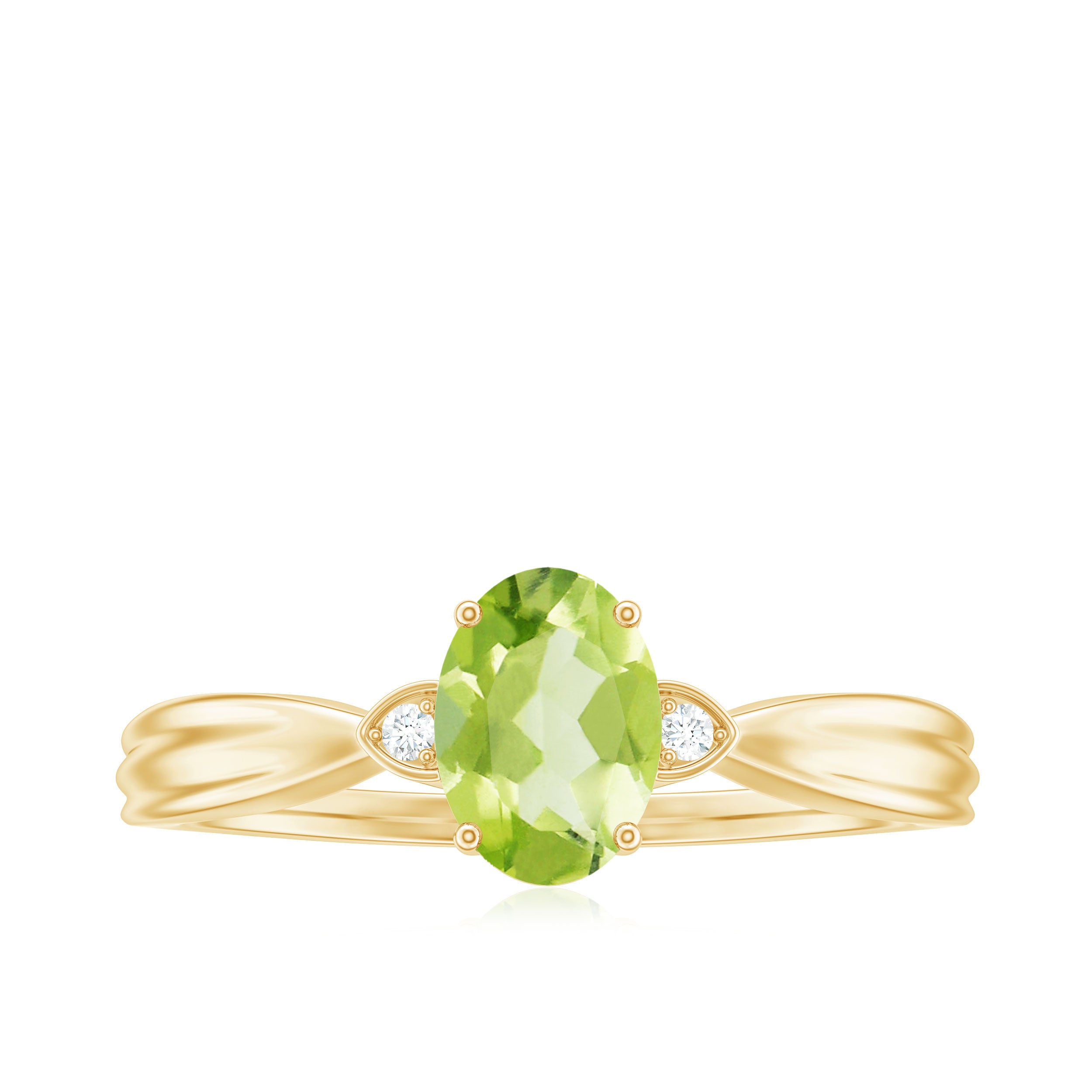 Oval Cut Peridot Solitaire Ring with Diamond