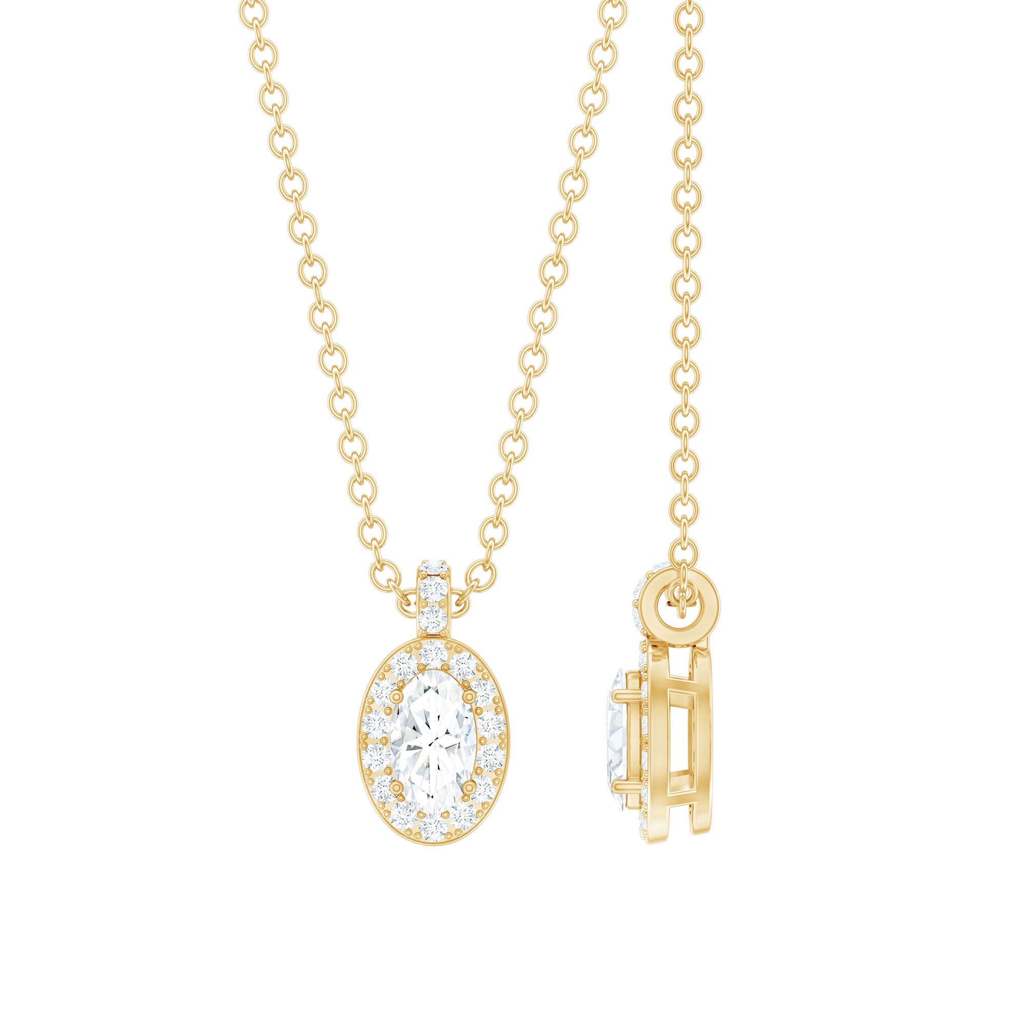 Oval Cut Real Diamond Halo Pendant