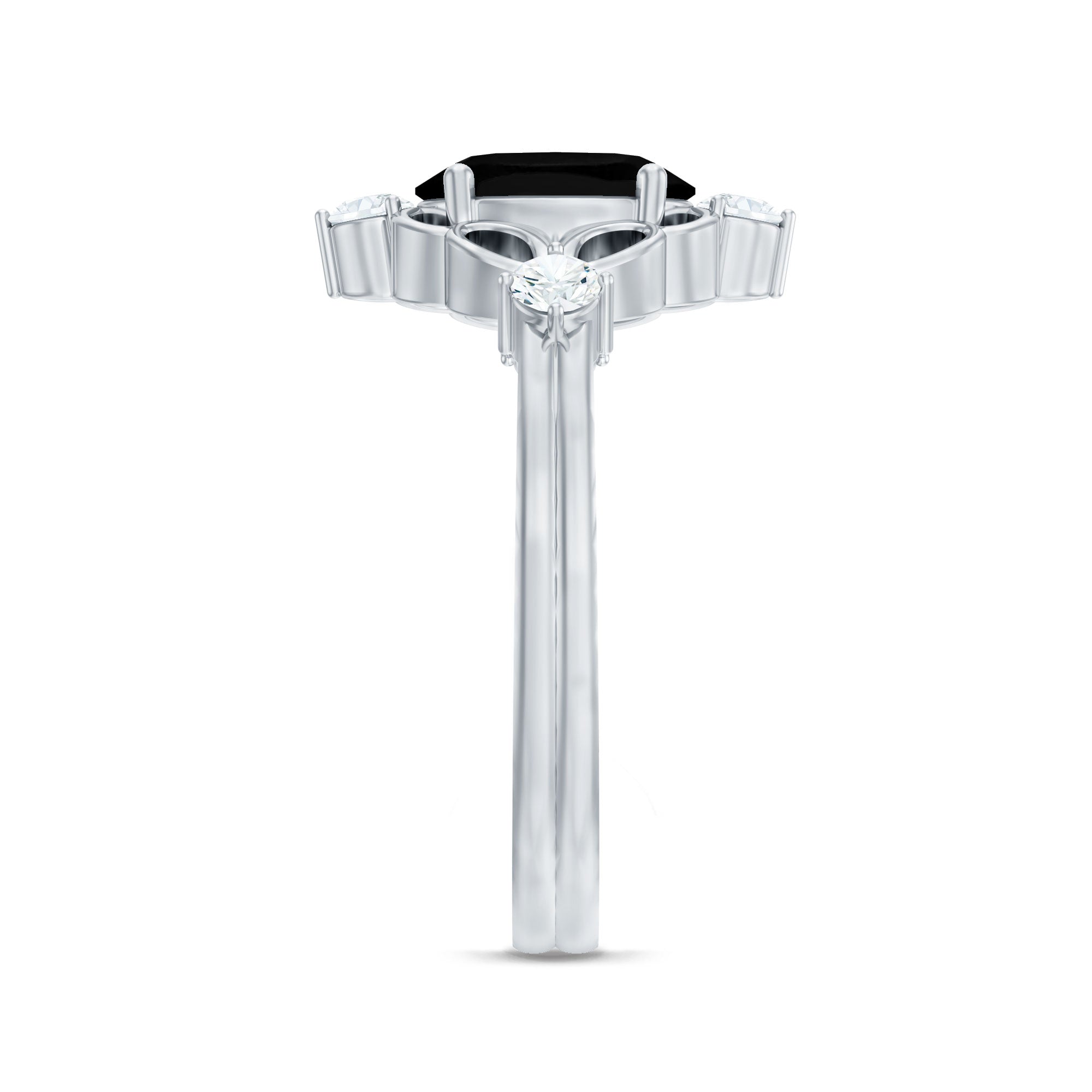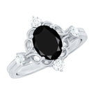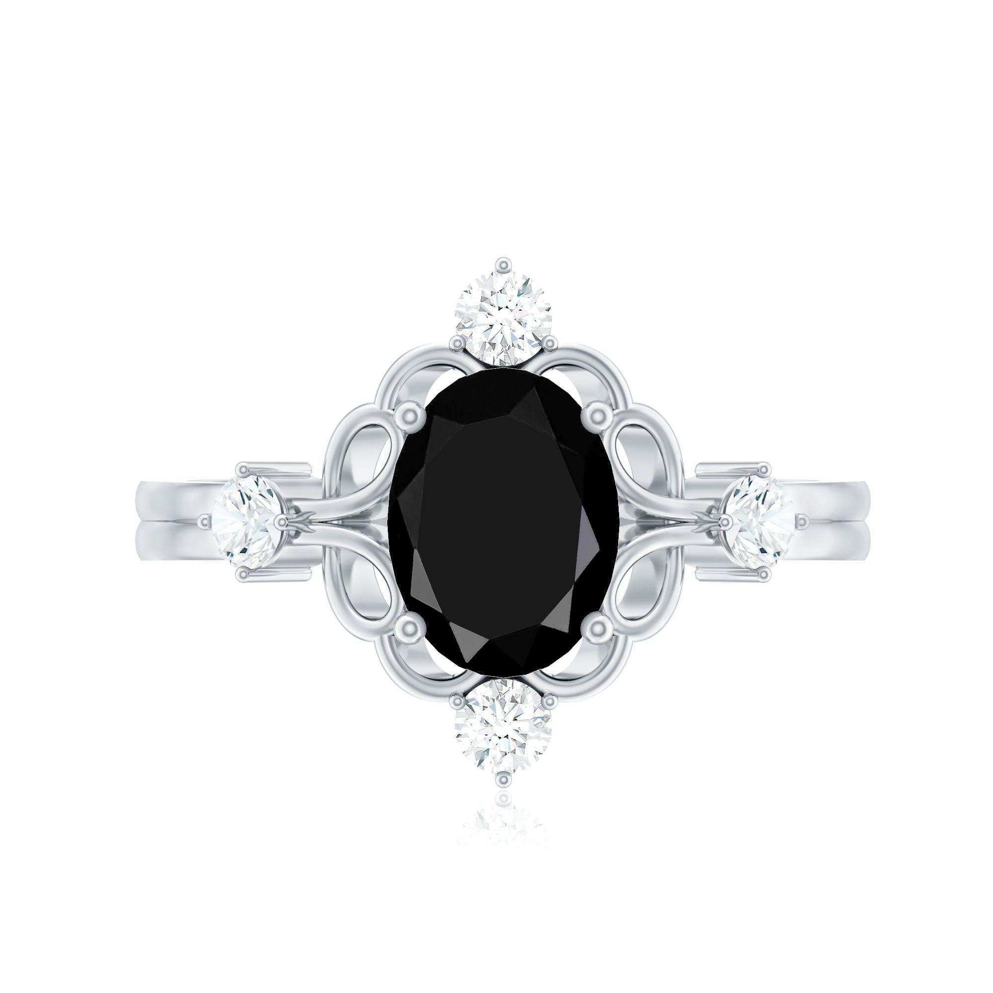 Oval Cut Solitaire Created Black Diamond Engagement Ring with Diamond