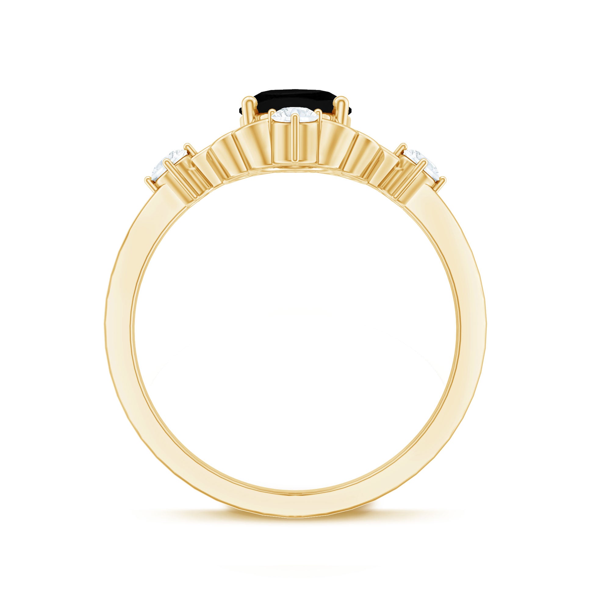 Treat your look with this lovely Gold Cocktail Engagement Ring adorned with Oval Shape Created Black Diamond set as a solitaire and Round Shape Diamond in a prong setting. This Solitaire Cocktail Ring is mounted in gold for a luxurious look.