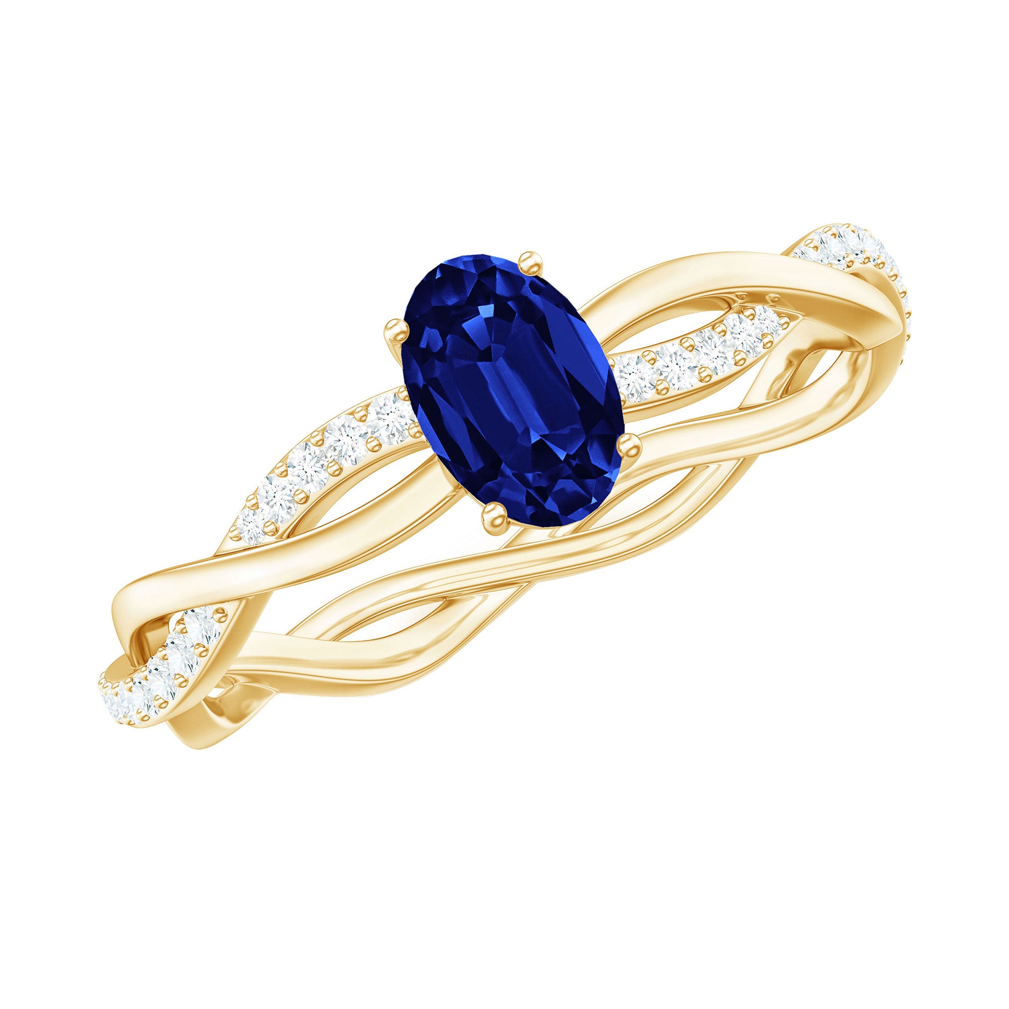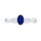 Oval Cut Solitaire Created Blue Sapphire Braided Engagement Ring with Diamond