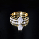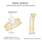A beautiful symbol of love and promise, this Moissanite Wedding Ring Set is designed to shine in every moment. The cathedral engagement ring features a lovely 6X8 MM oval shaped moissanite held securely in prong setting. A hidden moissanite is placed beneath the main gem, adding a touch of secret sparkle that feels personal and special. To complete the Oval Bridal Set, a matching half eternity band is included. The band is decorated with small moissanite stones that line the top, adding gentle shine. When worn together, the two rings create a beautiful, balanced look that feels elegant and romantic. Each moissanite in the Solitaire Wedding Set is D color and VS1 clarity, giving you stones that are bright, clear, and full of brilliance. Every gemstone is certified and carefully checked to ensure high quality, so you receive a ring set that will last for many years. Comfort and beauty come together in this design, making the Engagement Ring and Wedding Band Set easy to wear every day while still looking stunning for special occasions. With its modern sparkle, it is a set that will always remind her of the promises you share.