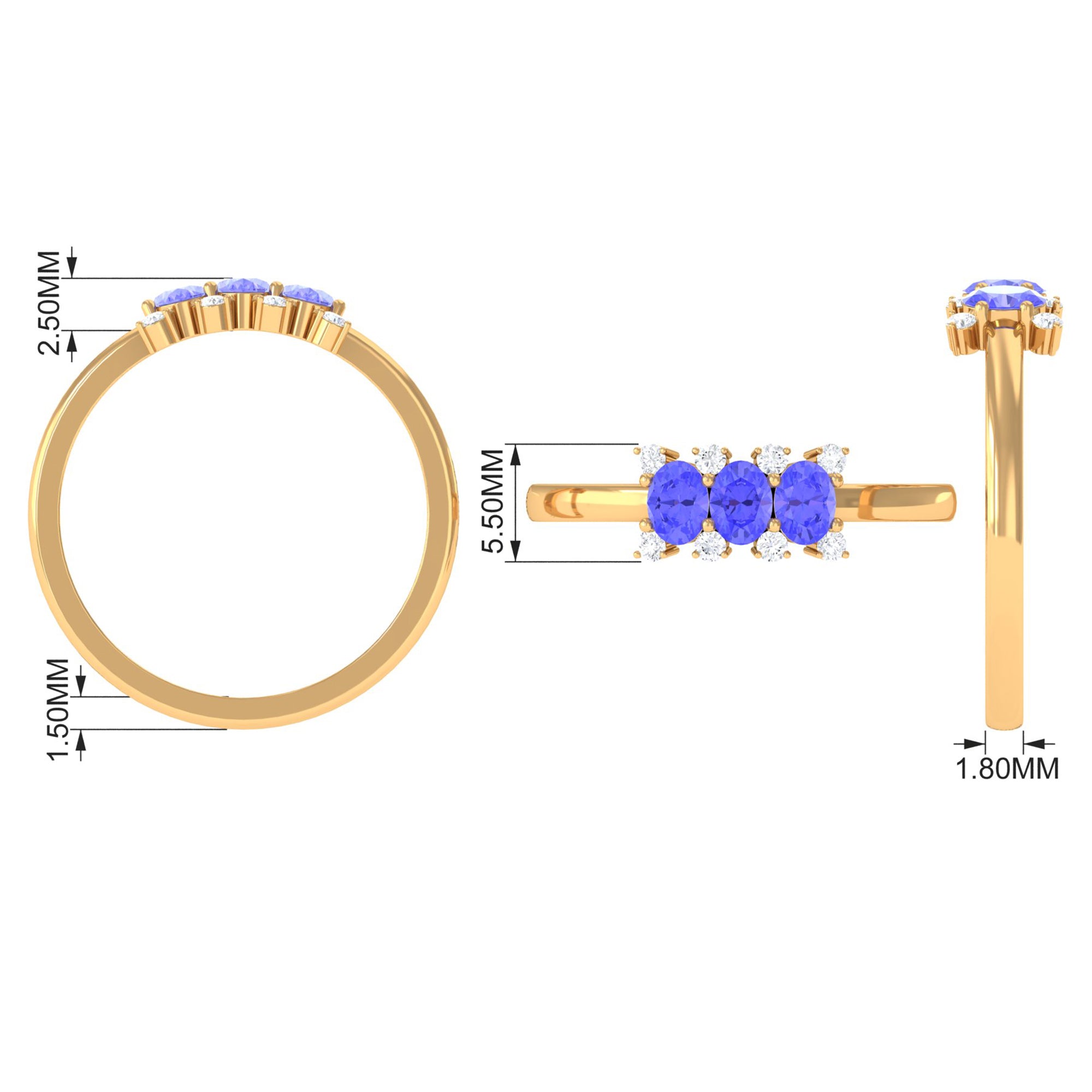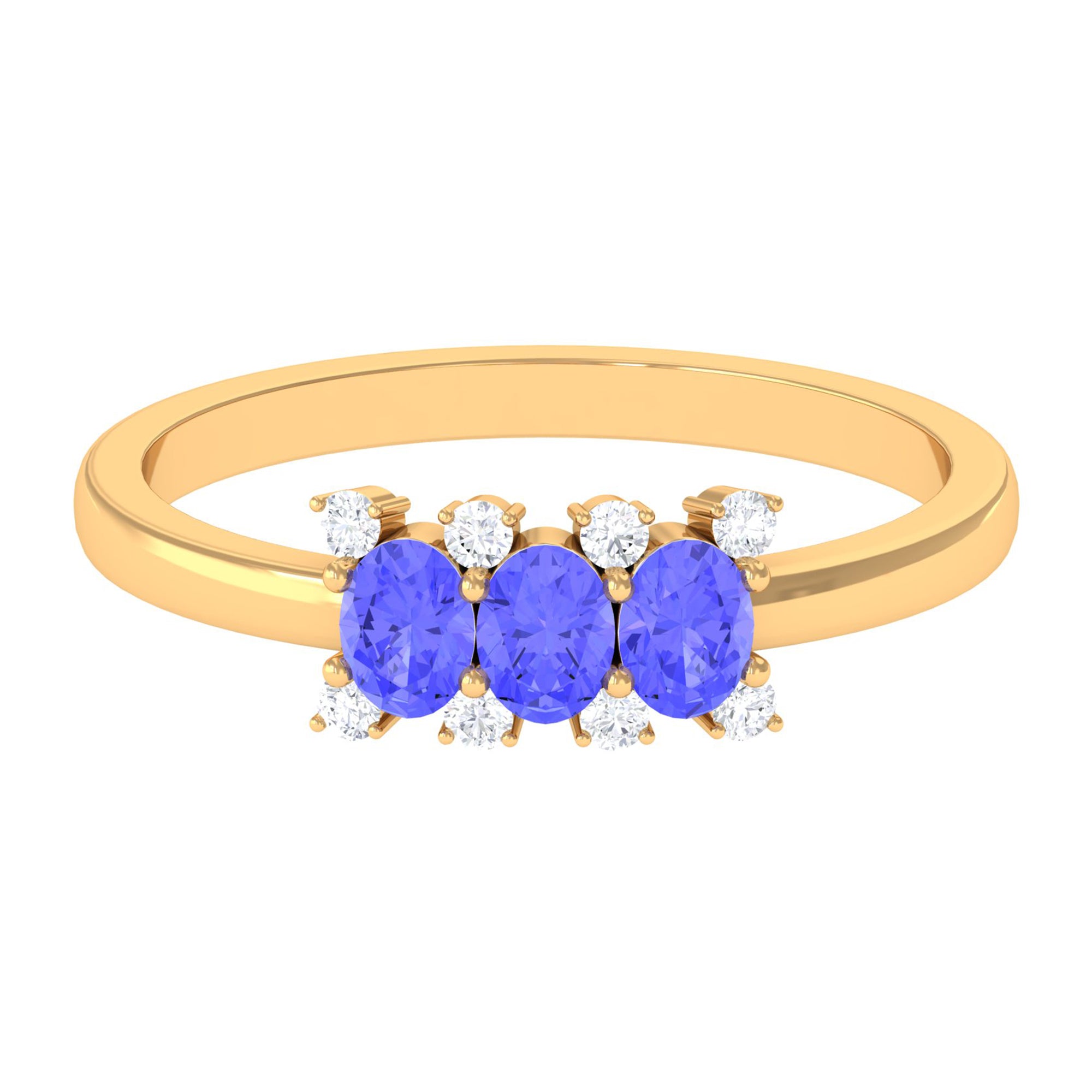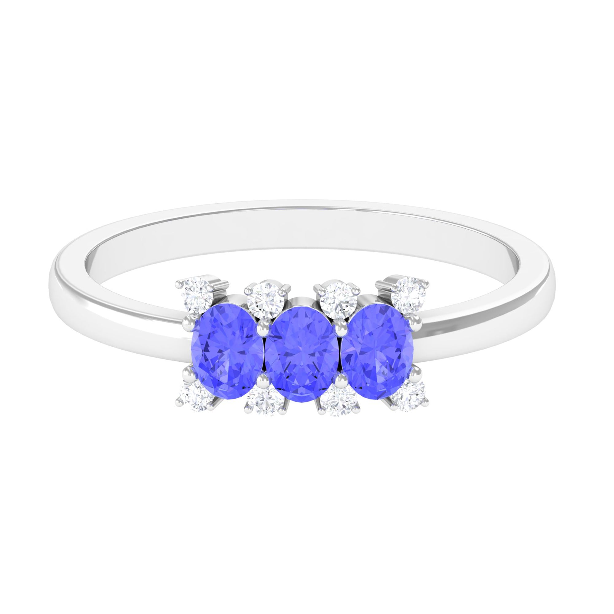 Mark your love for each other with this cute Promise Ring. It embellished with 3 Oval Cut Tanzanite in Prong Setting with Diamond Accent. Present this Tanzanite Ring to your lady love and make her feel your unconditional love.