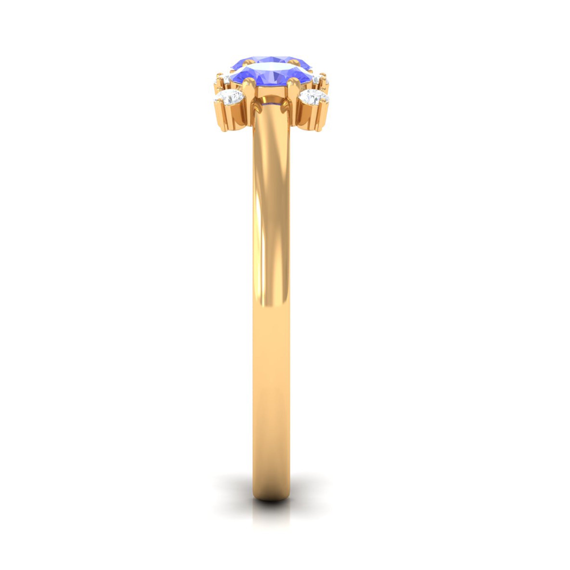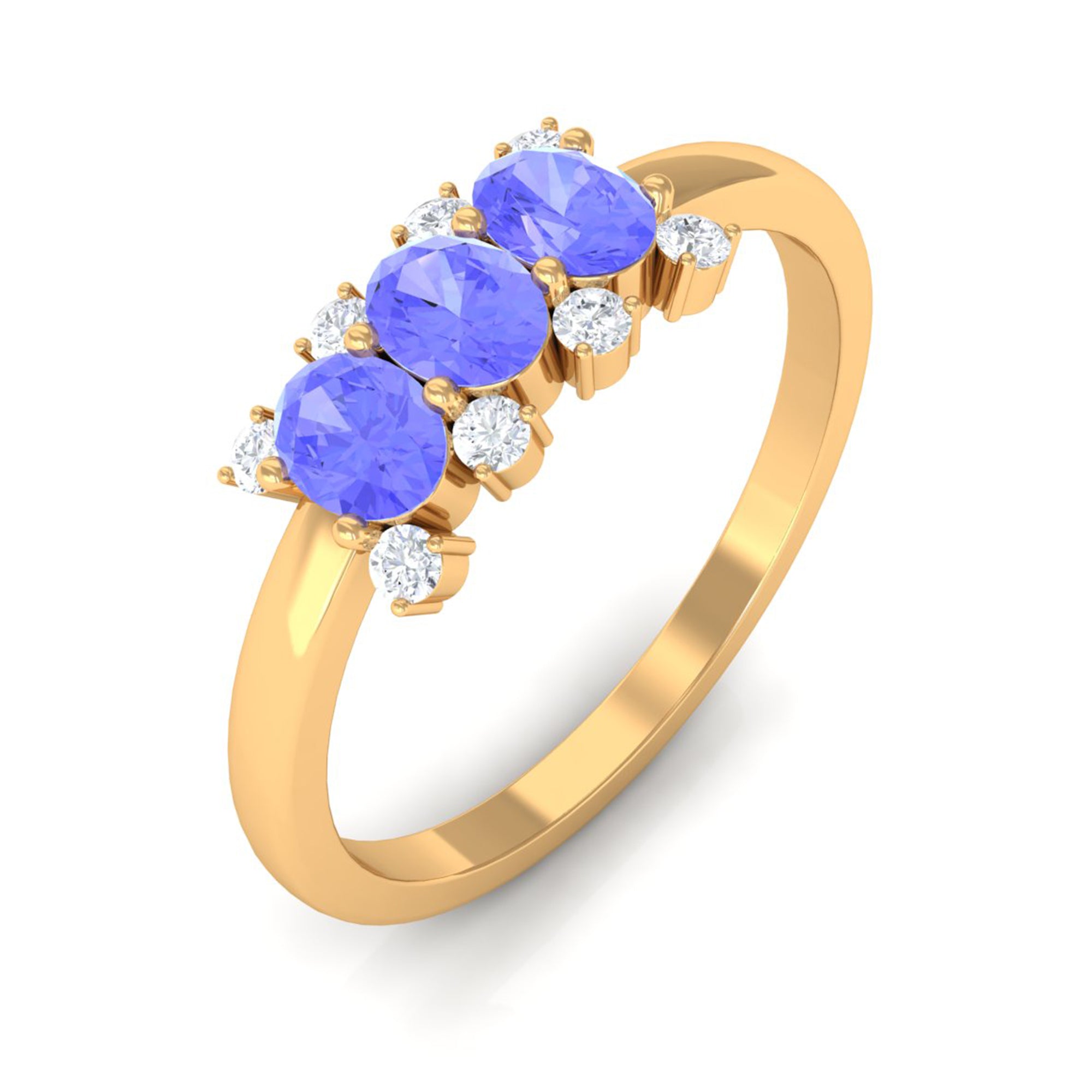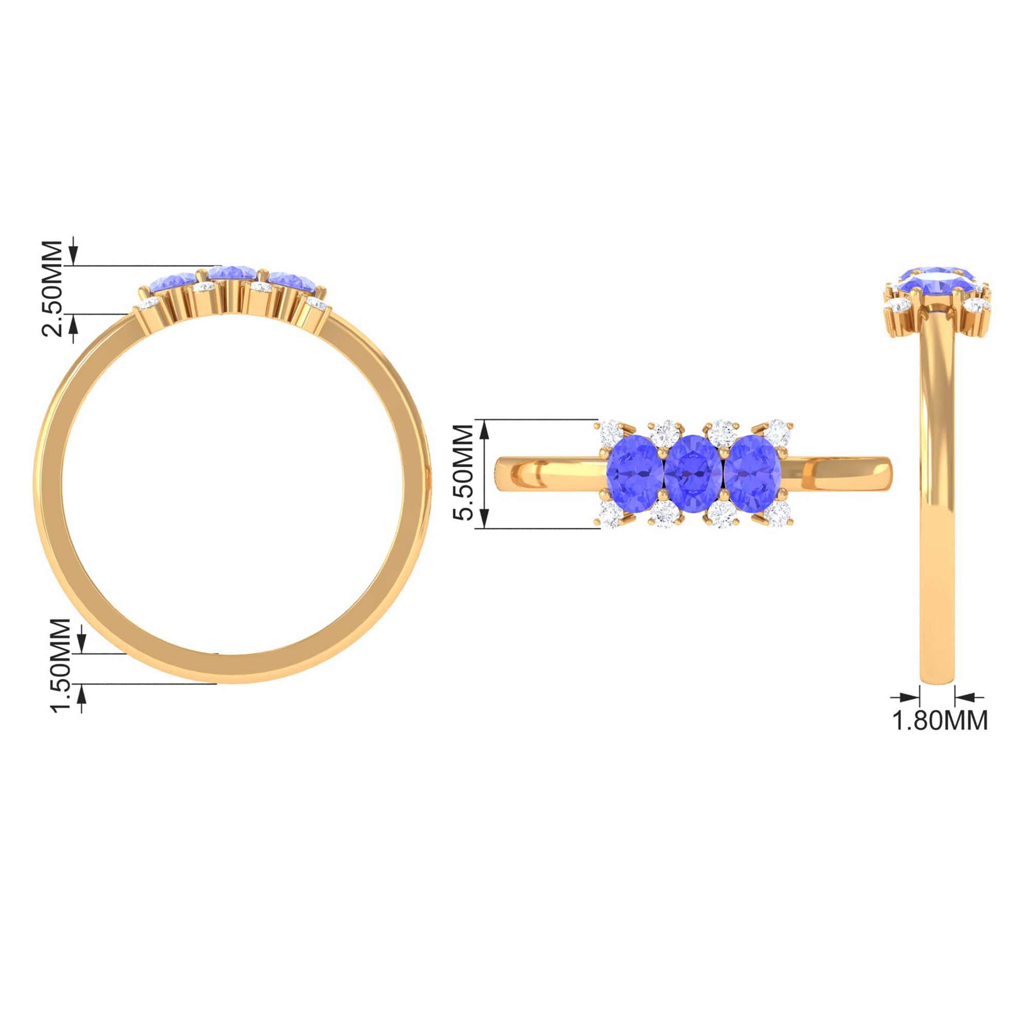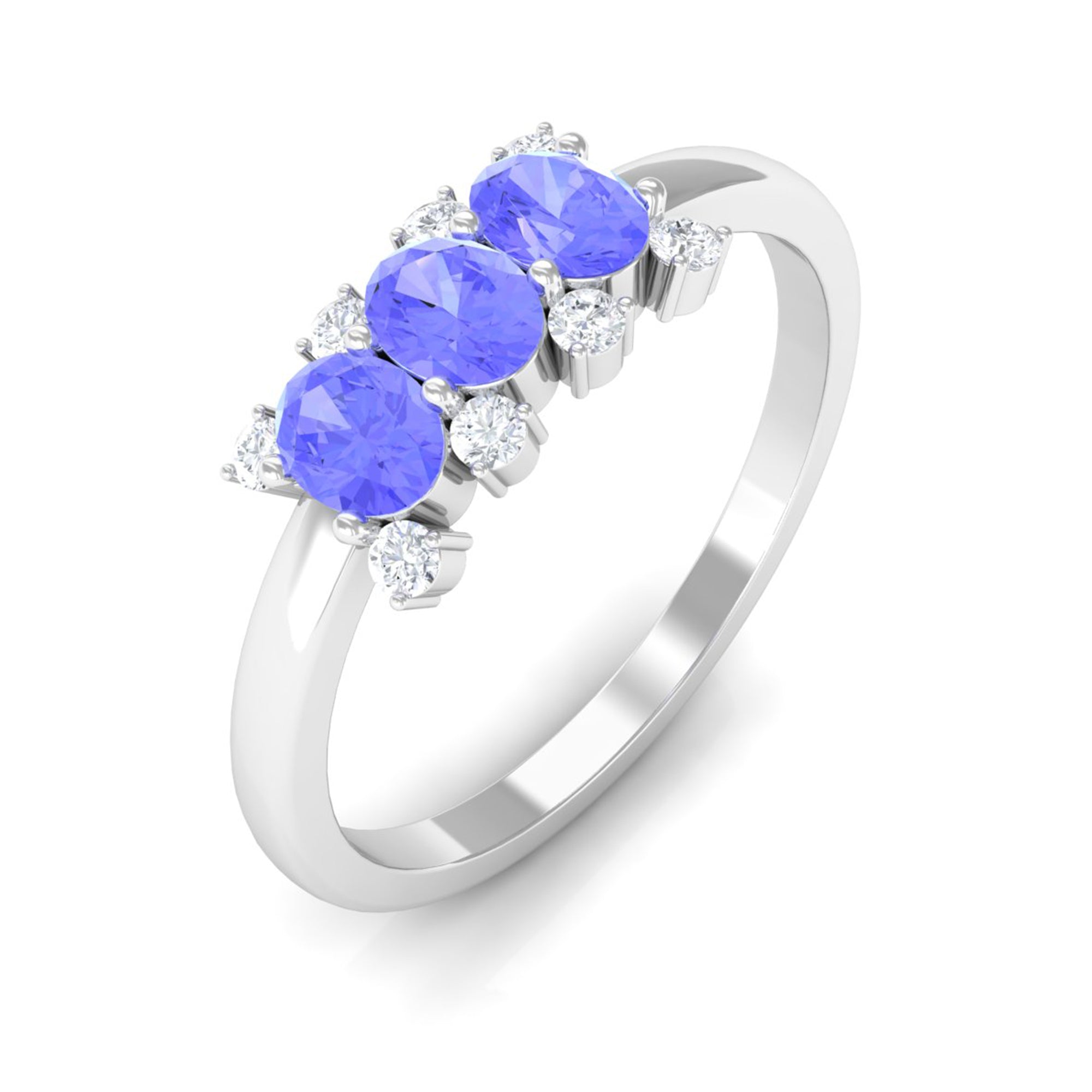 Mark your love for each other with this cute Promise Ring. It embellished with 3 Oval Cut Tanzanite in Prong Setting with Diamond Accent. Present this Tanzanite Ring to your lady love and make her feel your unconditional love.
