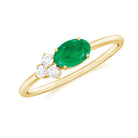 AAA Quality Oval Cut Emerald East West Promise Ring with Diamond Trio