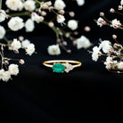 Embrace the subtle elegance of our 1/2ct emerald and diamond promise ring. Featuring a vibrant, 4x6mm oval shape emerald at its centre in a prong setting, flanked by three sparkling round shape diamonds, this delicate east west ring drawing all eyes to its brilliance. The minimal design offers a refined and sophisticated look, perfect for both everyday wear and special occasions. Add a hint of colour and sparkle to your jewelry collection with this stunning piece. We have handcrafted this Solitaire promise Ring in a variety of precious metals, along with options for color and purity. This timeless piece will surely become a treasured addition to her jewelry collection that she will cherish for a lifetime.