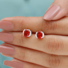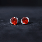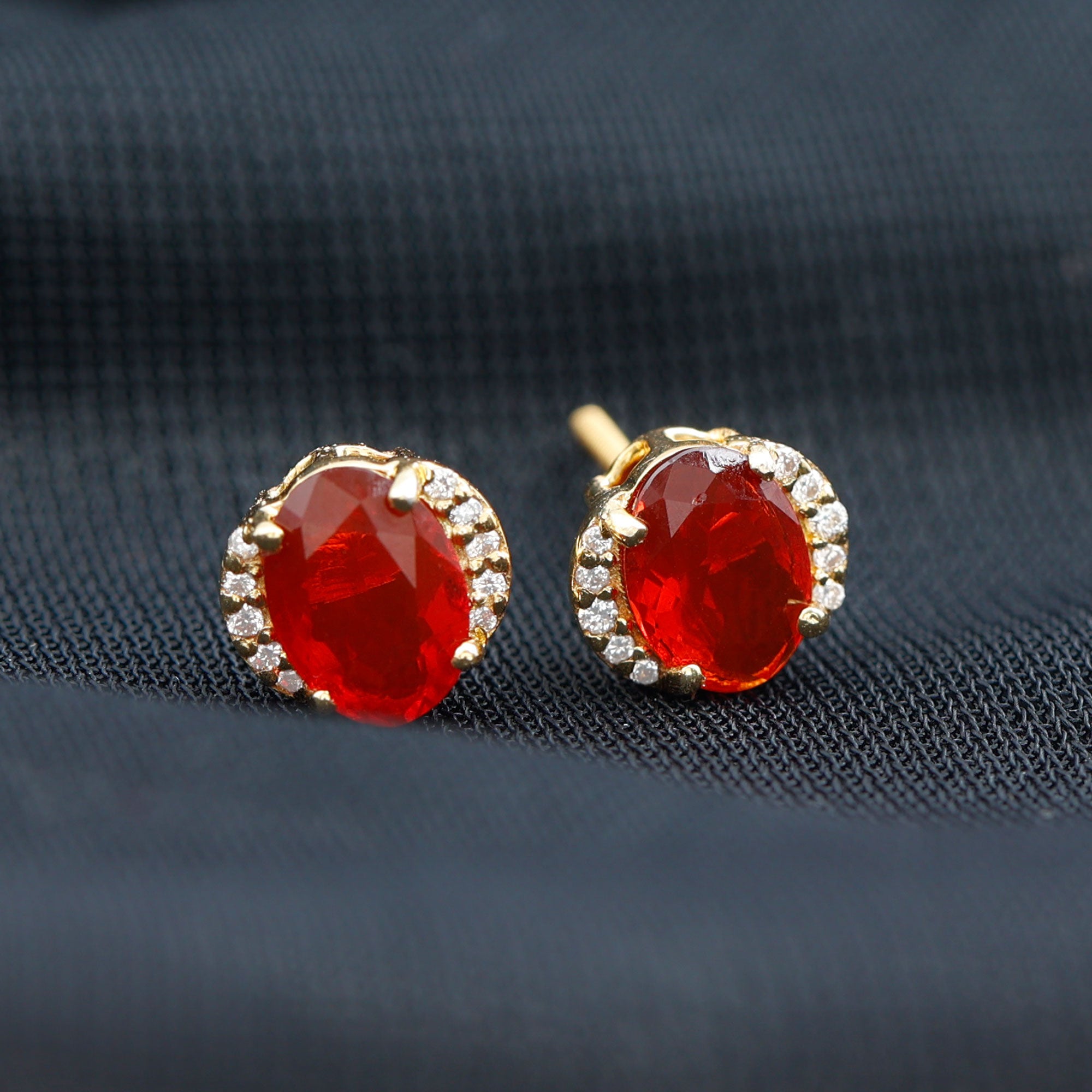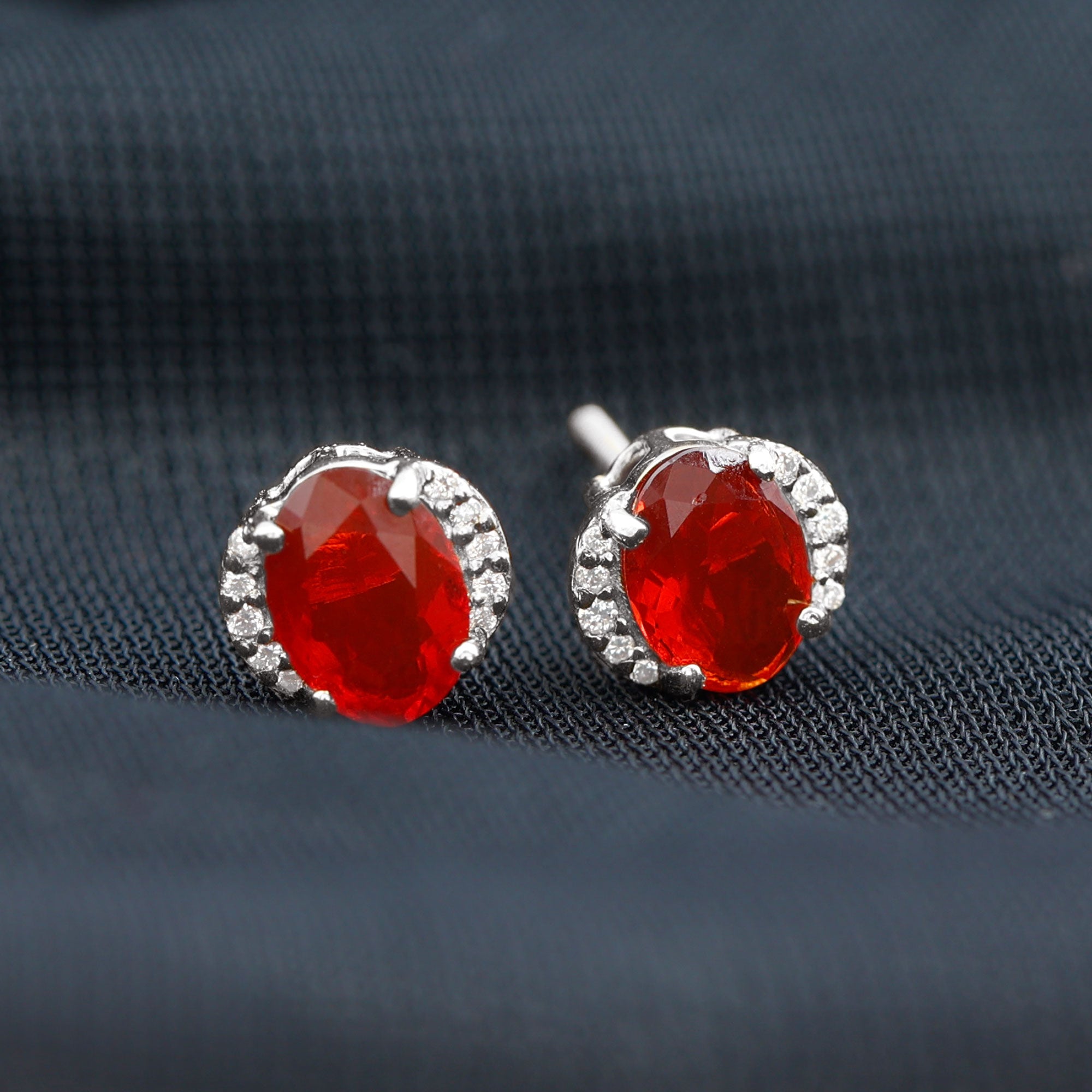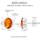 Oval Fire Opal Solitaire Stud Earrings with Diamond