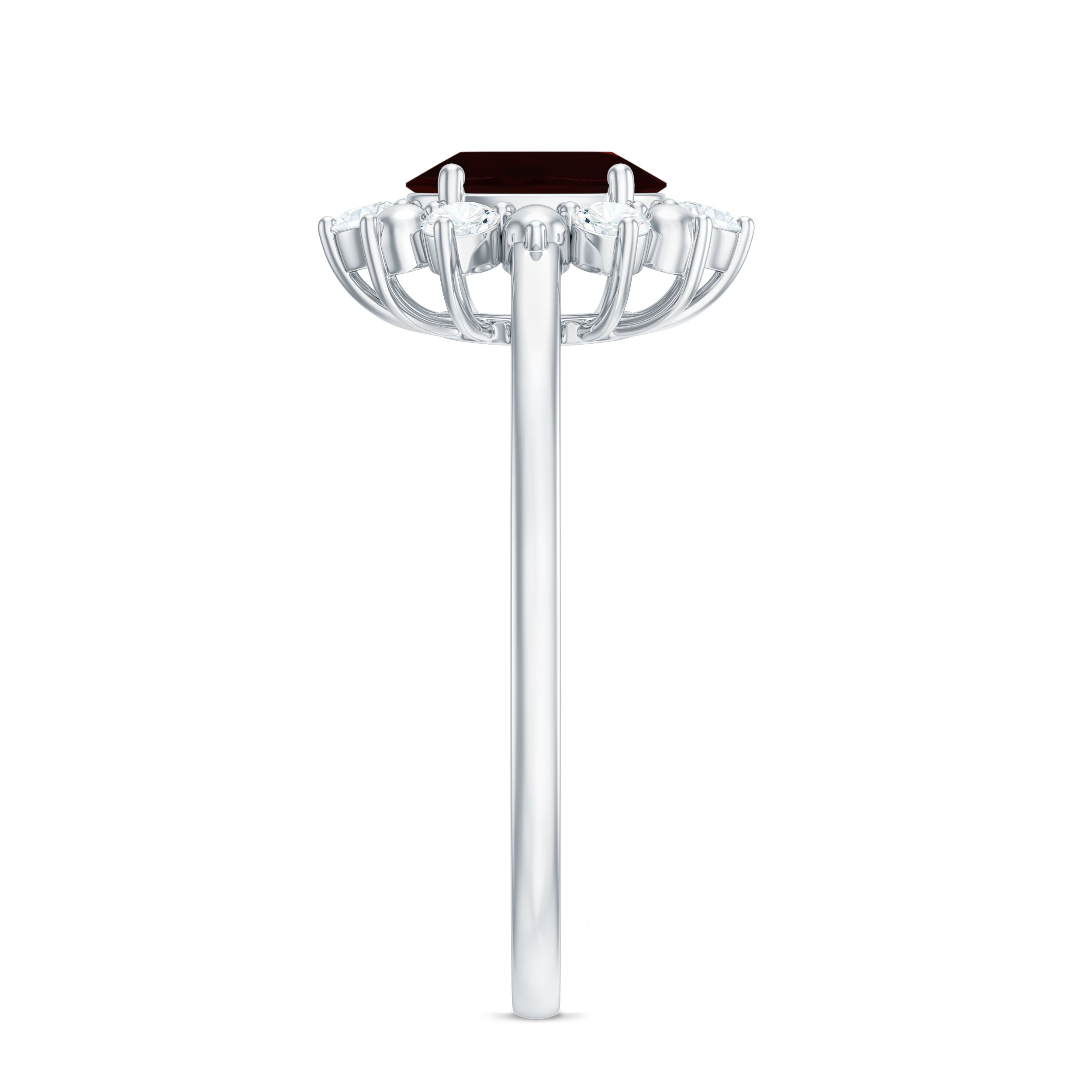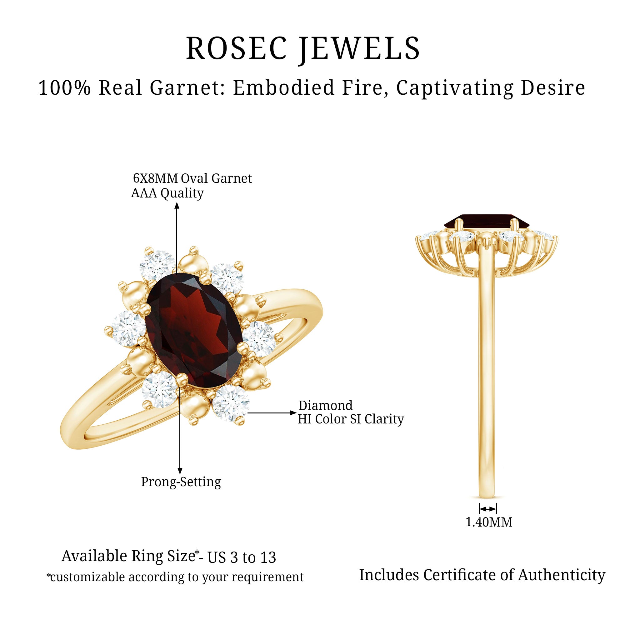 Oval Garnet Floral Halo Engagement Ring with Diamond