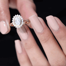 Surprise your beloved with the breathtaking charm of our Moissanite Engagement Ring on her special day, which enchants with its sophistication and beautifully accentuates the center stone.This timeless Oval Shape Engagement Ring features a D-VS1 quality Moissanite, ensuring the fire and brilliance that represent love and commitment. It showcases a 6X8 MM oval Moissanite at its center, surrounded by a halo.This Oblong Engagement Ring presents a classic brilliant shape that draws everyones gaze. This ring merges traditional beauty with contemporary elegance, providing a polished appearance that radiates exceptional brilliance.We have designed this Moissanite Halo Ring in a variety of precious metals, along with options for color and purity. Your Halo Engagement Ring will be delivered in an elegant jewelry box, guaranteeing safe and secure transport during shipping and for future storage.This timeless piece is destined to become a cherished addition to her jewelry collection that she will hold dear for a lifetime.