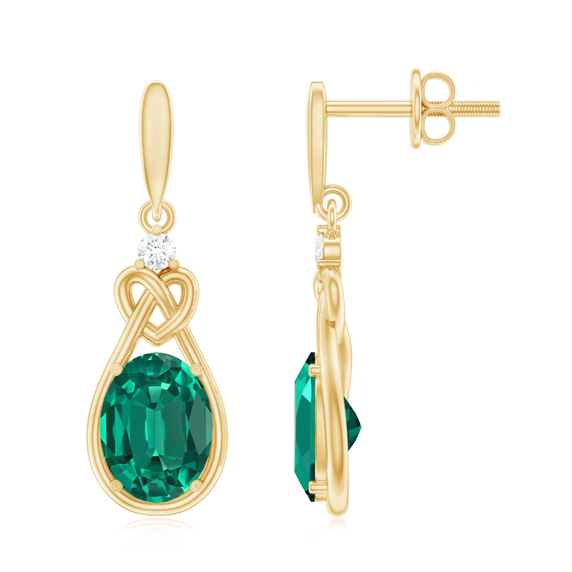 Oval Lab Created Emerald Love Knot Dangle Earrings