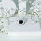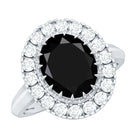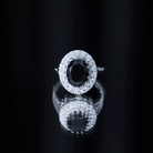 Oval Lab Grown Black Diamond and Moissanite Halo Engagement Ring