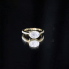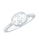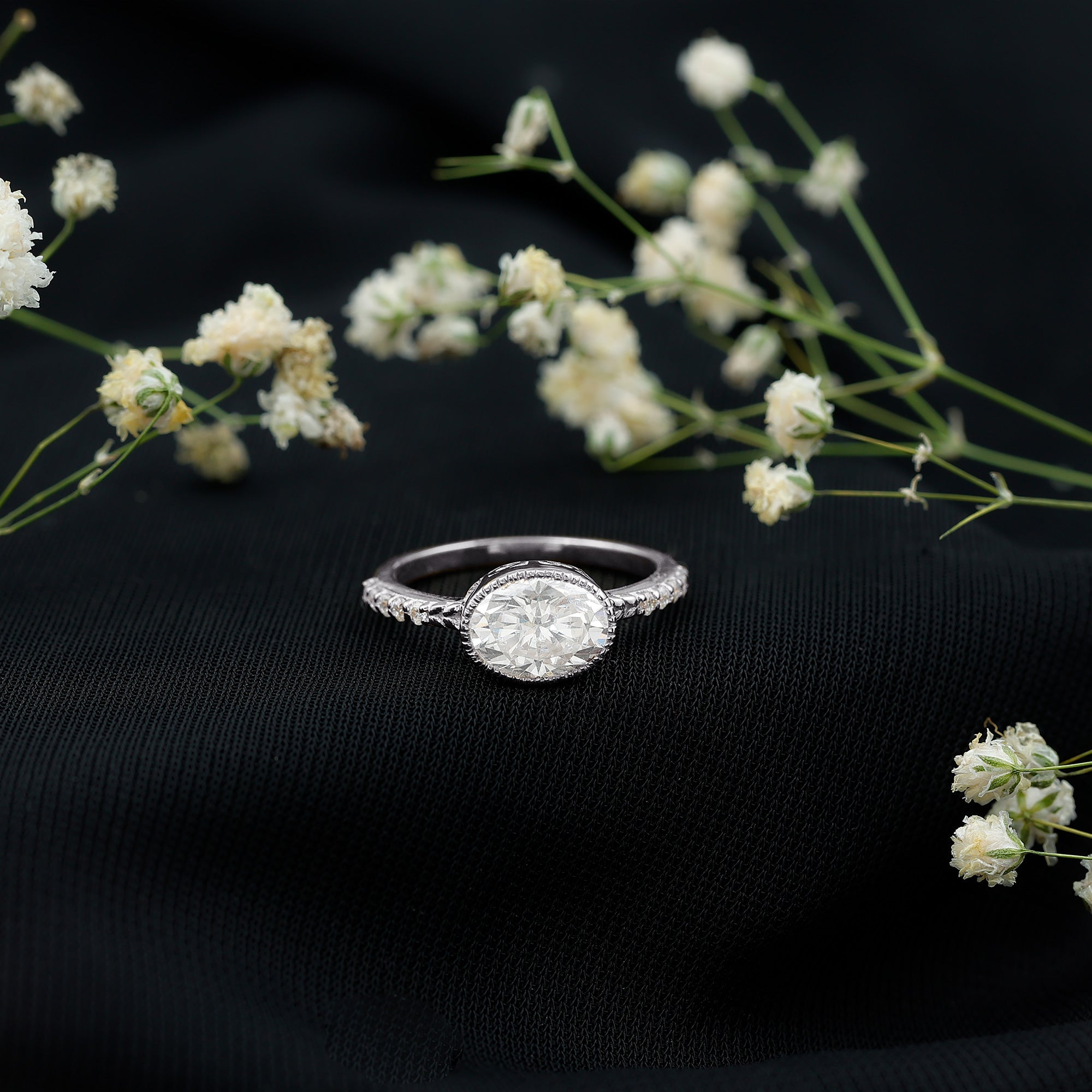 Enchant your beloved with the Solitaire Engagement Ring, a masterpiece of timeless elegance and understated allure. This ring is a tribute to the purest emotions, celebrating the bonds of love and commitment. Set in a sleek and secure Bezel Setting, the Oval Shape Lab Grown Diamond takes center stage, elegantly positioned in an East West direction. Accentuating its beauty are the delicate Side Stones that radiate brilliance and grace, enhancing the rings overall appeal. With this exquisite piece, youre not only pledging your love but also offering a symbol of enduring sophistication and devotion that will stand the test of time.