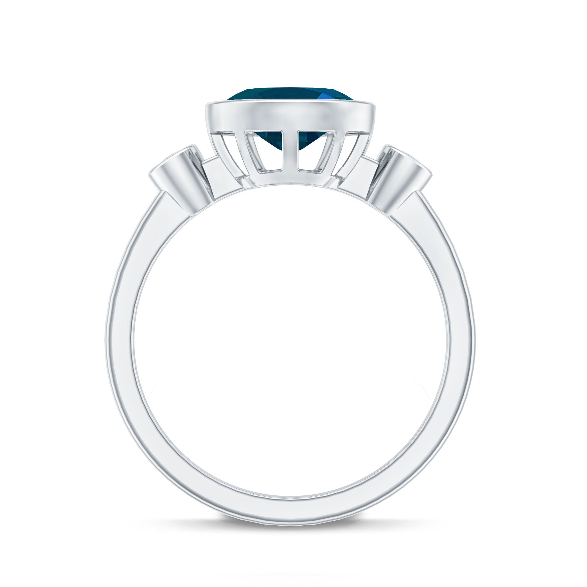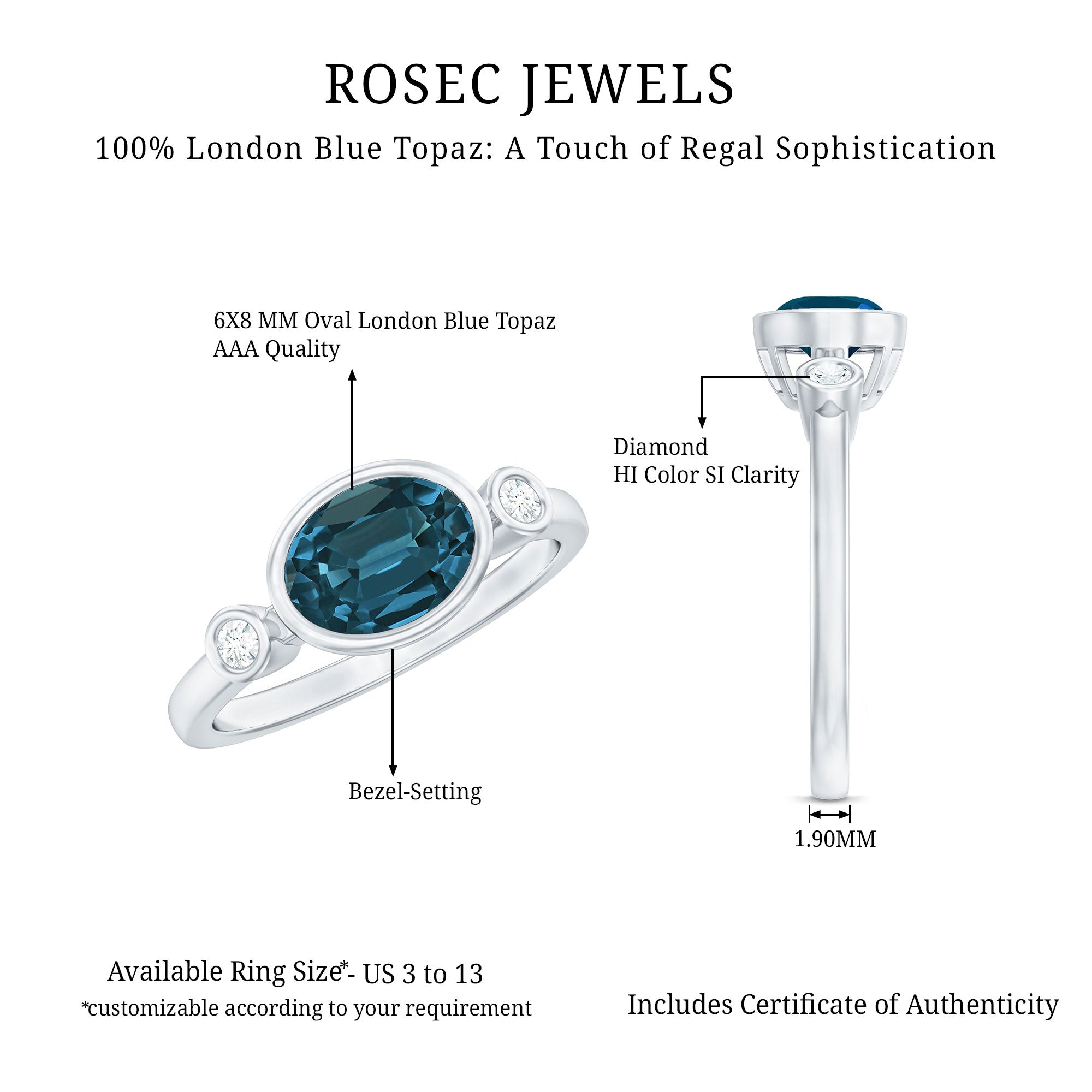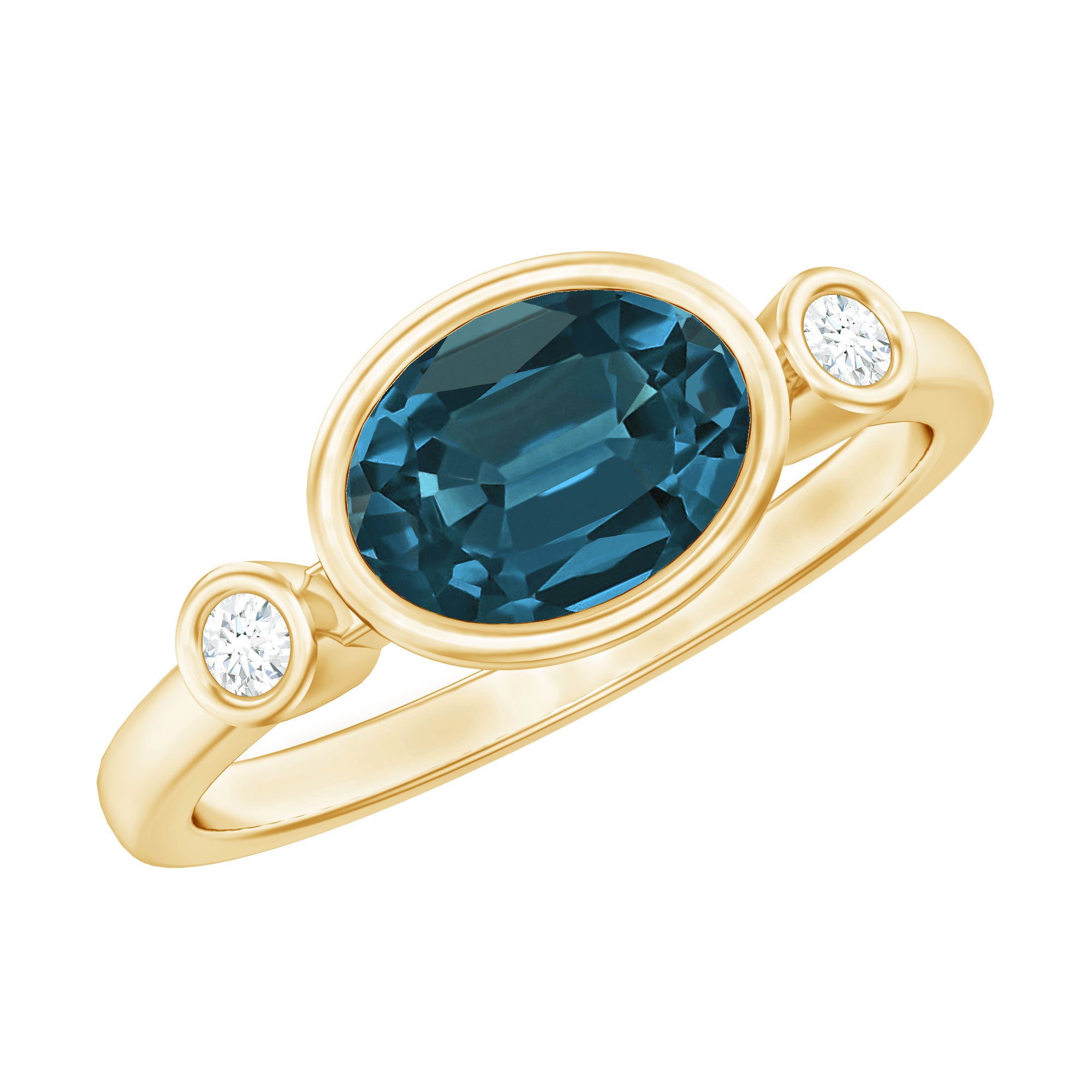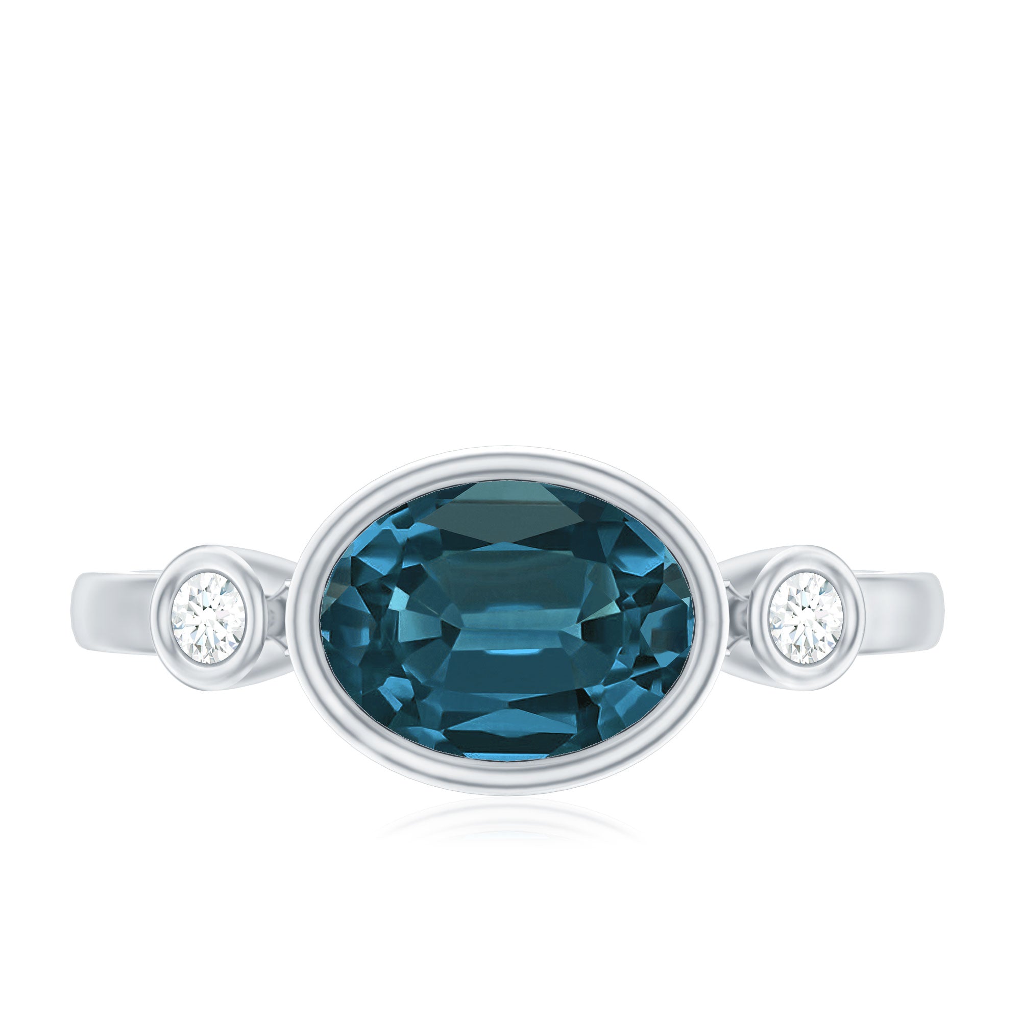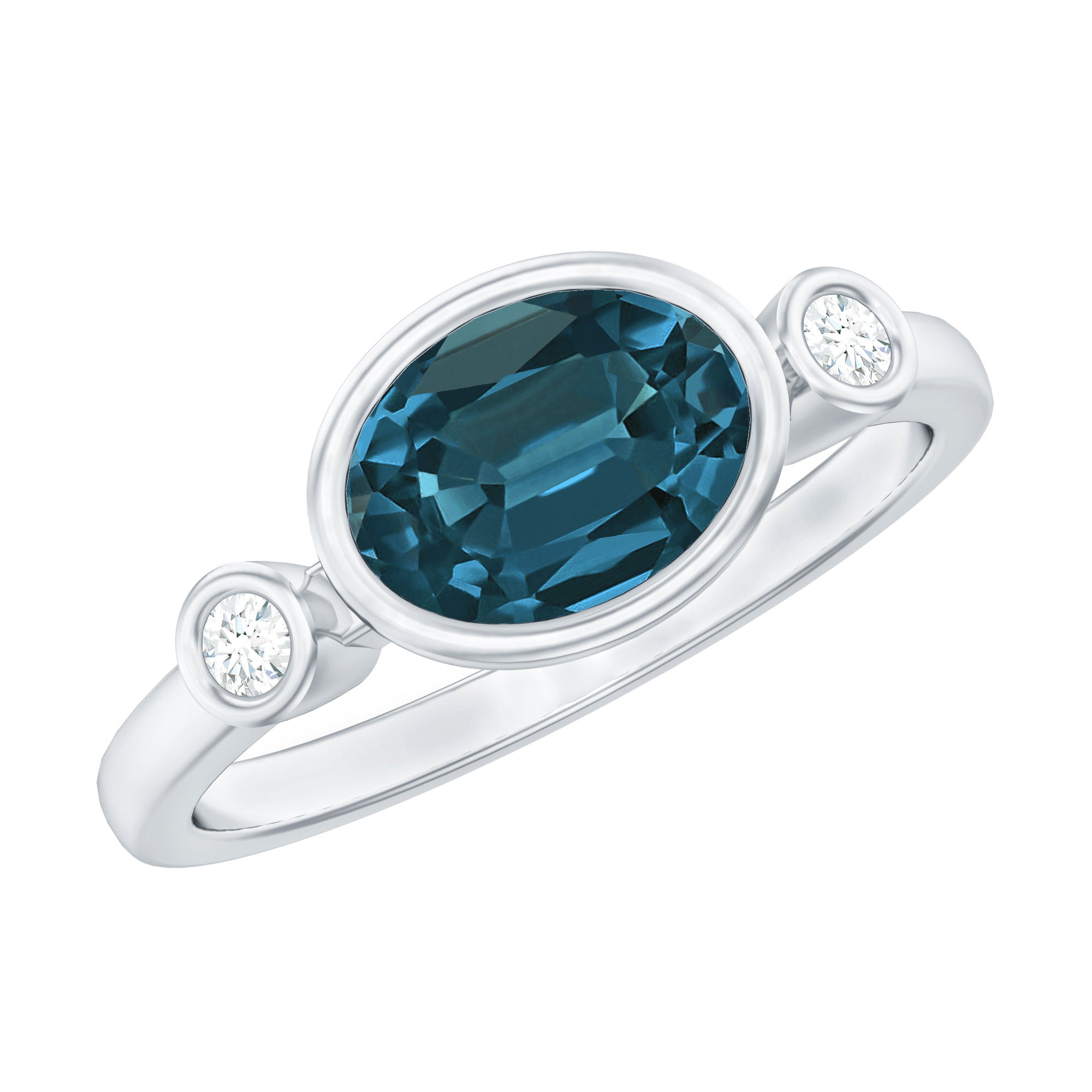 Oval London Blue Topaz Bezel Set Engagement Ring with Diamond