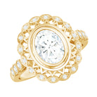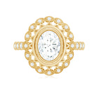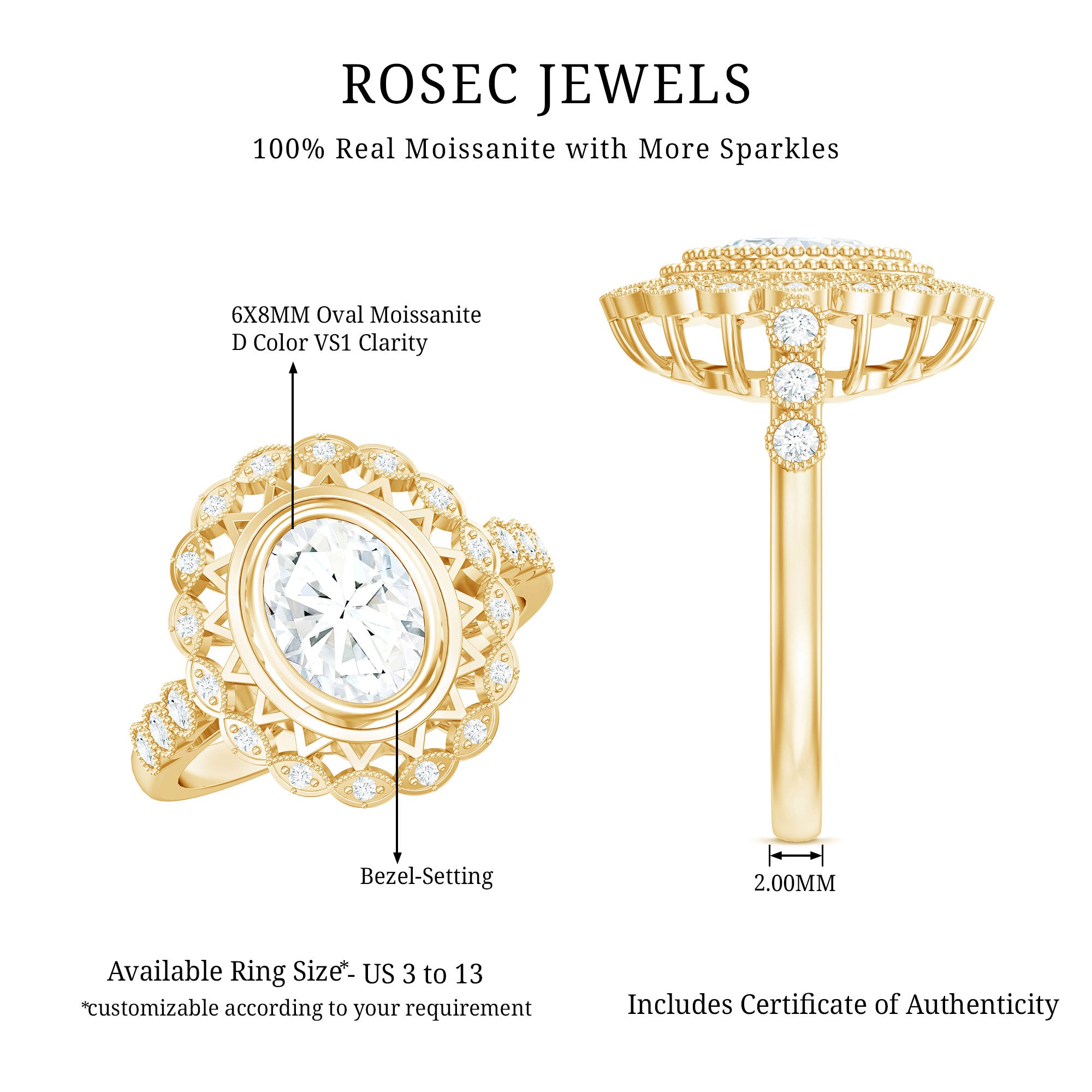 Oval Moissanite Retro Engagement Ring in Beaded Bezel Setting