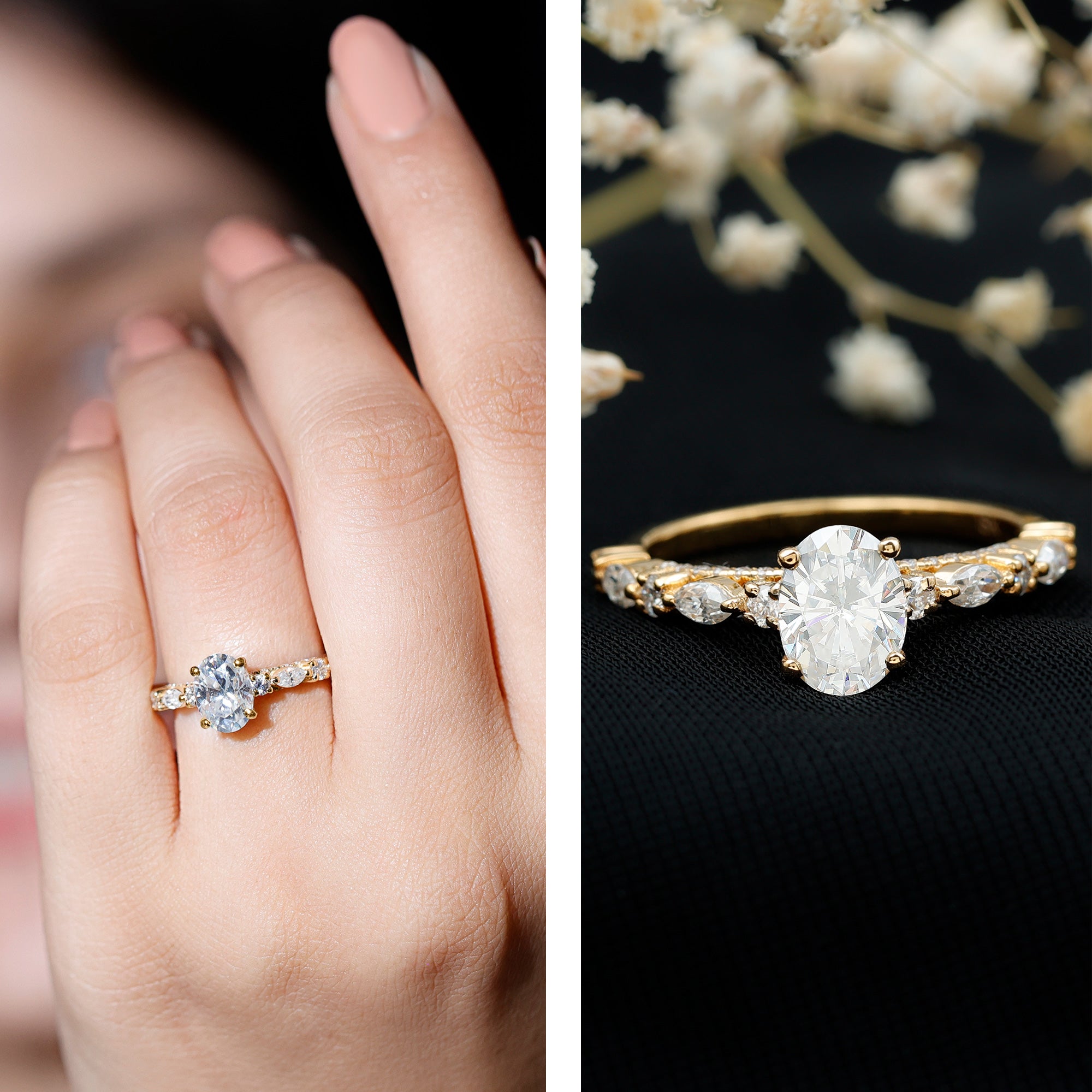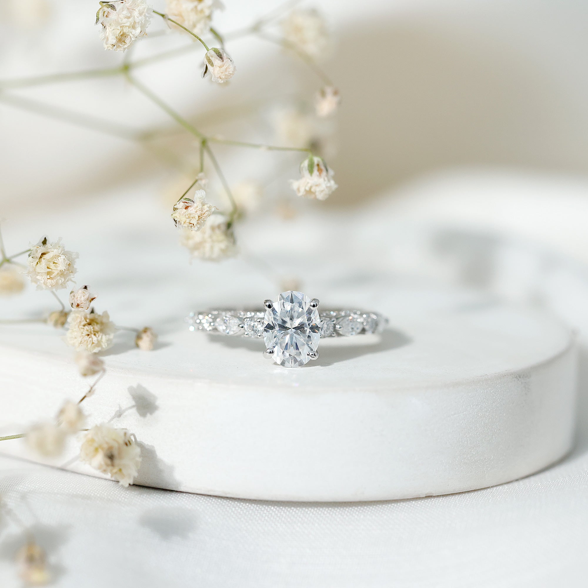 Oval Moissanite Solitaire Engagement Ring in Claw Setting