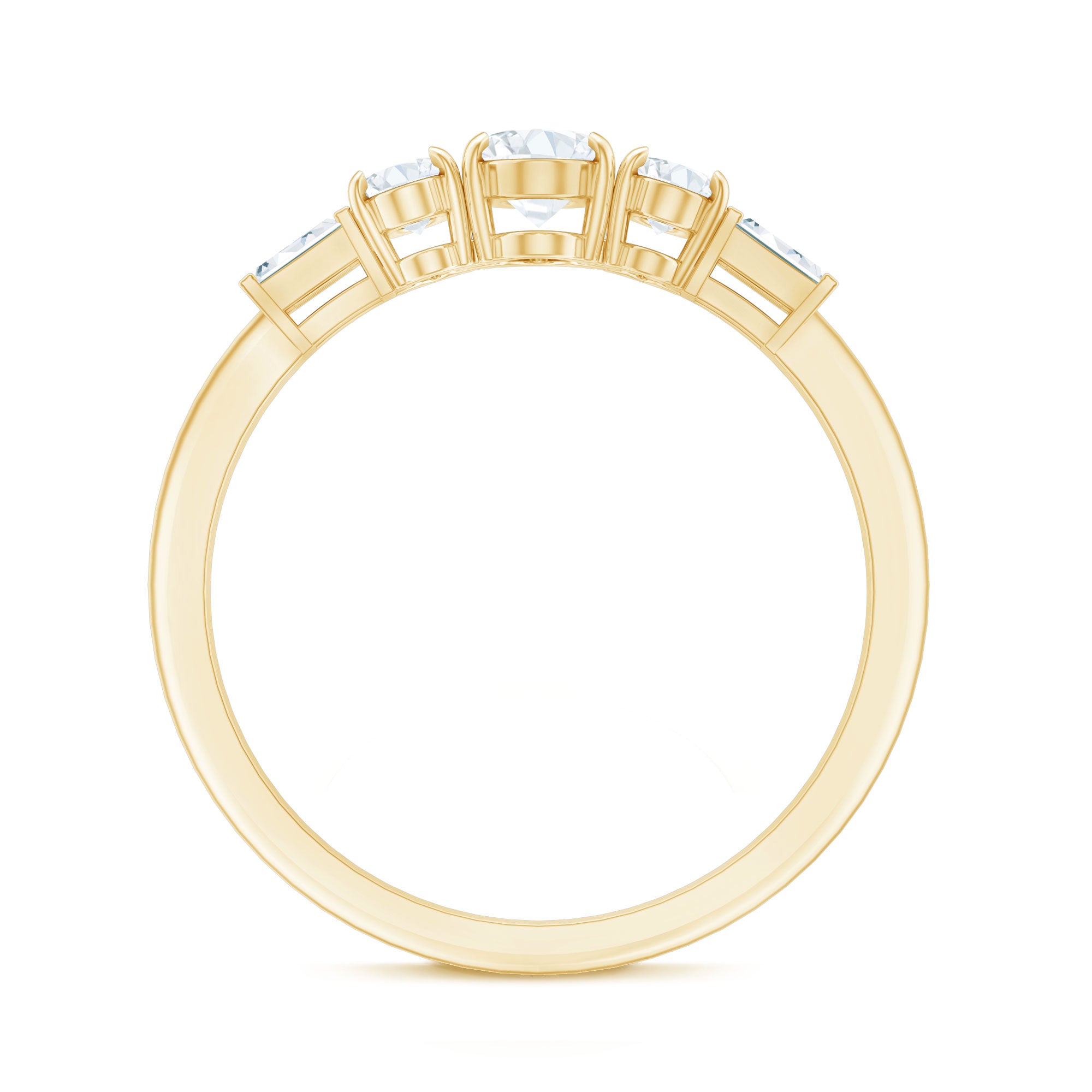 Celebrate a love that grows stronger with time with this elegant Moissanite Anniversary Ring. Thoughtfully designed to mark a special milestone, this Three Stone Moissanite Ring beautifully combines classic style with a meaningful message. The three oval shaped moissanite stones at the center symbolize your past, present, and future together, each one shining bright with D color and VS1 clarity for unmatched brilliance and sparkle. The center oval stone measures 4X6 MM and is flanked by two slightly smaller 3X5MM oval stones, creating a balanced and eye-catching design. On either side of the main stones are baguette cut moissanites set horizontally to add a modern touch, giving the 3 Stone Anniversary Ring a sophisticated finish. This Oval Moissanite Ring is a timeless reminder of your journey as a couple. Whether you are celebrating your first anniversary, ten years, or more, it is a meaningful way to show your love and commitment. Its elegant style makes it perfect for daily wear or special occasions, and it pairs easily with other jewelry pieces. Give the gift of sparkle and love with this stunning Past Present and Future Ring.