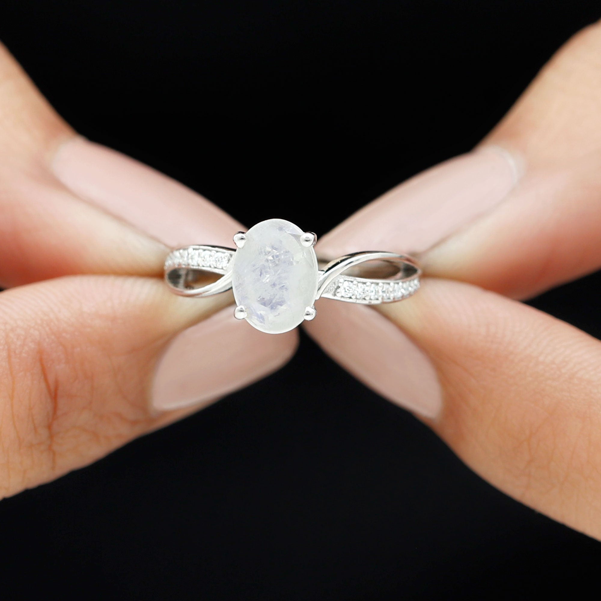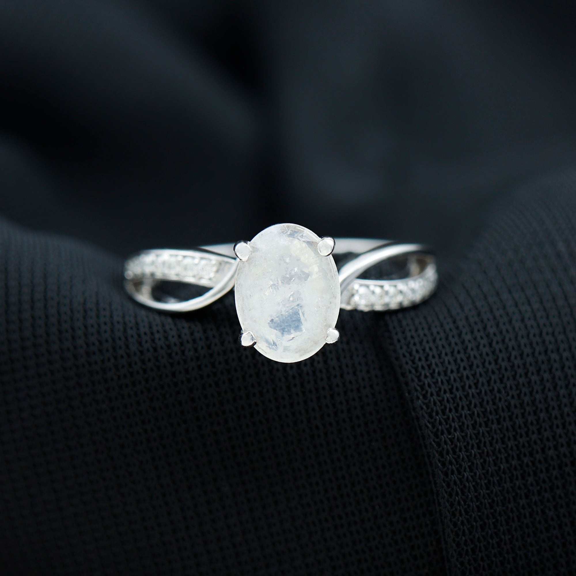 Oval Moonstone Solitaire Engagement Ring with Split Shank