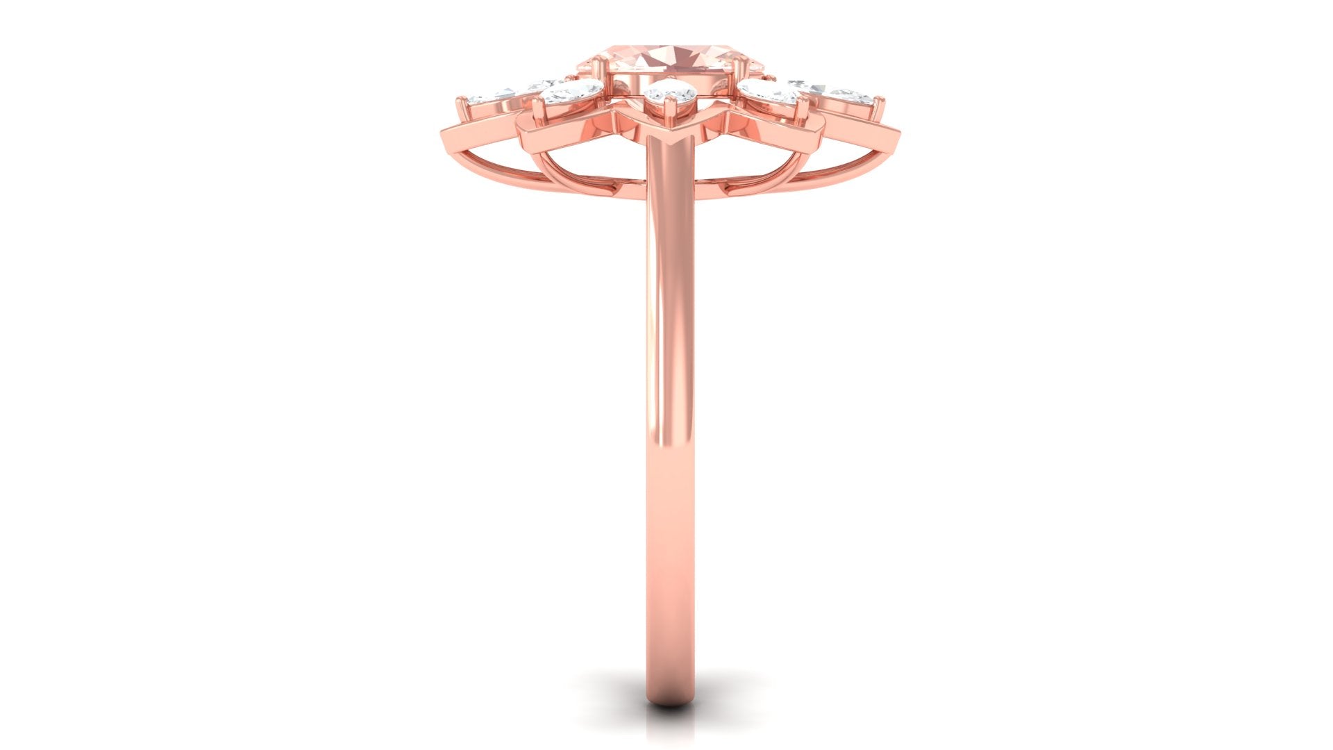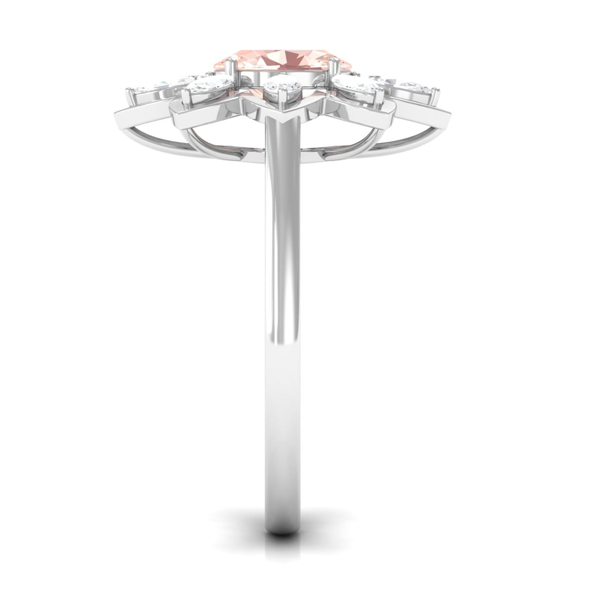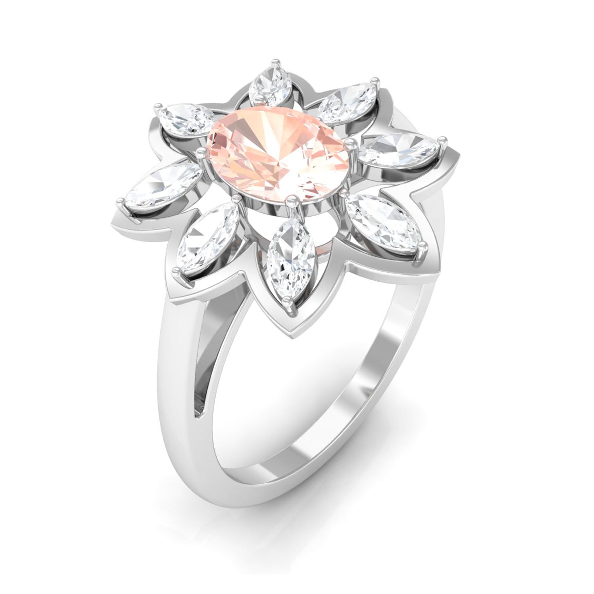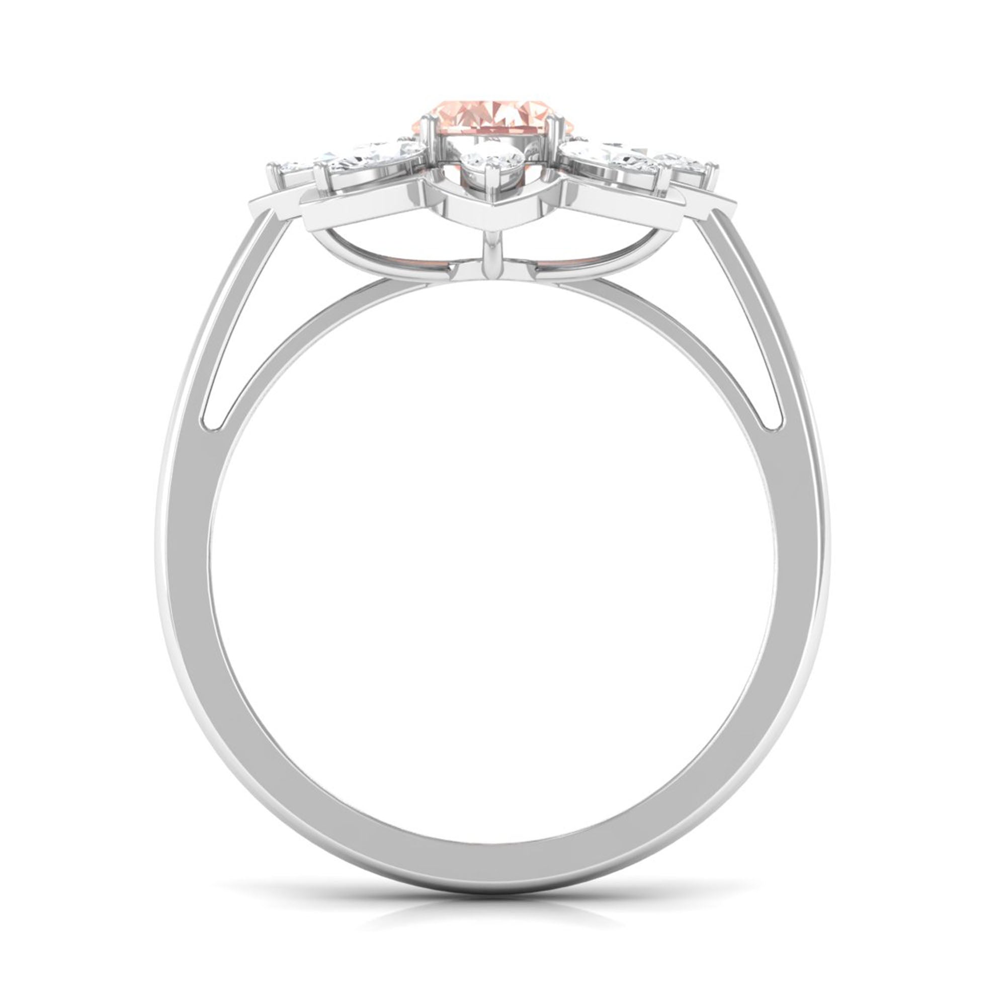Oval Morganite Flower Cocktail Ring with Moissanite