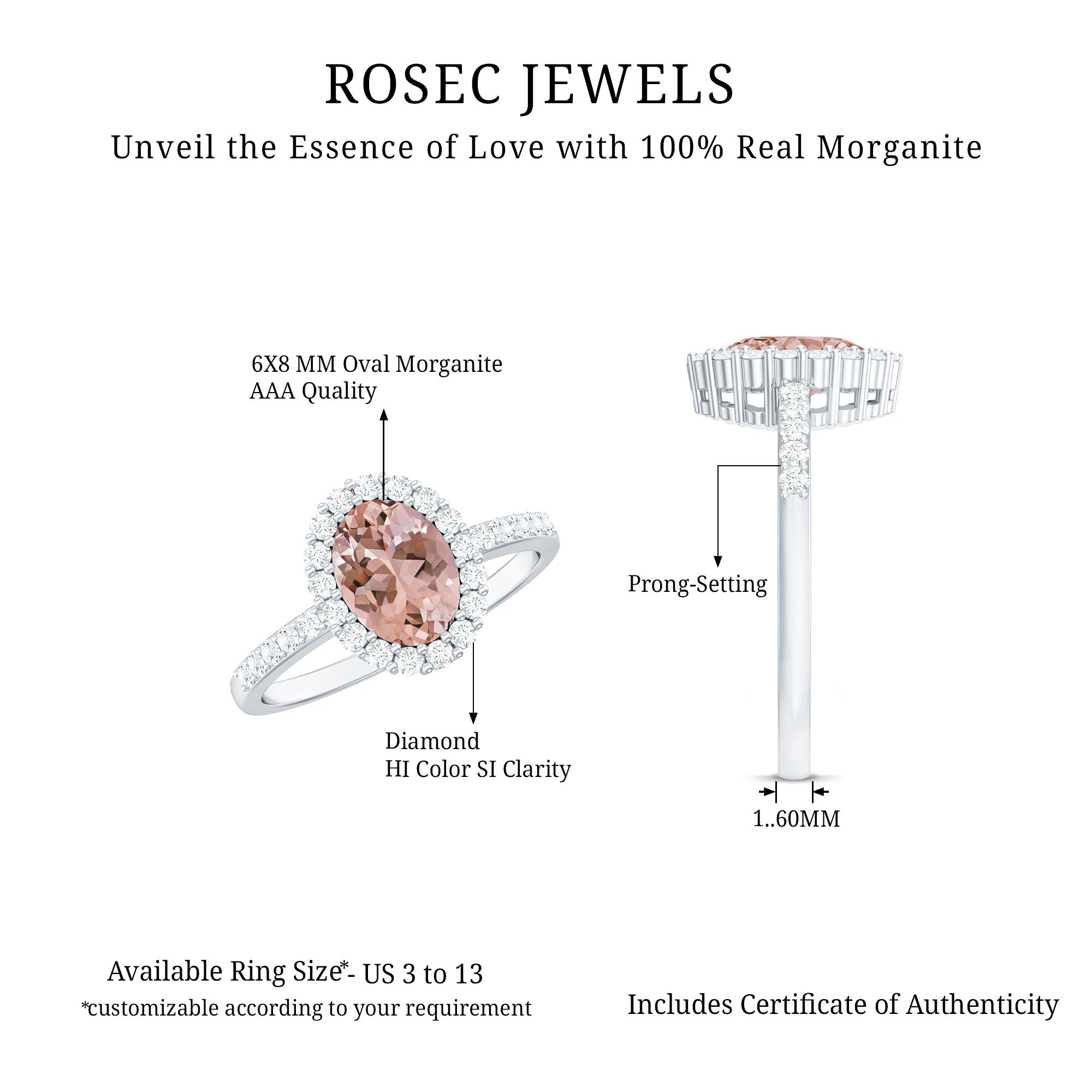 Begin your new journey of life with this Engagement Ring. Embellished with Oval Cut Morganite while Round Shape Diamonds studded as Halo and on the shank.. This Morganite Ring is crafted with Hallmarked Gold for an elegant appearance. So, dont wait to get this Oval Ring for your lady love as she can wear it with any ensemble for years and years to come.