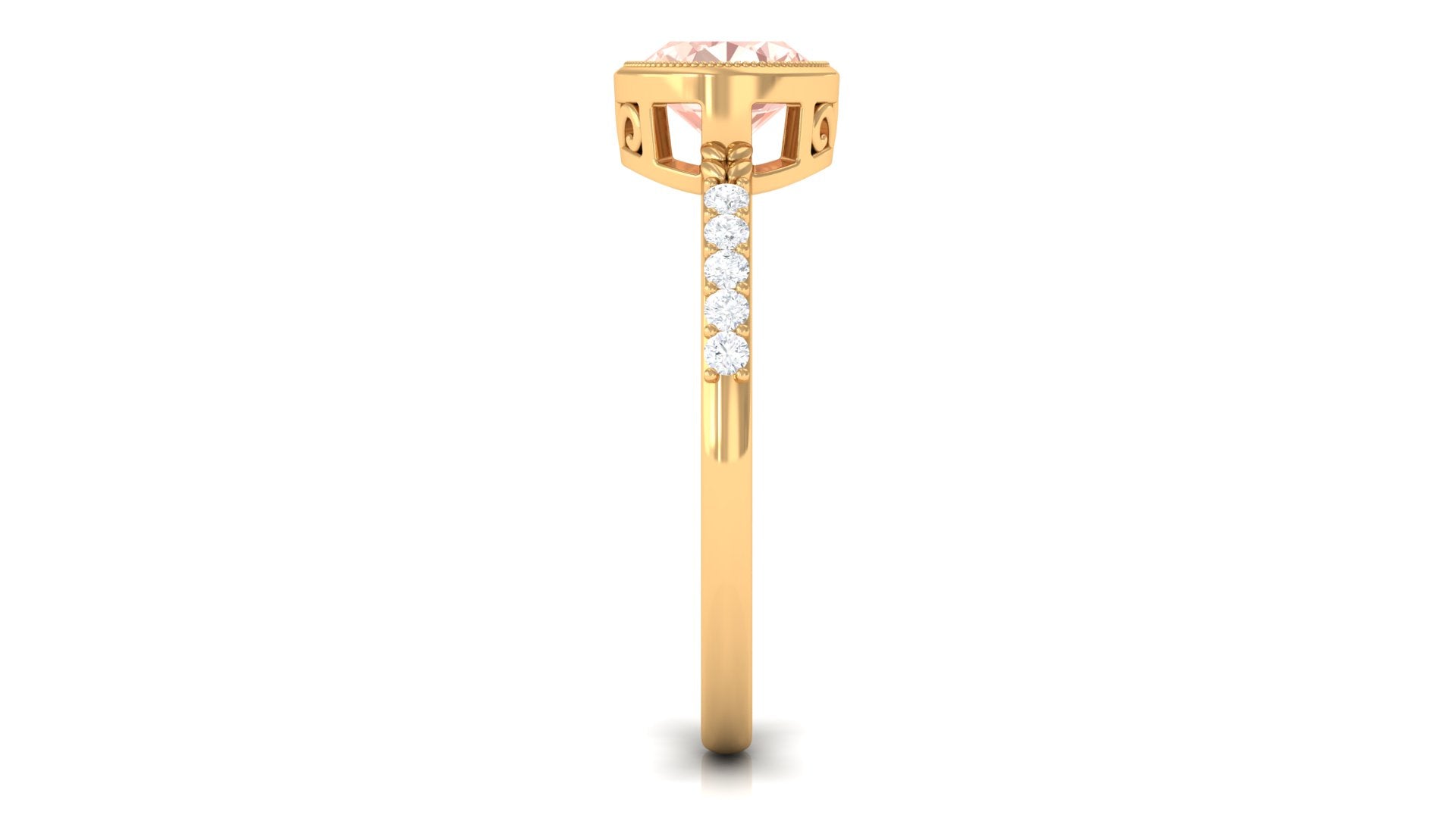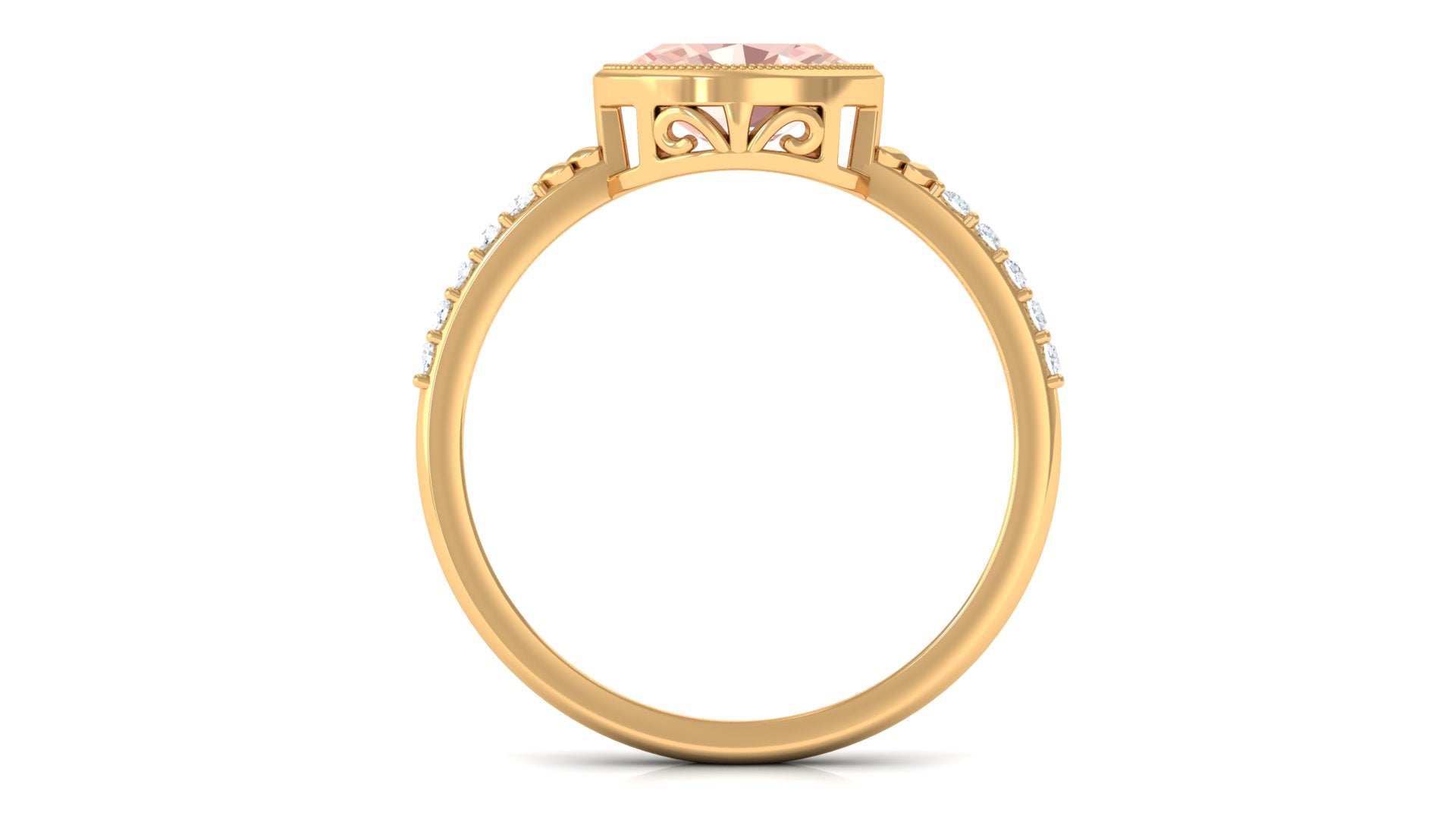 Embrace the ethereal beauty of this Solitaire Engagement Ring, featuring a 6X8 MM Oval Shape Morganite gemstone set horizontally in Beaded Bezel Setting graced by the enchanting brilliance of Diamond gemstones. Its delicate design symbolizes loves enduring grace, making it the perfect choice for a proposal that sparkles with sophistication and sentiment.