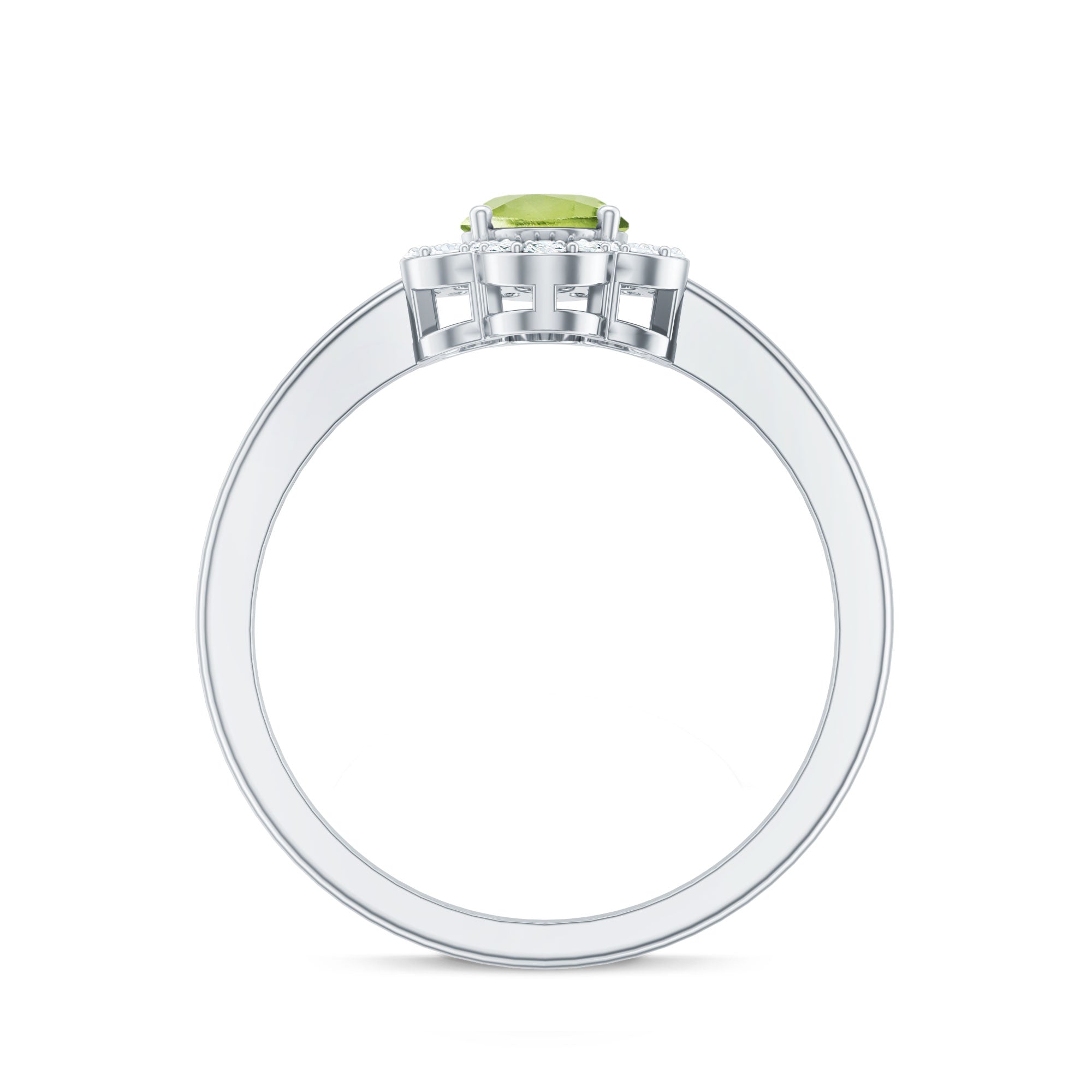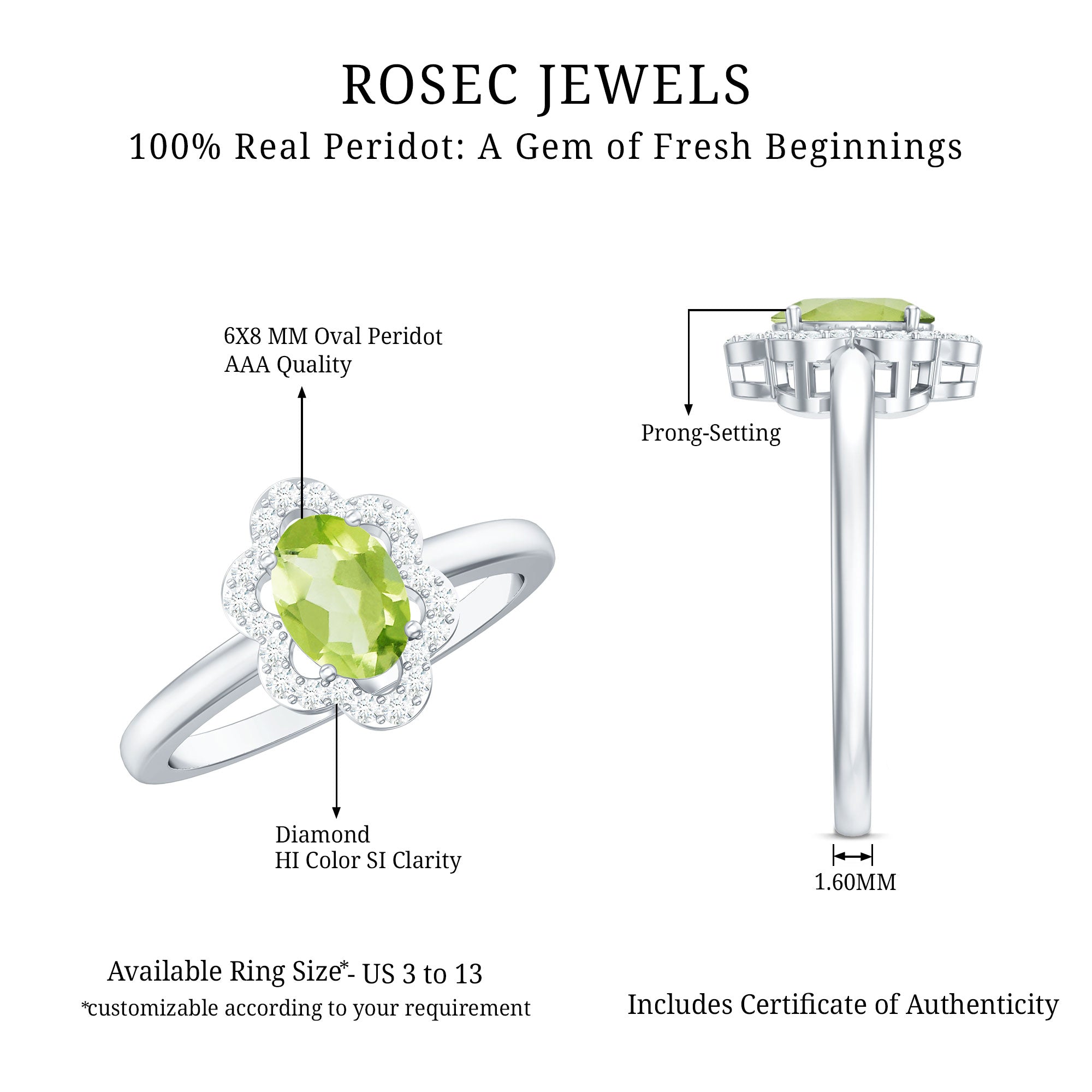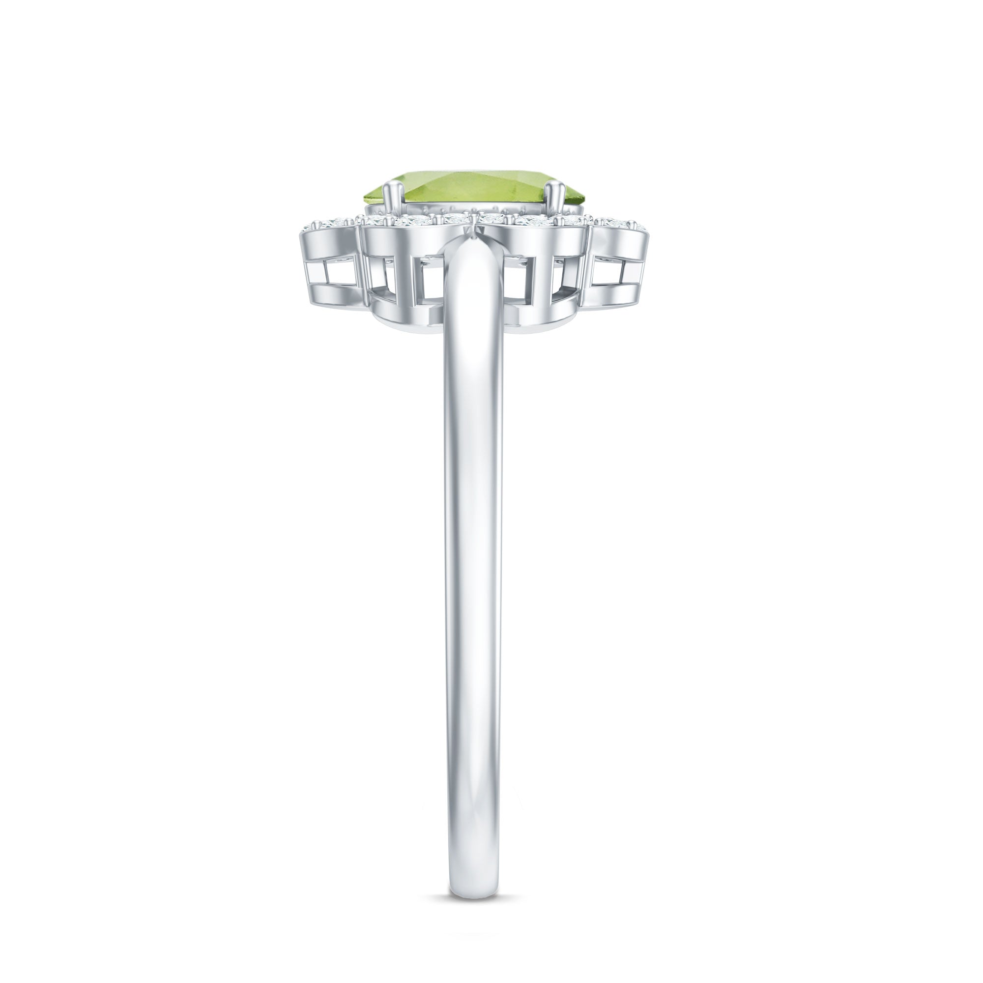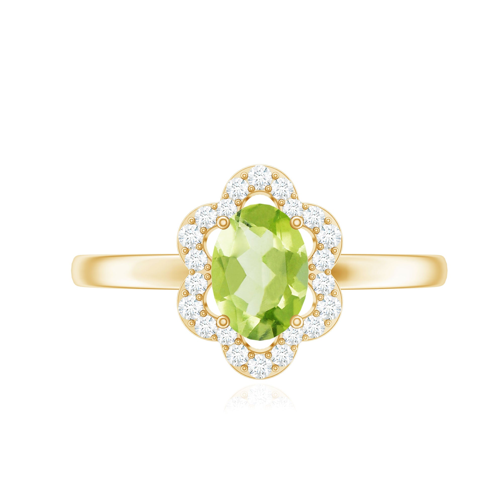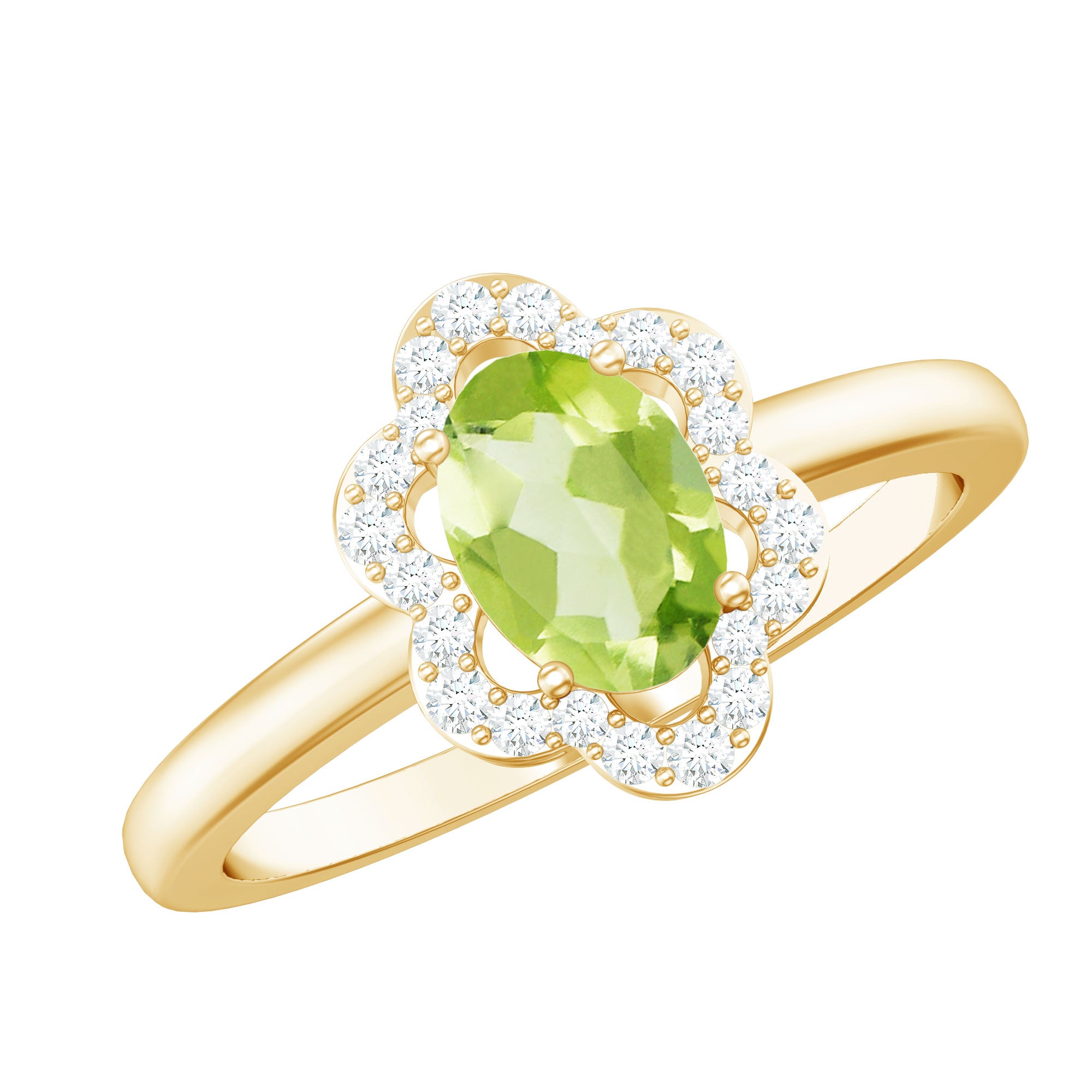 Make a bold statement with this Oval Peridot Cocktail Floral Ring, adorned with radiant Diamond, a captivating blend of nature and sophistication.