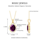 Step into timeless elegance with this Vintage Inspired Rhodolite Garnet Pendant Necklace, beautifully crafted to blend classic charm with modern sparkle. At the heart of the design lies a stunning 8X10 MM oval shaped Rhodolite Garnet set in secure prong setting. Framing the center gem is a halo of shimmering lab created diamonds, giving this piece a vintage touch that feels both regal and romantic. The AAA quality Rhodolite and EF-VS quality lab grown diamonds are carefully selected for their brilliance and color, ensuring a show-stopping sparkle from every angle. Set in 14k yellow gold plated silver, the warm tones of the metal perfectly complement the vibrant centerpiece, adding richness and a timeless finish. The Vintage Art Deco Necklace hangs gracefully from a matching cable chain, offering just the right balance of elegance and wearability. This Rhodolite and Diamond Necklace is a piece with personality, perfect for adding vintage flair to your look or marking a meaningful occasion. From romantic evenings to everyday moments, let this heirloom-inspired necklace add a graceful, enduring sparkle to your story.