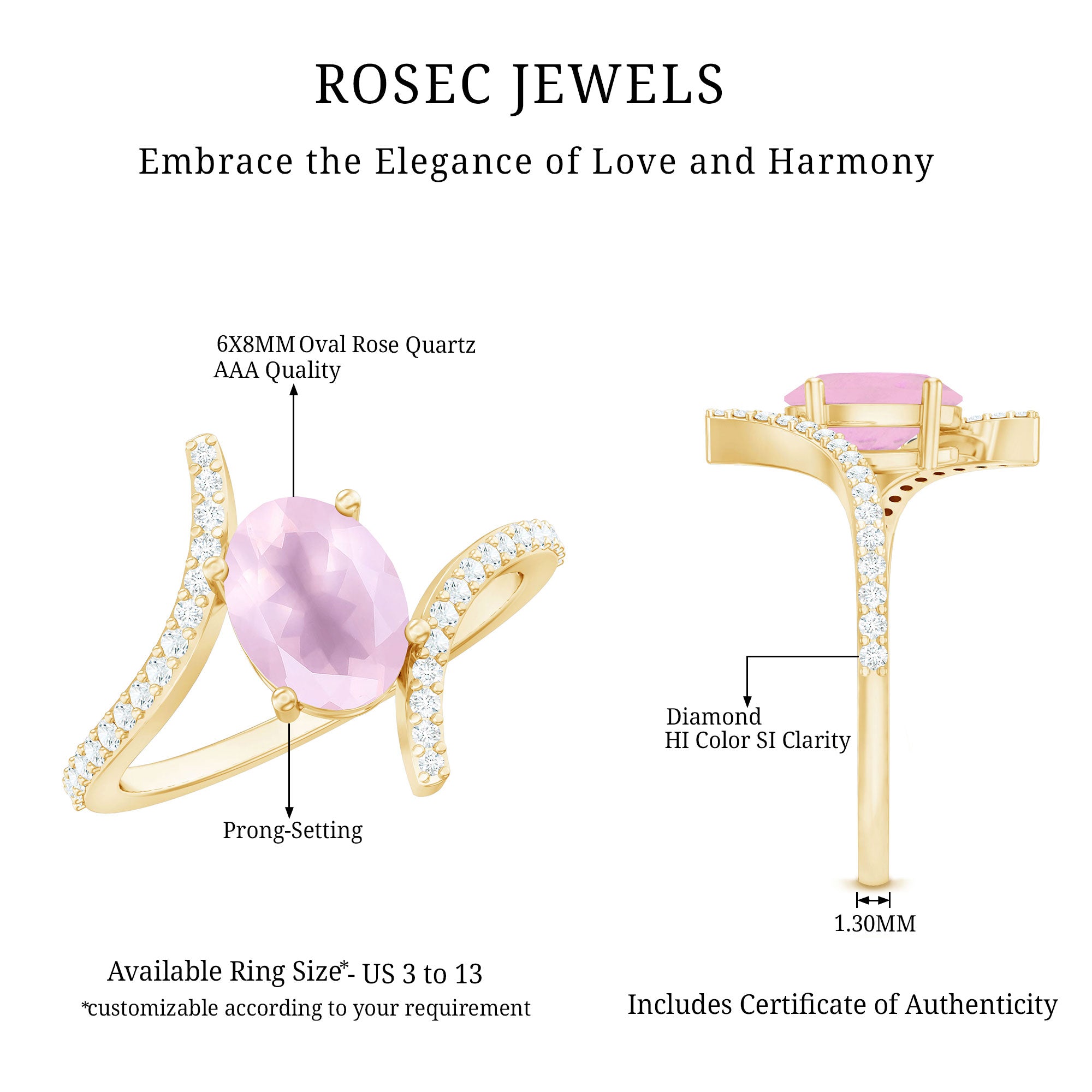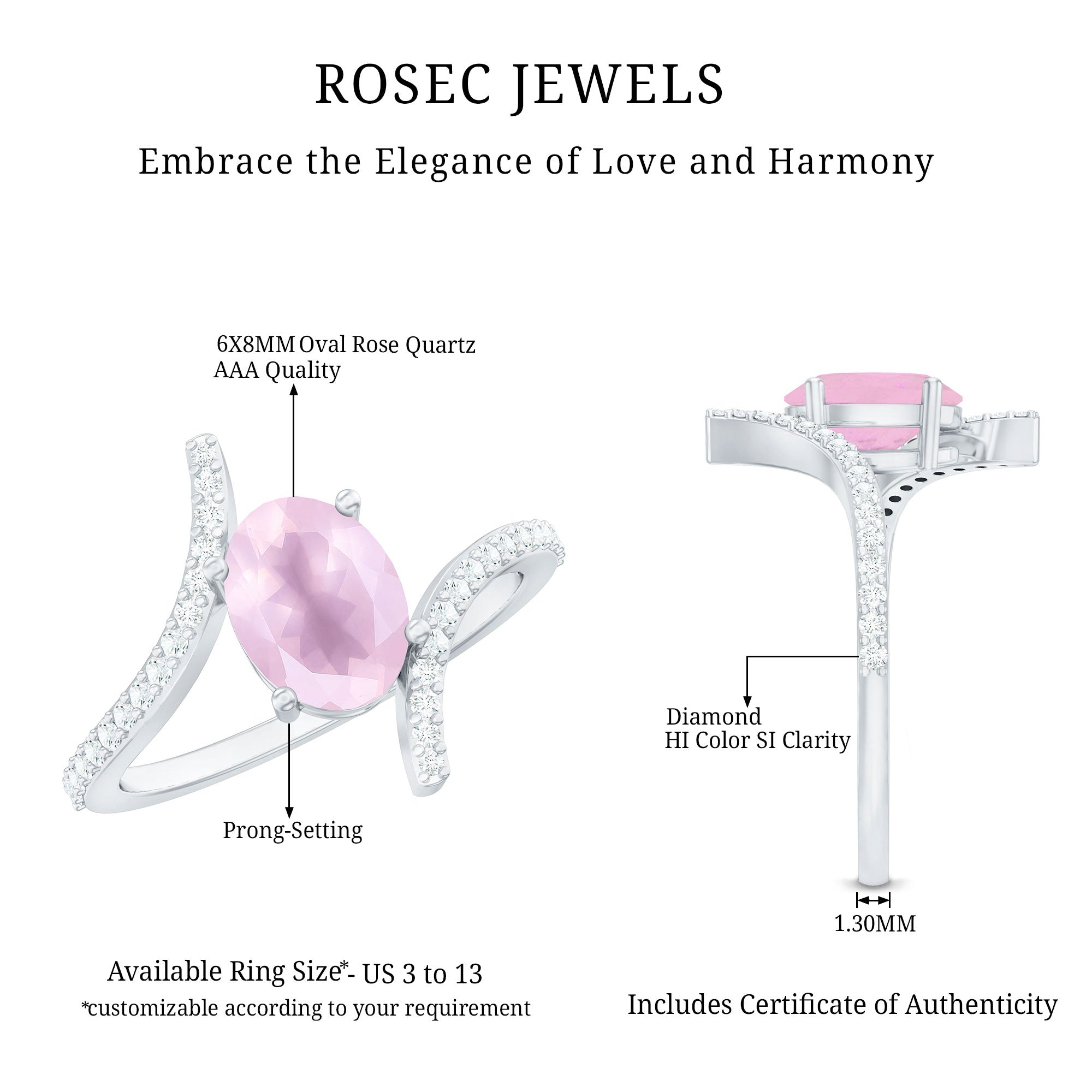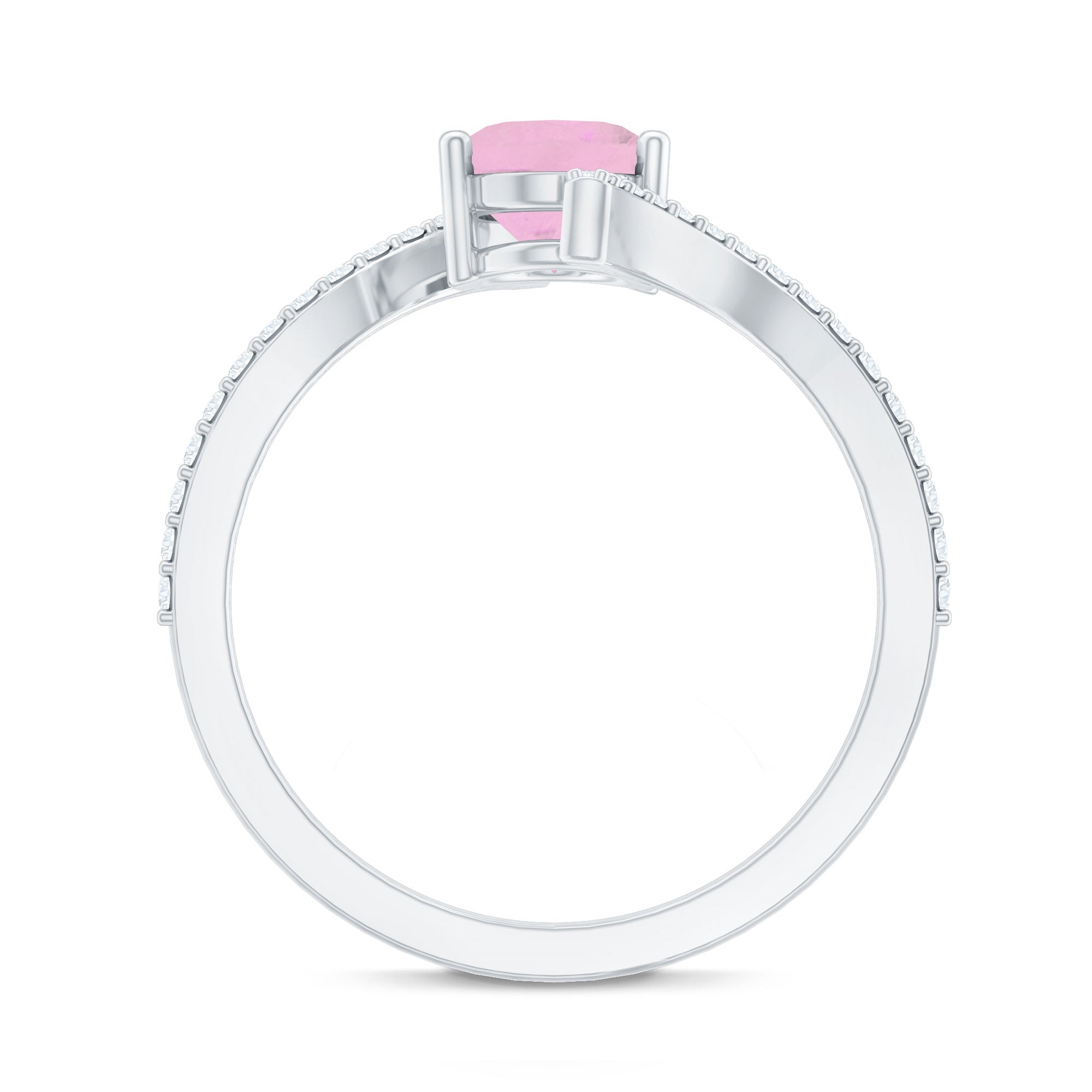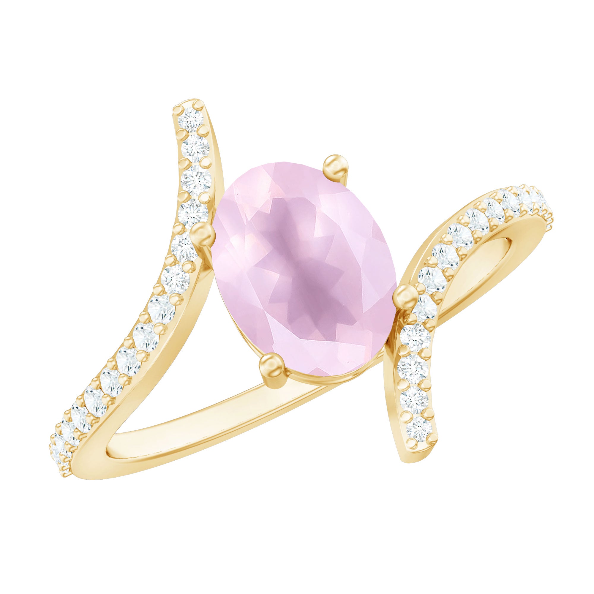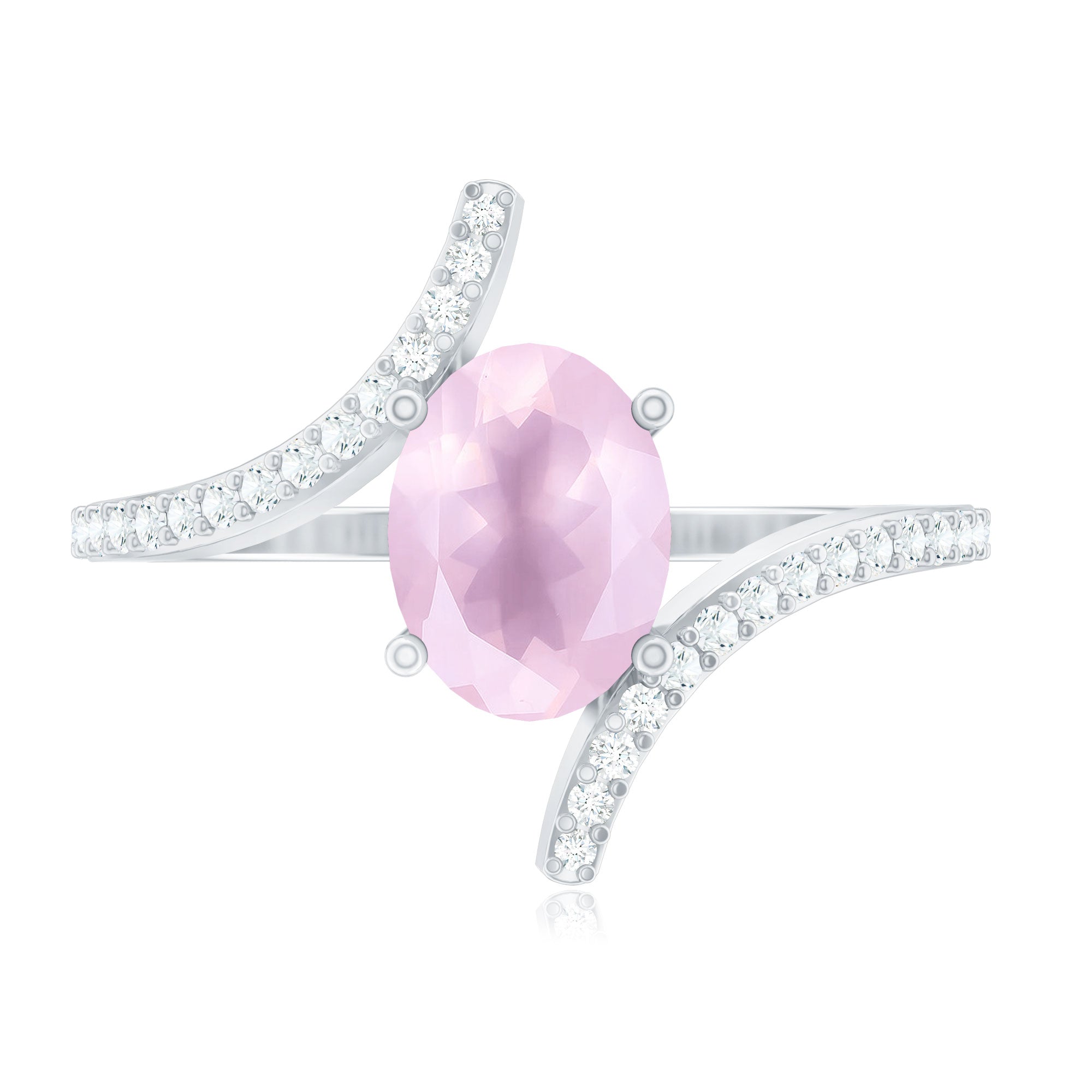 Oval Rose Quartz Solitaire Bypass Engagement Ring with Diamond