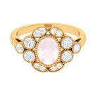 Oval Rose Quartz Statement Engagement Ring with Moissanite Halo
