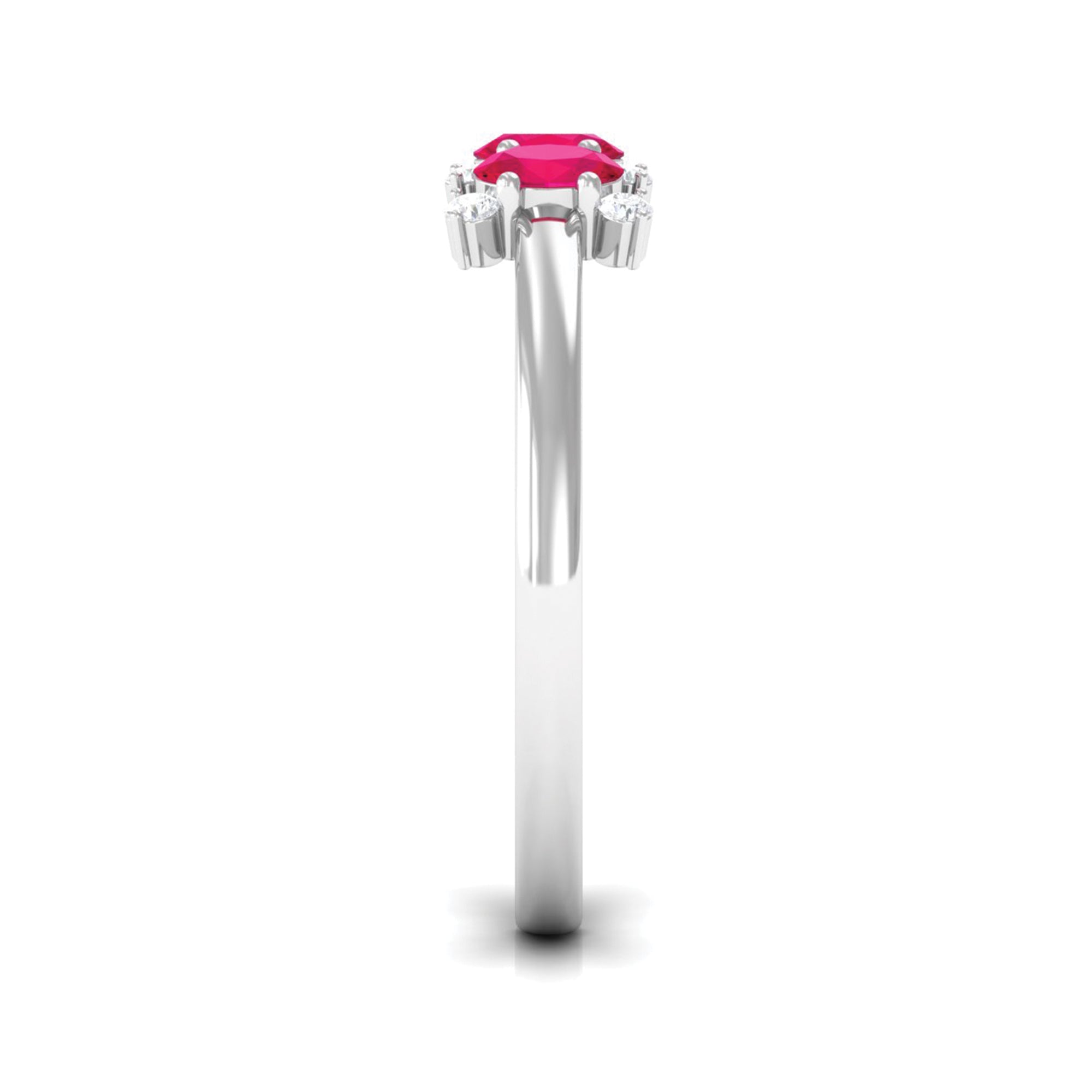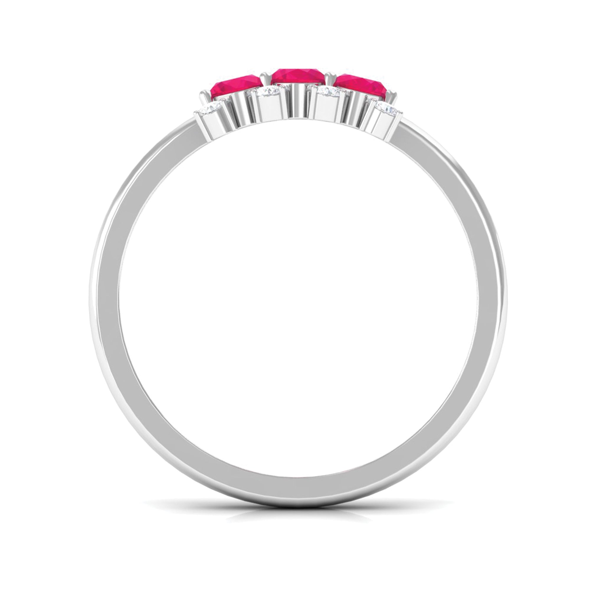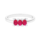 Make your love go forever with this Three Stone Promise Ring for a woman. This Three Stone Ring is consisting of Oval Shape Ruby and Round Diamond set in a prong setting.