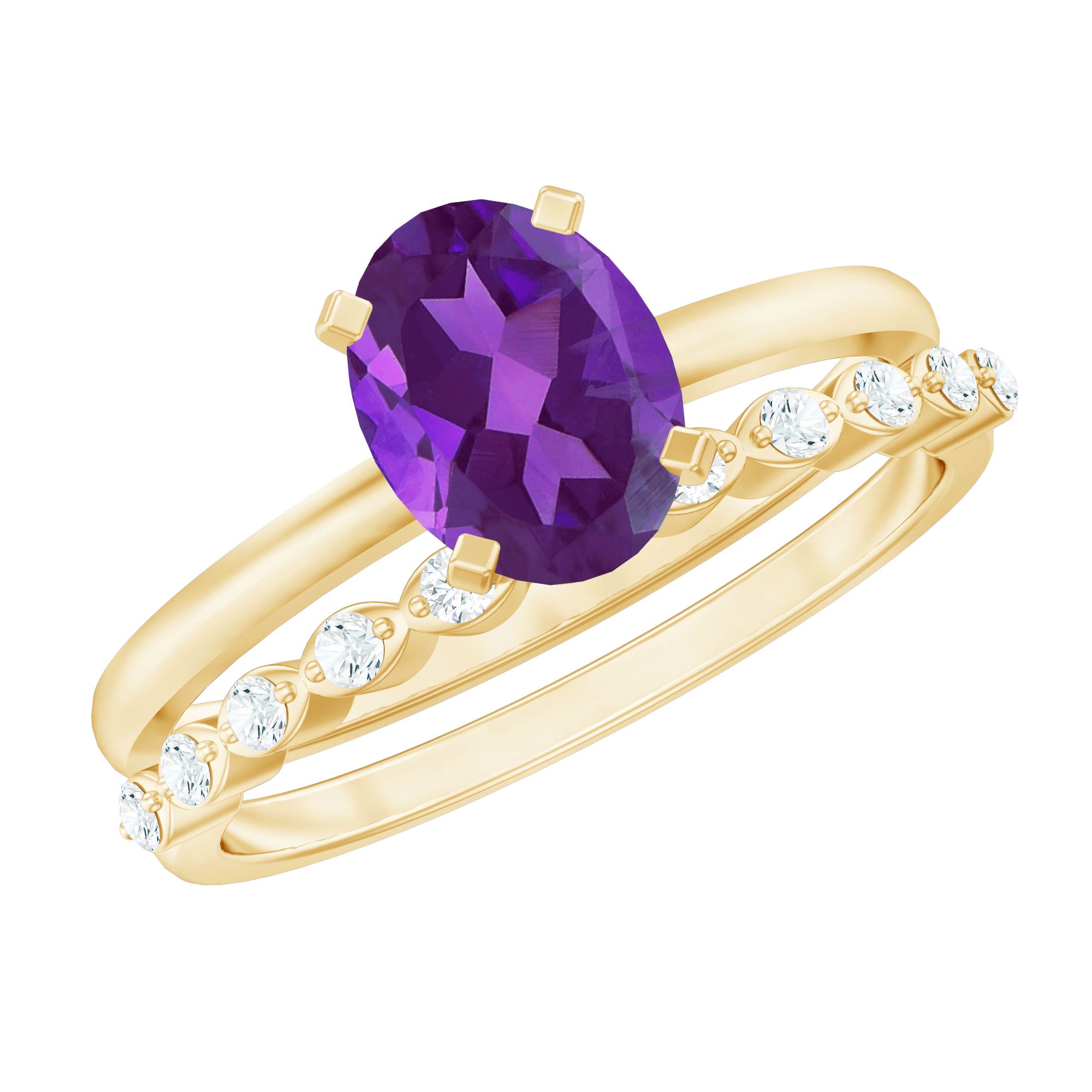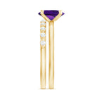 Oval Shape Amethyst Solitaire Ring Set with Diamond