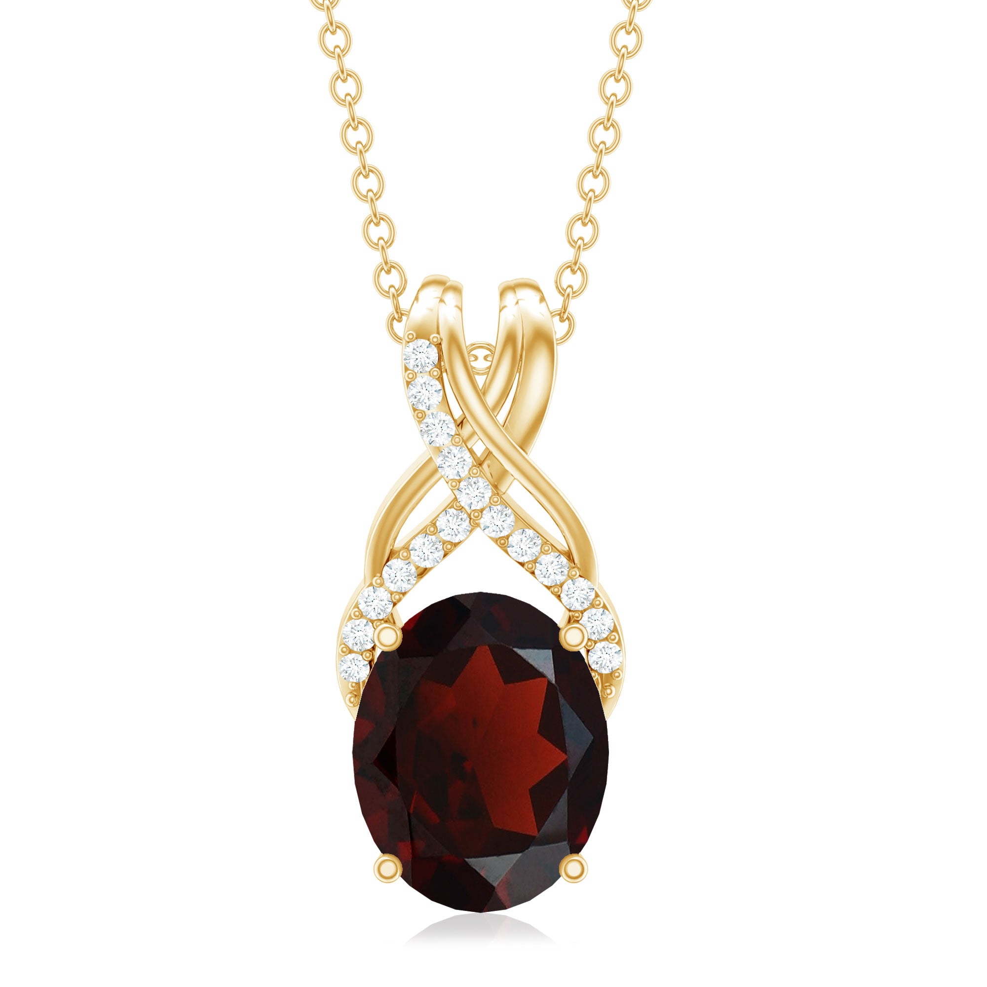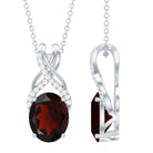 Oval Shape Garnet Solitaire Pendant Necklace with Diamond
