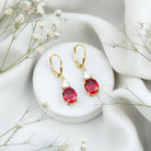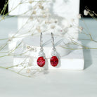 Oval Shape Lab Created Ruby Dangle Drop Earrings with Moissanite
