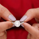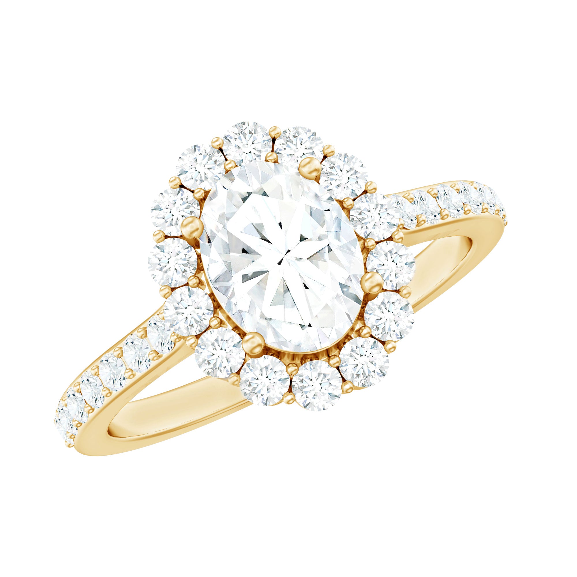 Leave your better half in awe with this Halo Engagement Ring. It boasts an exquisite Oval Shape Lab Grown Diamond, securely cradled in a Prong Setting, with additional Round Lab Grown Diamonds encircling it as a radiant halo and adorning the sides in a prong setting. This Lab Grown Diamond Engagement Ring is a testament to your love, making it the perfect choice for special events, especially those where you want to make a lasting impression.