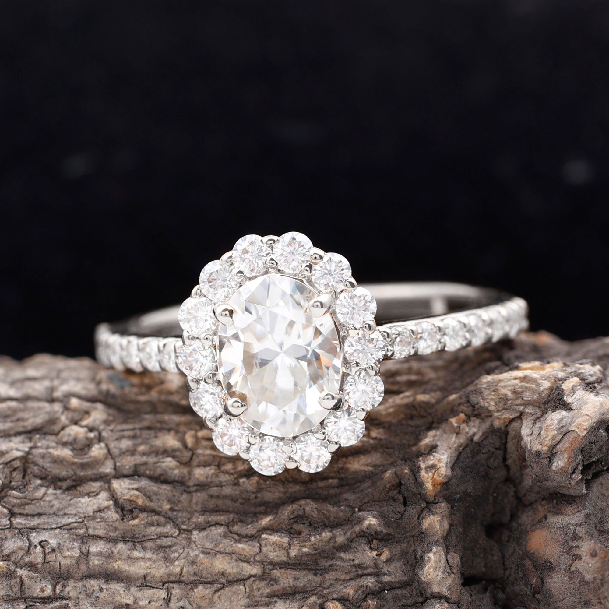 Oval Shape Lab Grown Diamond Halo Engagement Ring