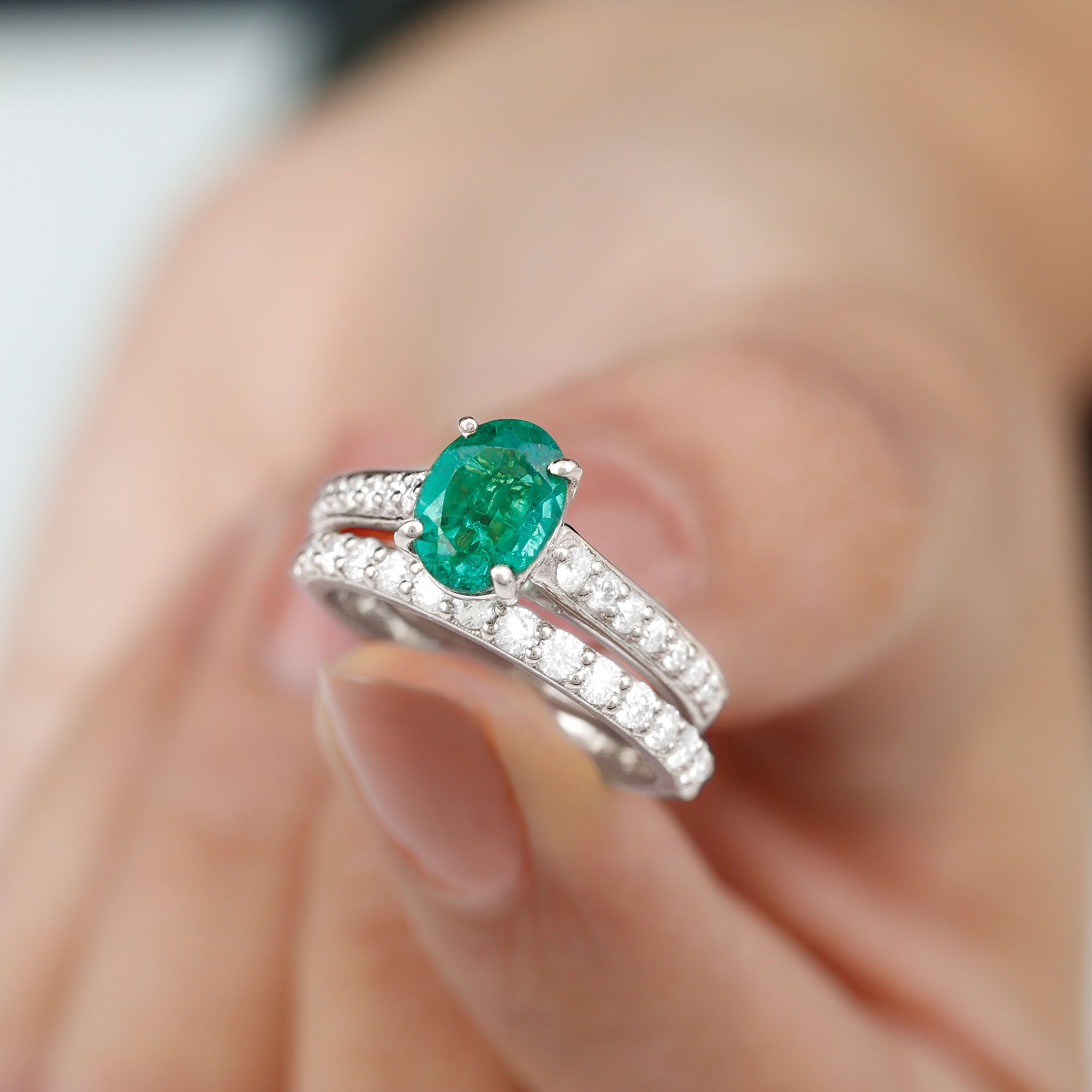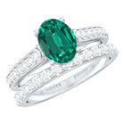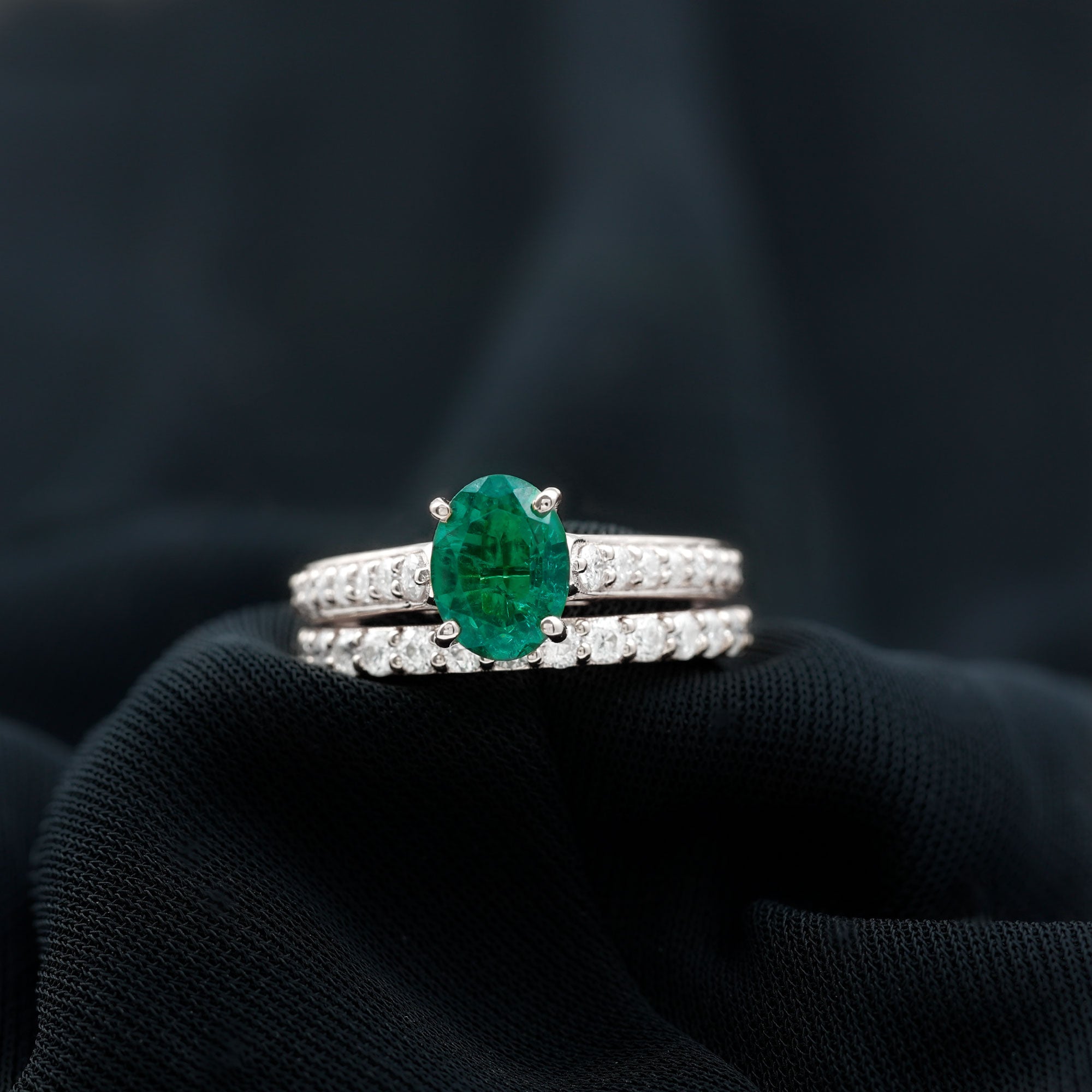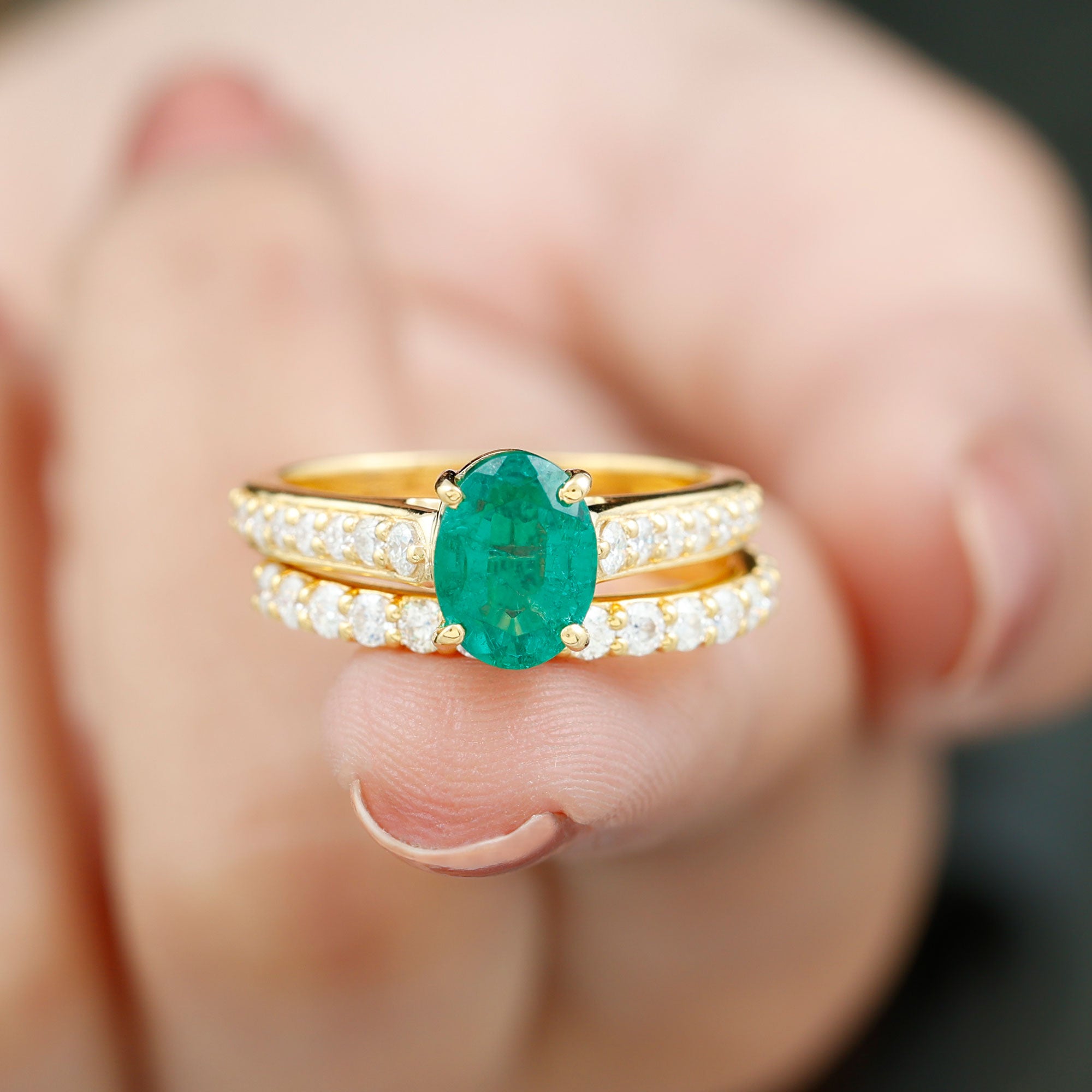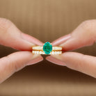 Certified Oval Lab Grown Emerald Wedding Bridal Ring Set of 2