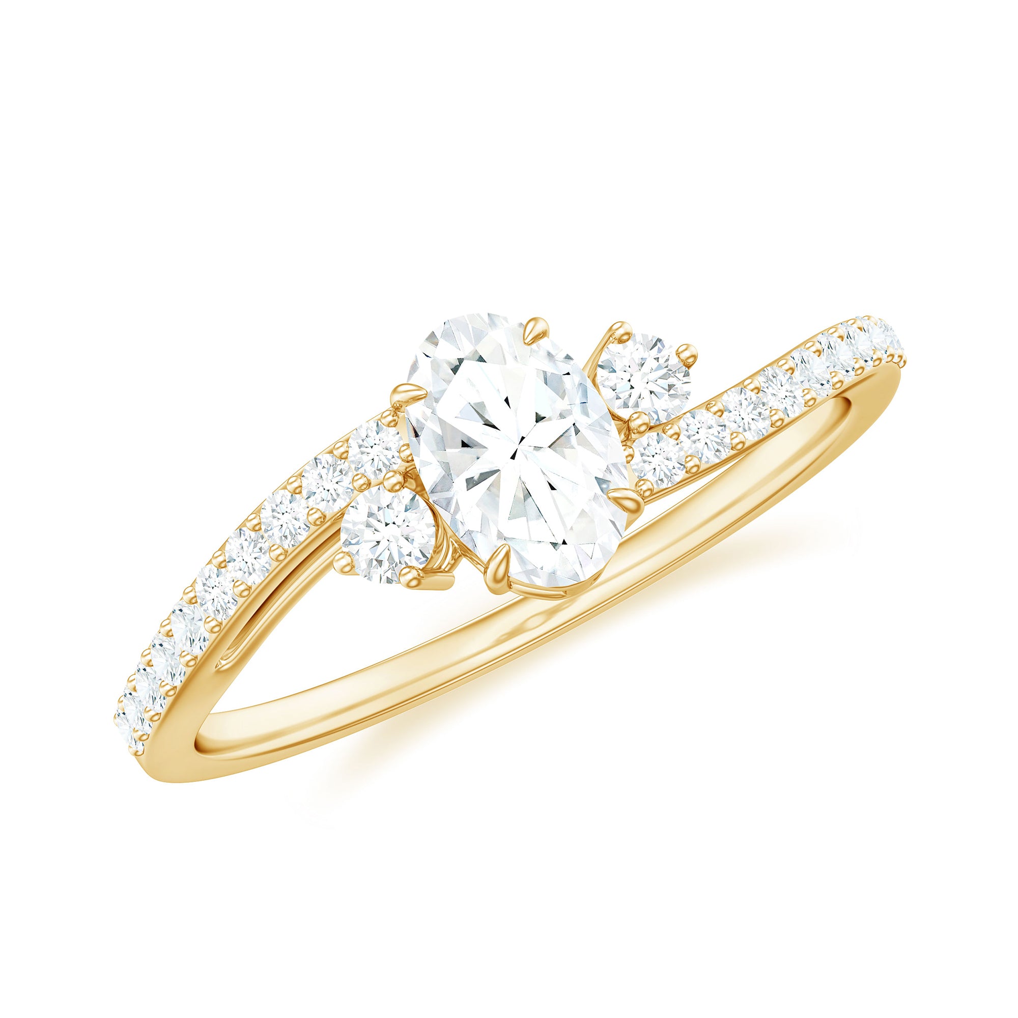 Oval Shape Moissanite Bypass Engagement Ring with Side Stones