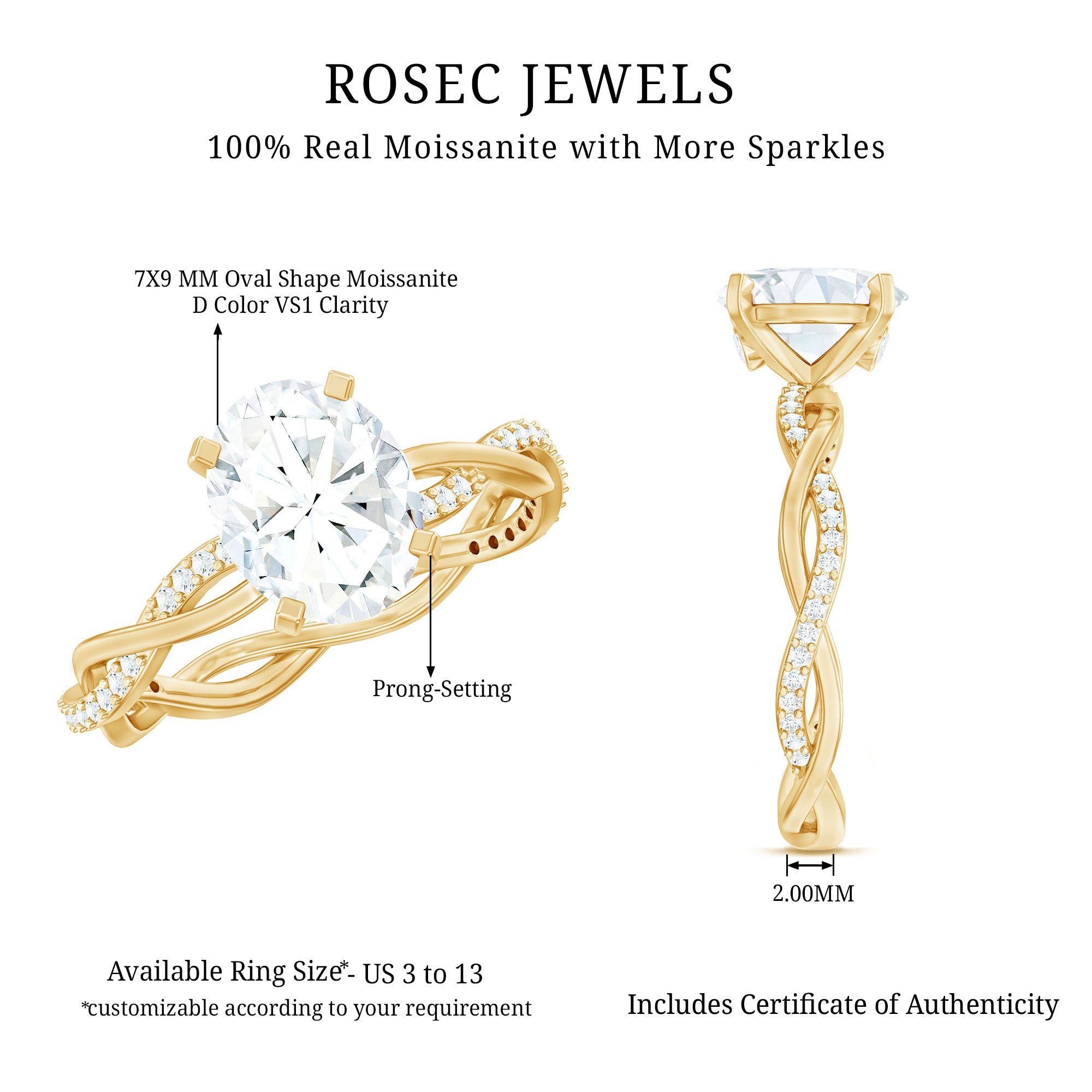 Oval Shape Moissanite Solitaire Engagement Ring in Braided Shank