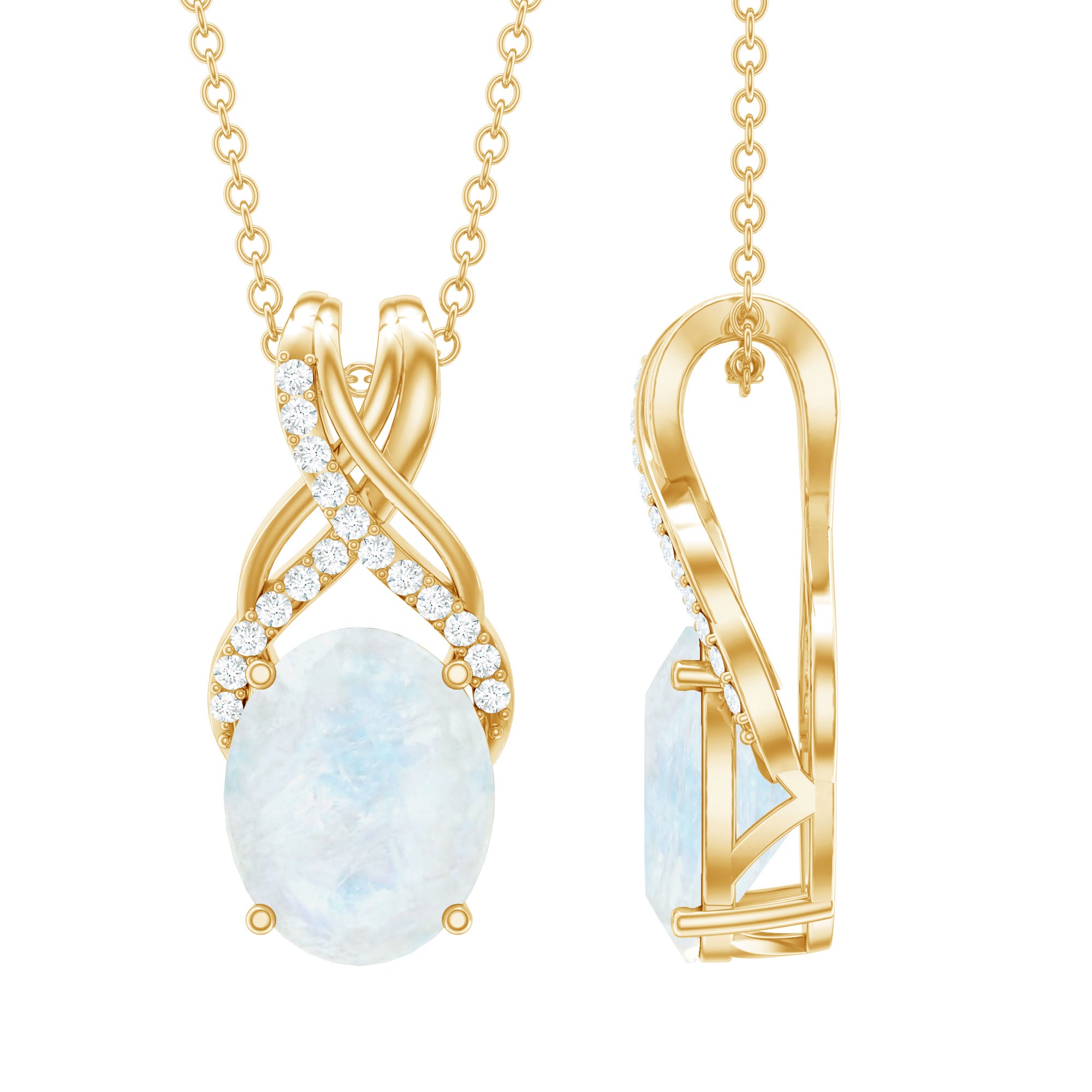 Oval Shape Moonstone Solitaire Pendant with Diamond Twisted Bail