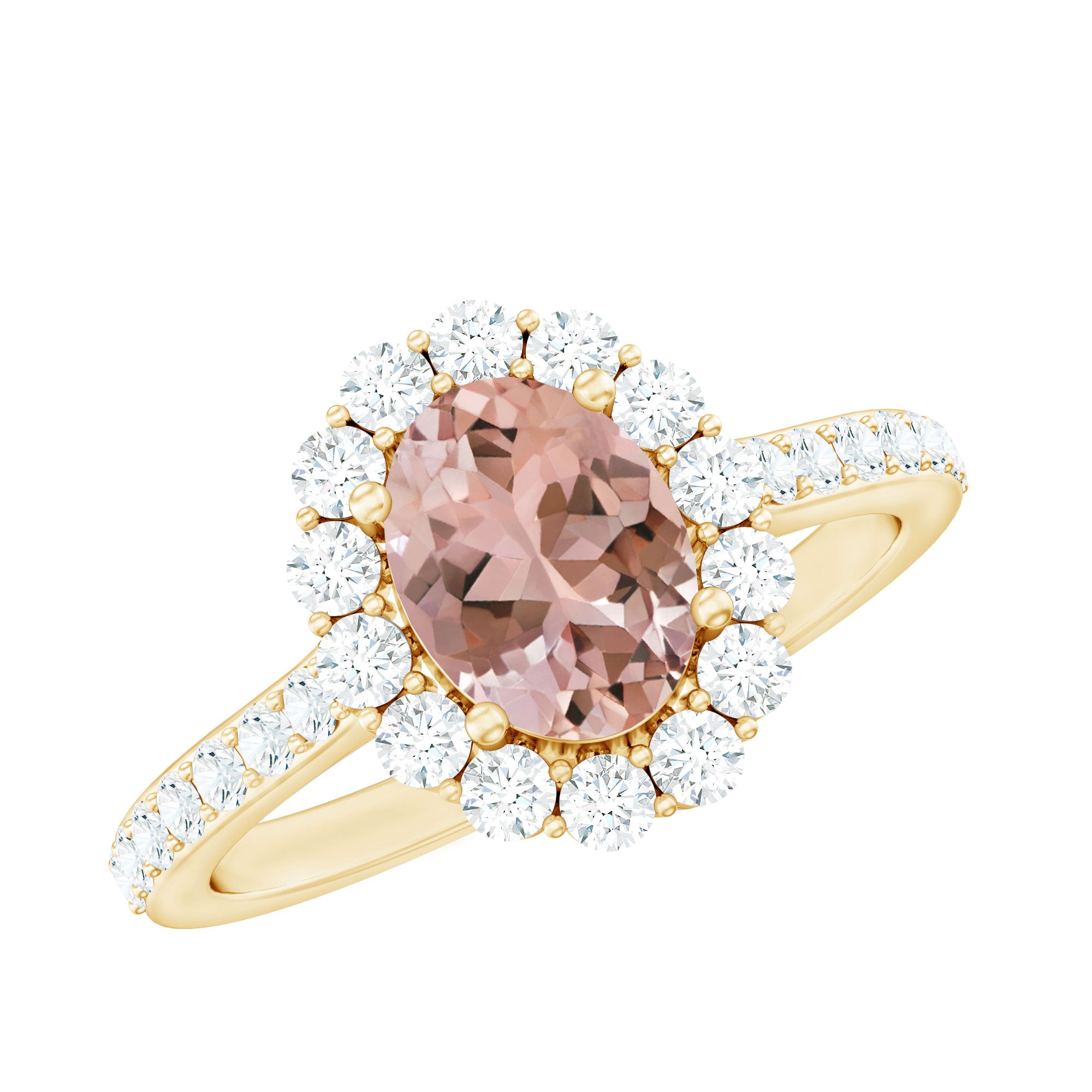 Oval Shape Morganite Engagement Ring with Diamond Halo