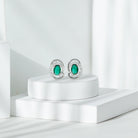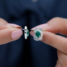 These Lab Grown Emerald Stud Earrings are a stunning blend of color, brilliance, and design, showcasing a captivating oval shape that is both modern and timeless. The Green Gem Earrings feature 5X7 MM oval shaped lab-created emerald stones that are securely set in prong setting, surrounded by unique curves embellished with round cut moissanite stones. Expertly crafted in 14K white gold plated silver, the rich green color is beautifully enhanced by the sparkle of brilliant cut stones, resulting in an eye-catching gradient effect that adds depth and shine to the design. These Oval Stud Earrings can be paired with any outfit, offering a luxurious glow that makes them the ideal statement piece for any occasion. These Emerald and Moissanite Earrings go beyond just being accessories, they represent a shining symbol of elegance and sophistication. These beautiful Designer Studs have a stunning appearance that genuinely captivates, turning any outfit into a remarkable occasion.