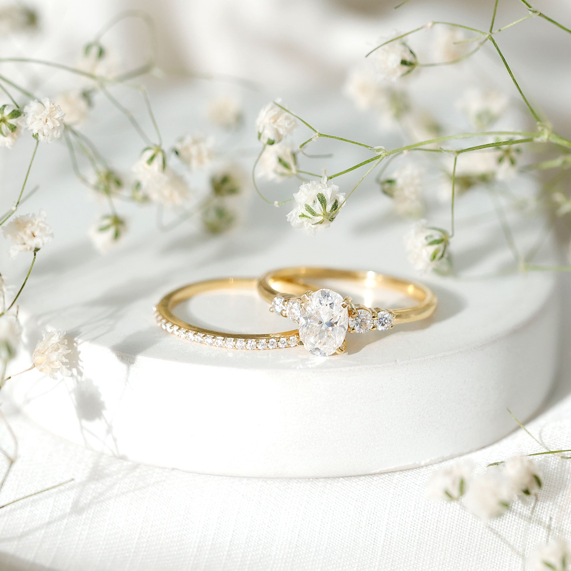 Oval Shaped 5X7 MM Moissanite Solitaire Wedding Ring Set