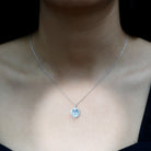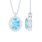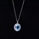 Oval Shaped 8X10 MM Aquamarine Statement Necklace Moissanite Halo