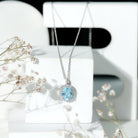 This Aquamarine Pendant Necklace is a beautiful presentation of elegance that is precisely crafted with 14K White Gold Plated Silver. The large pendant features an 8X10 MM Oval Shape Aquamarine of AAA Quality securely placed in Prong Setting. The center stone is encircled with smaller Moissanite stones, which embrace the beauty of the pendant. This Halo Pendant exudes the blue hue and is accentuated by a standard bail studded with smaller Moissanite. The classic pendant exudes a blue hue, which is the symbol of calmness, perfect to achieve a classic look. This Oval Pendant Necklace will be delivered to you in a premium quality packaging with the certificate of authenticity.