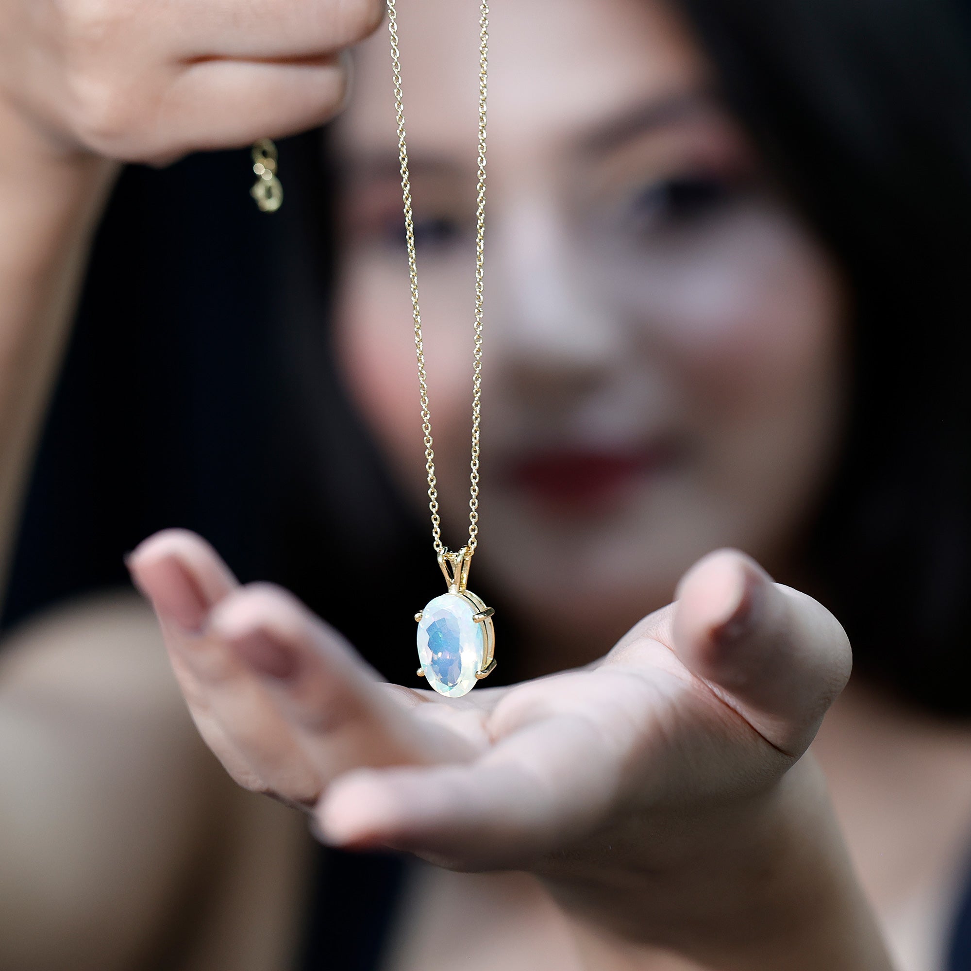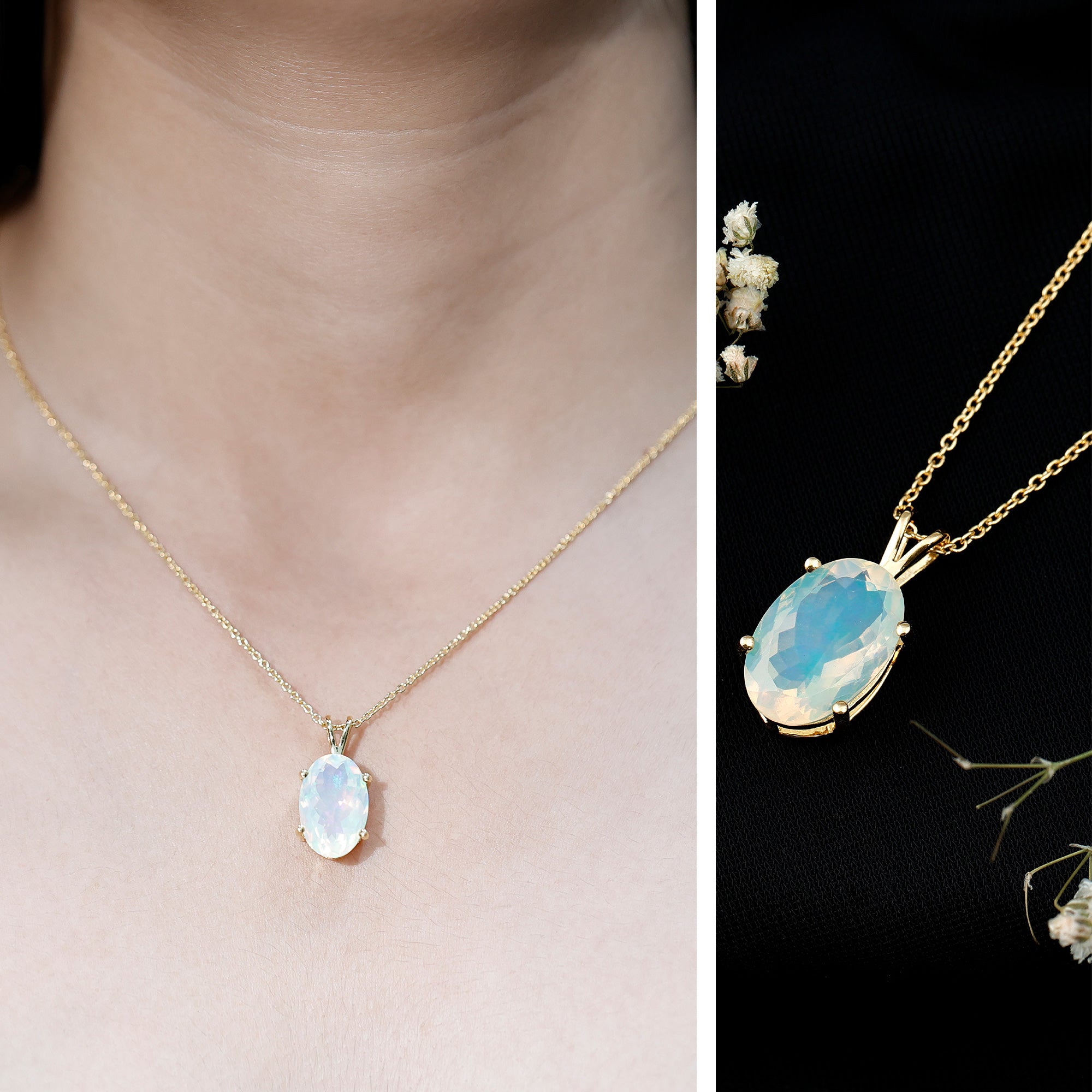 Oval Shaped Huge Ethiopian Opal Birthstone Necklace with Chain